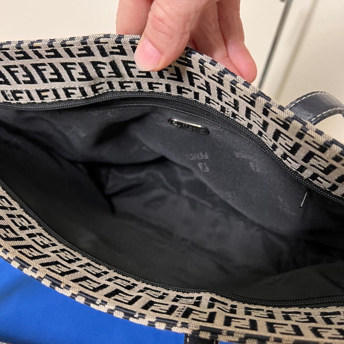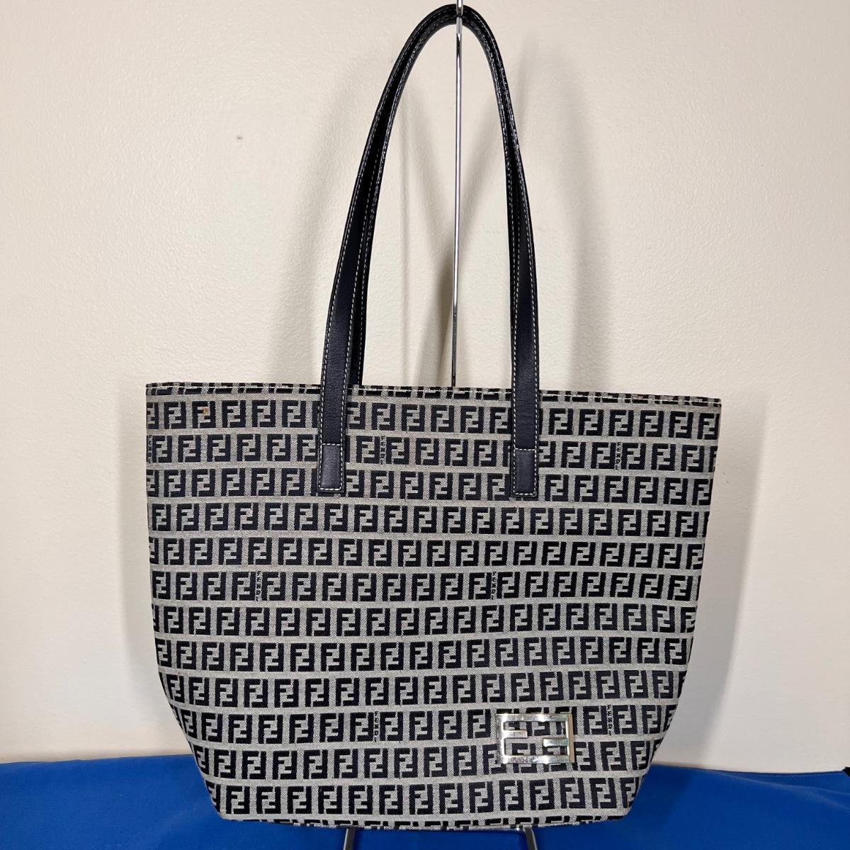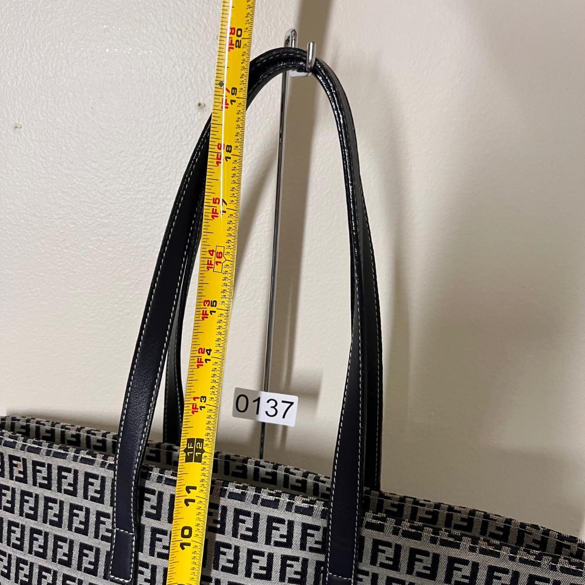 Fendi Zucchino tote Double top handles, 8.5" drop, top zip closure, silver tone hardware including icon FF emblem