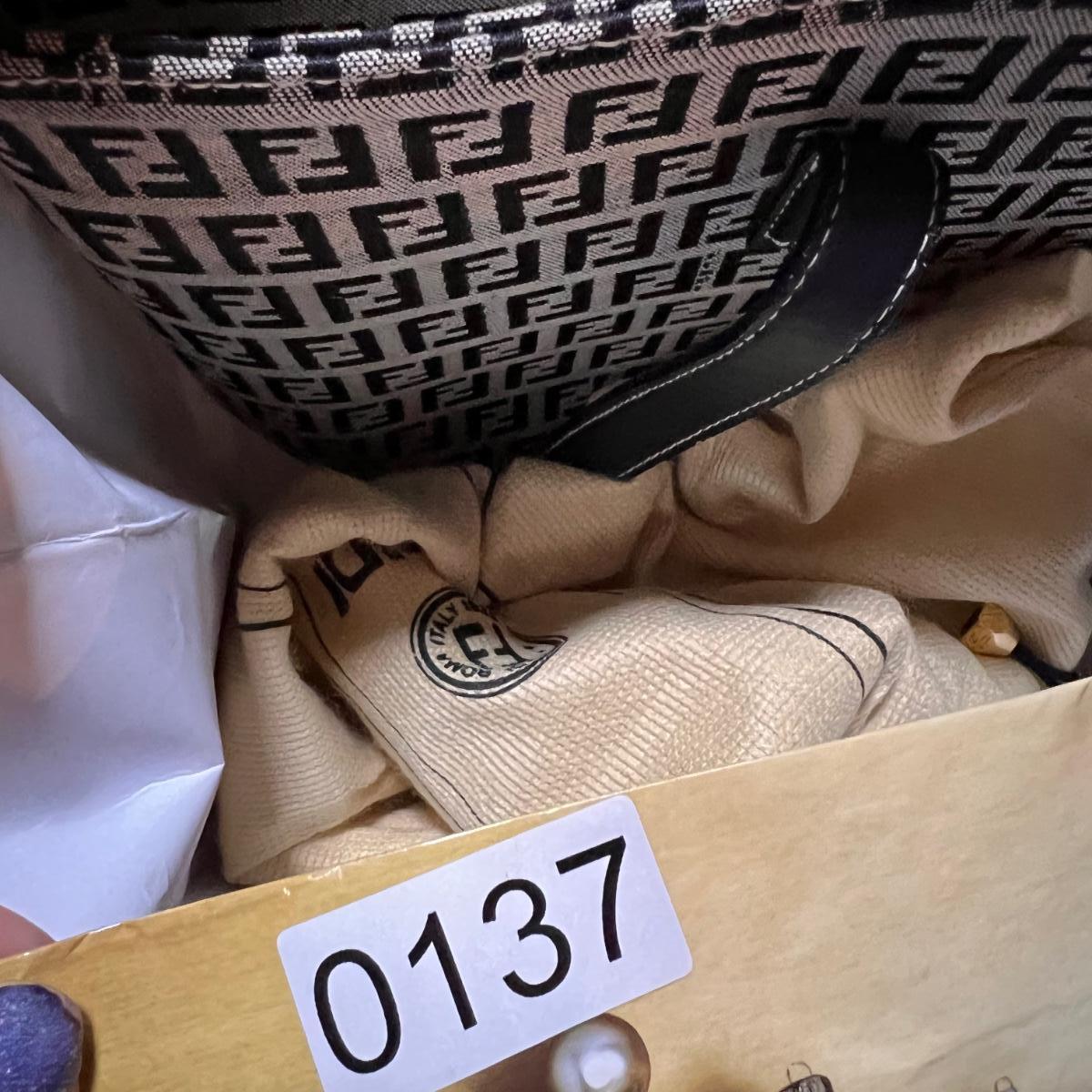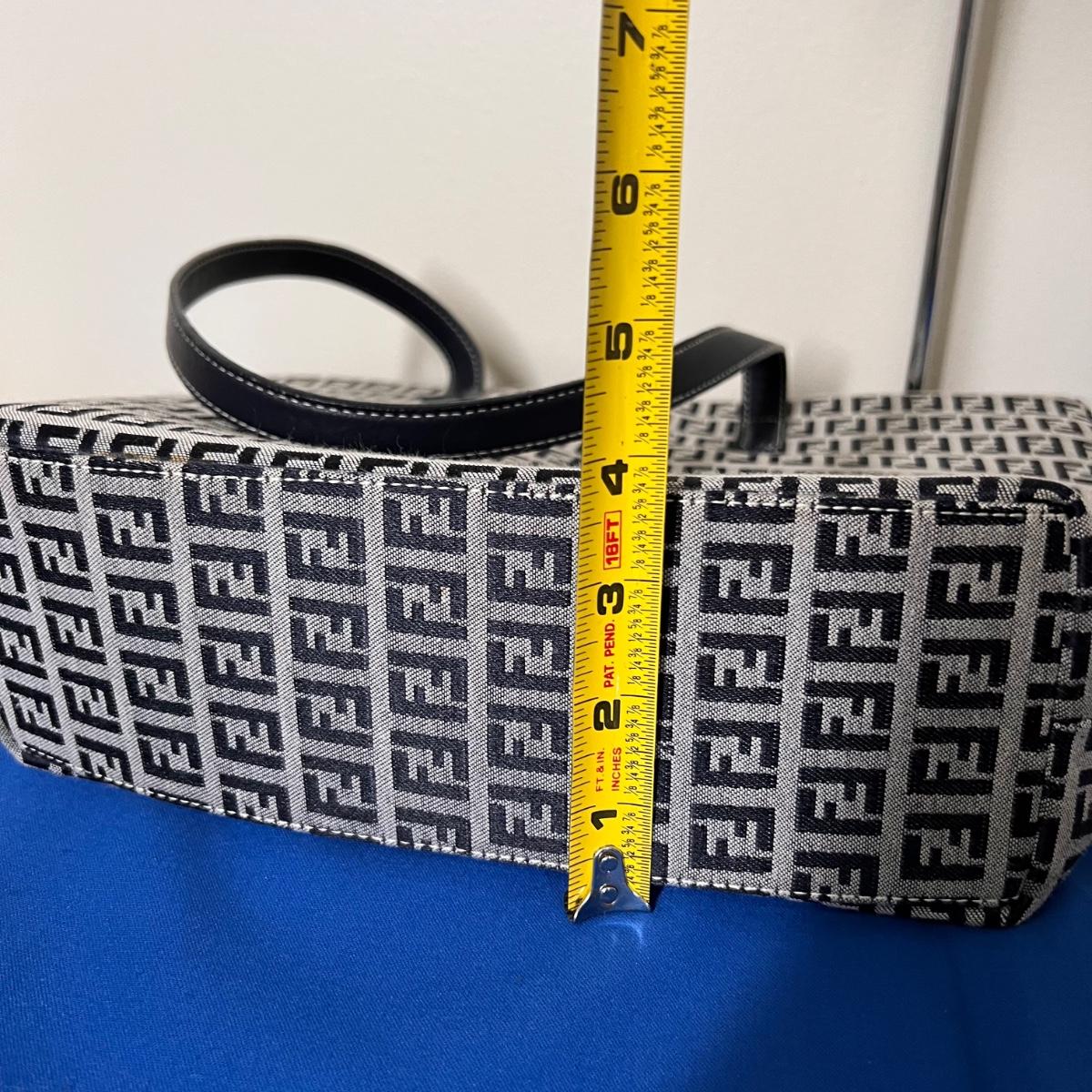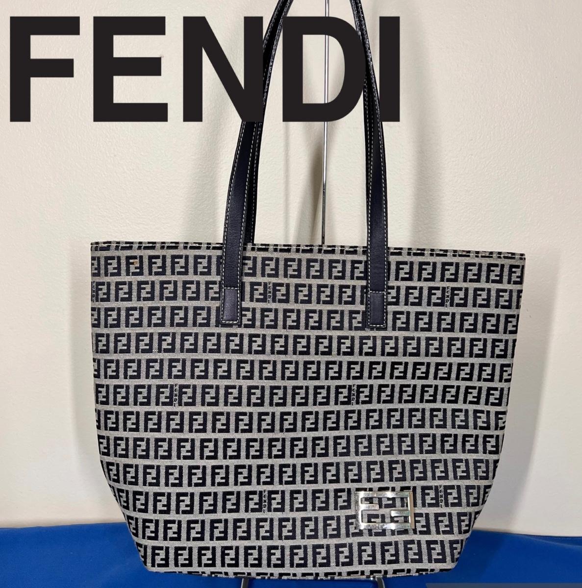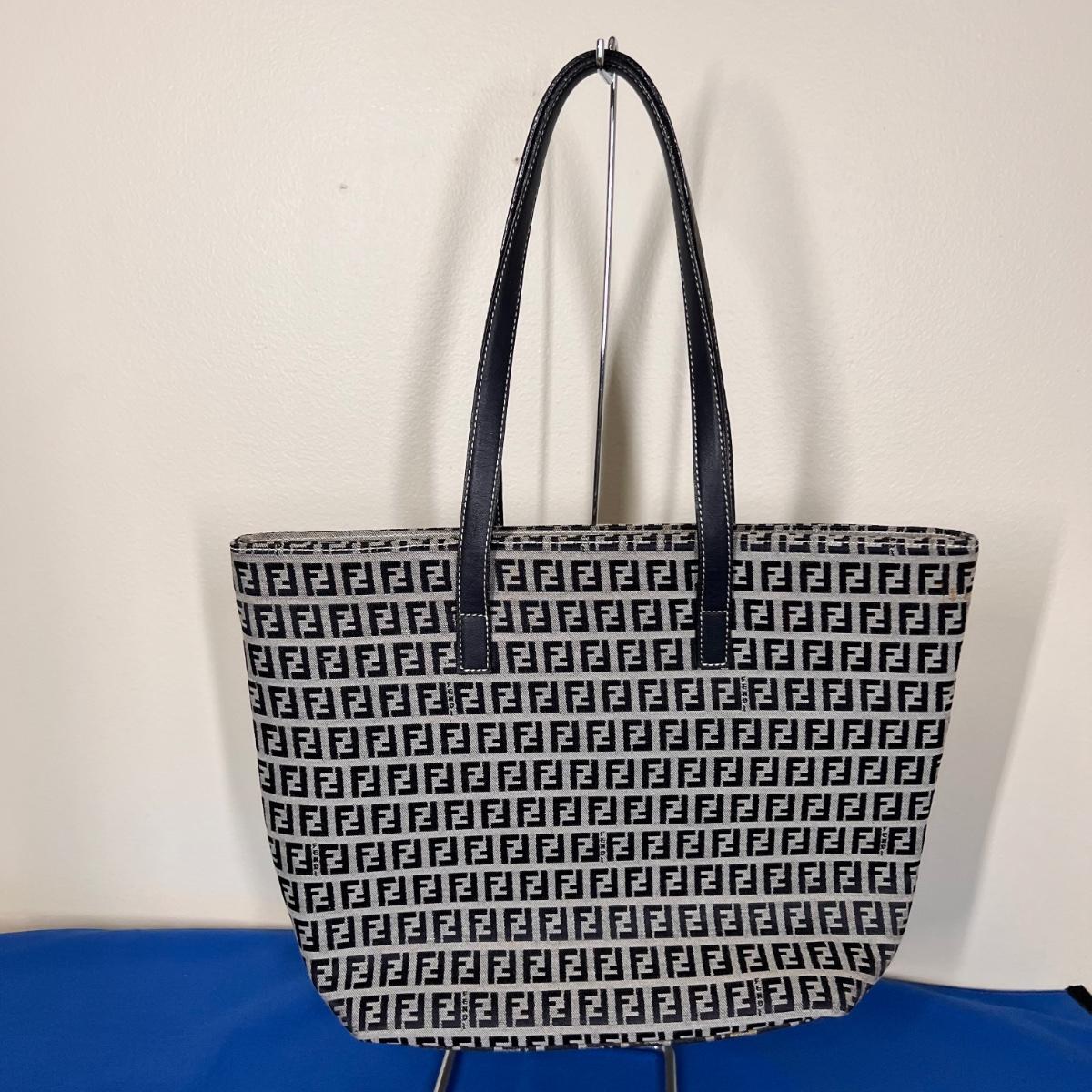 Fendi Zucchino tote Double top handles, 8.5" drop, top zip closure, silver tone hardware including icon FF emblem