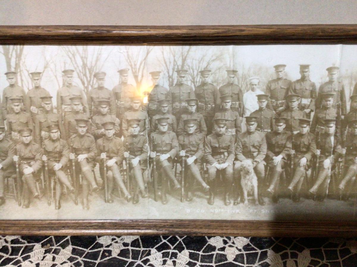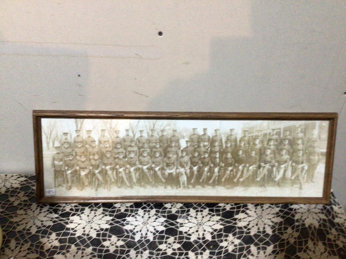 This is a great yard long military picture. Even the dog got in the picture. It is nicely framed.
