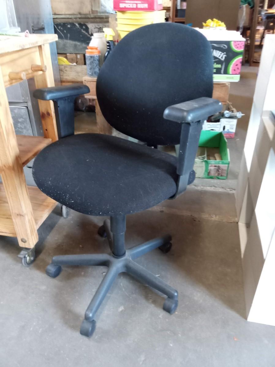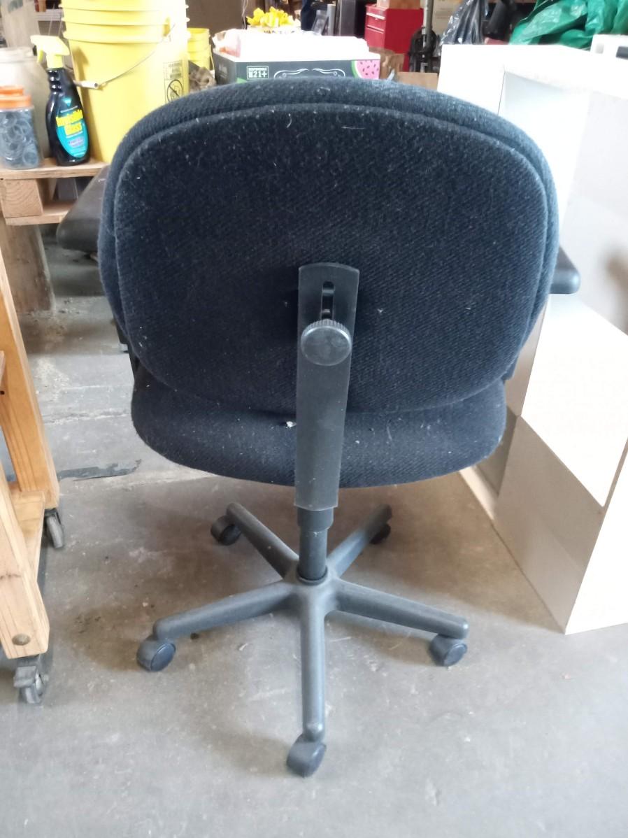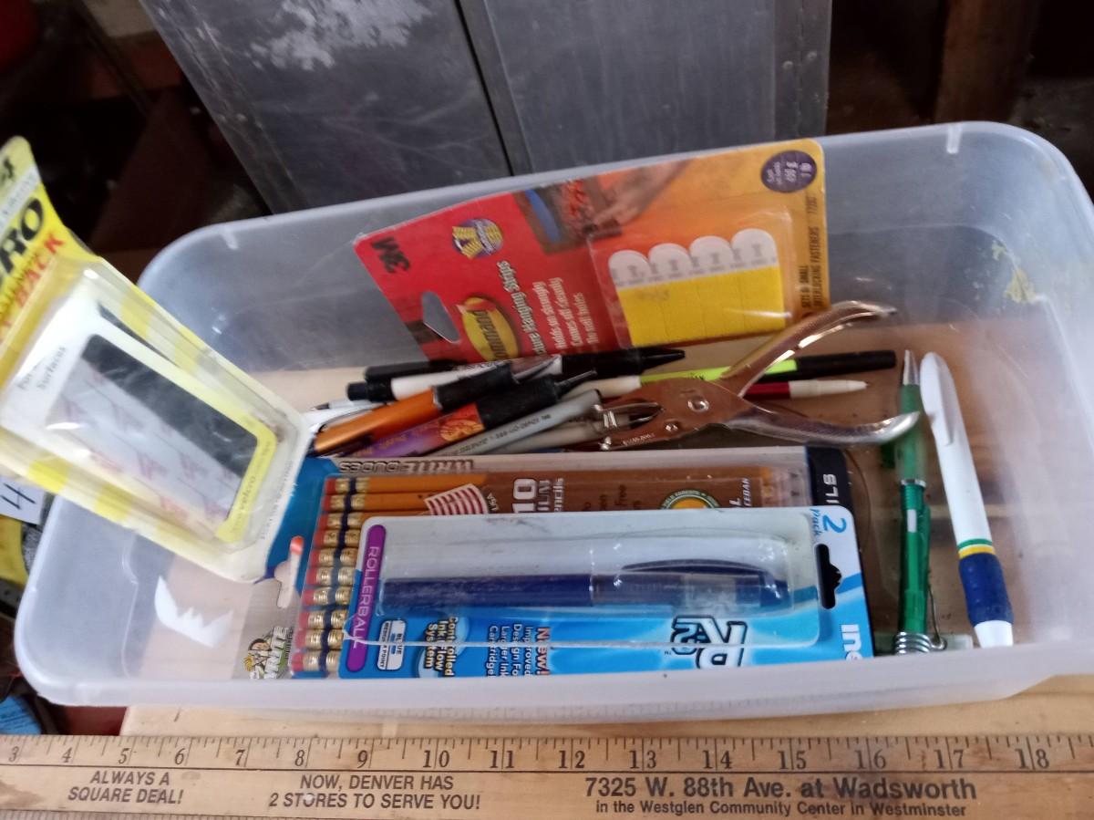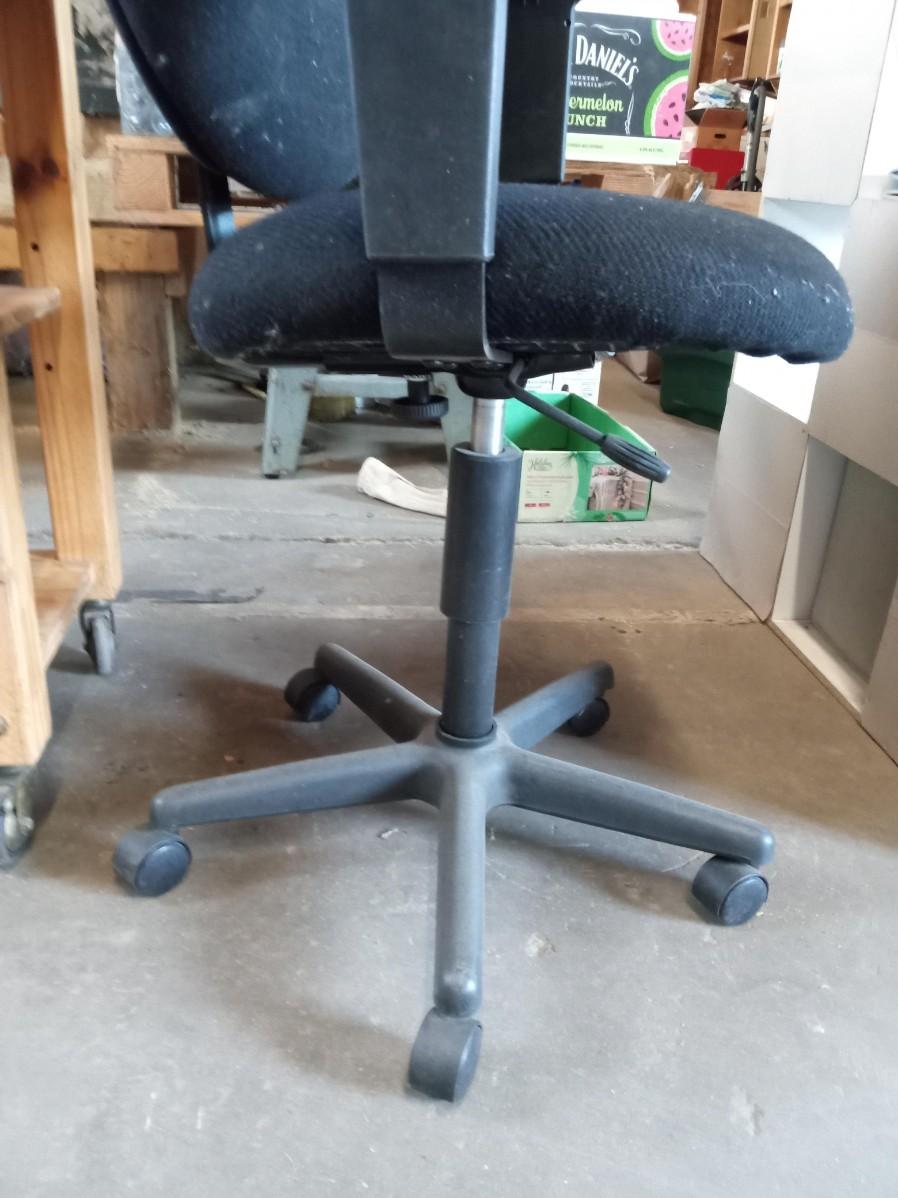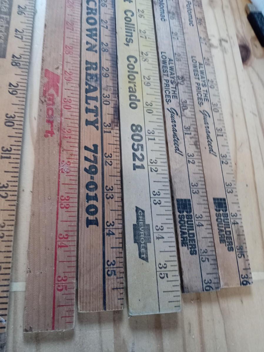 VINTAGE YARD STICKS, DESK CHAIR AND OFFICE SUPPLIES
