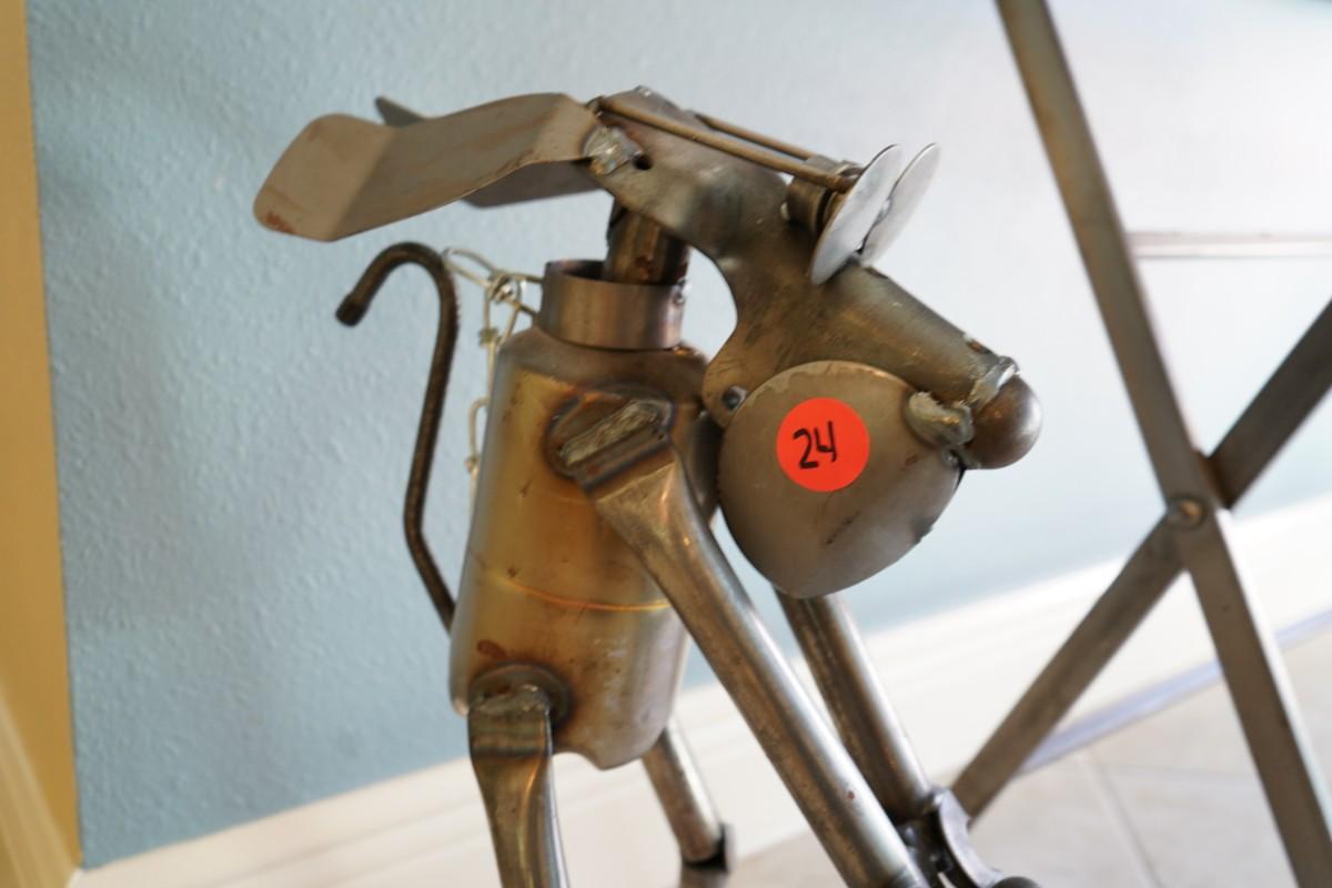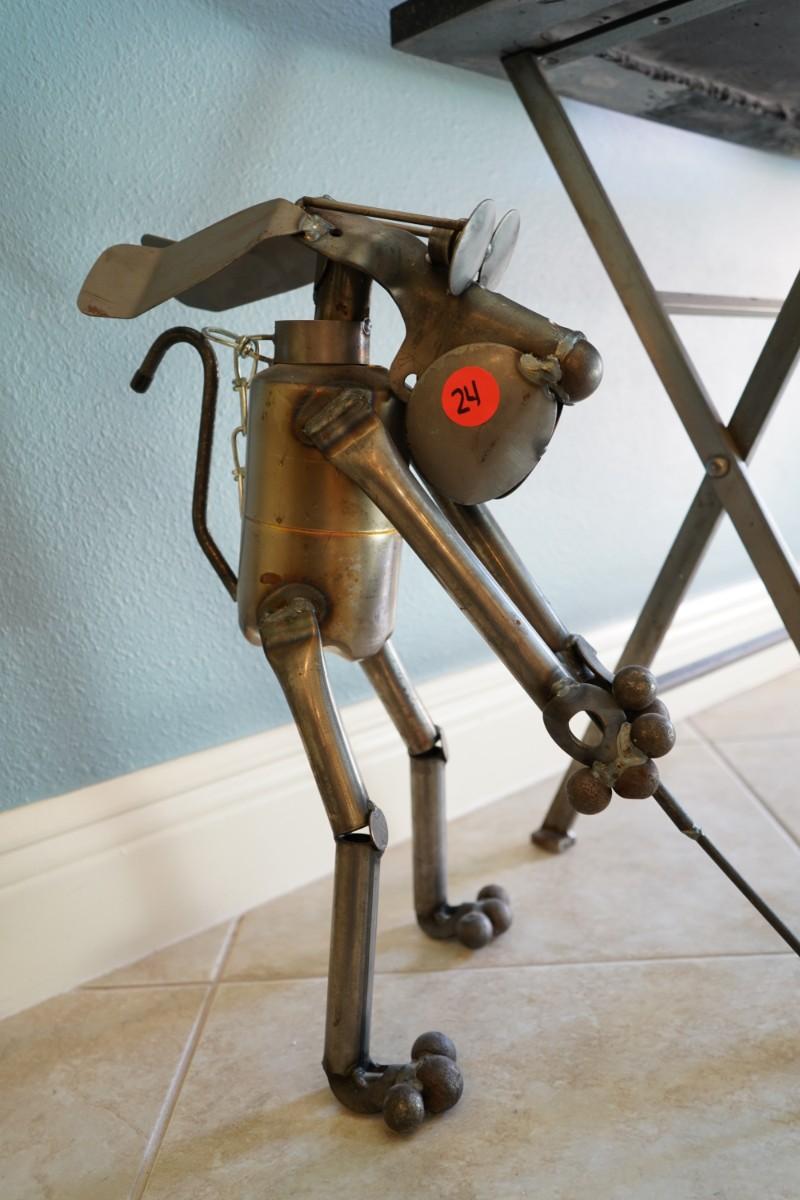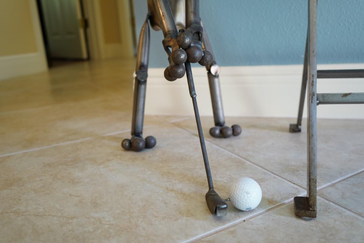 Whimsical Folk Art Welded Metal Dog Golfer - Measures 20W x 11D x 20H.
