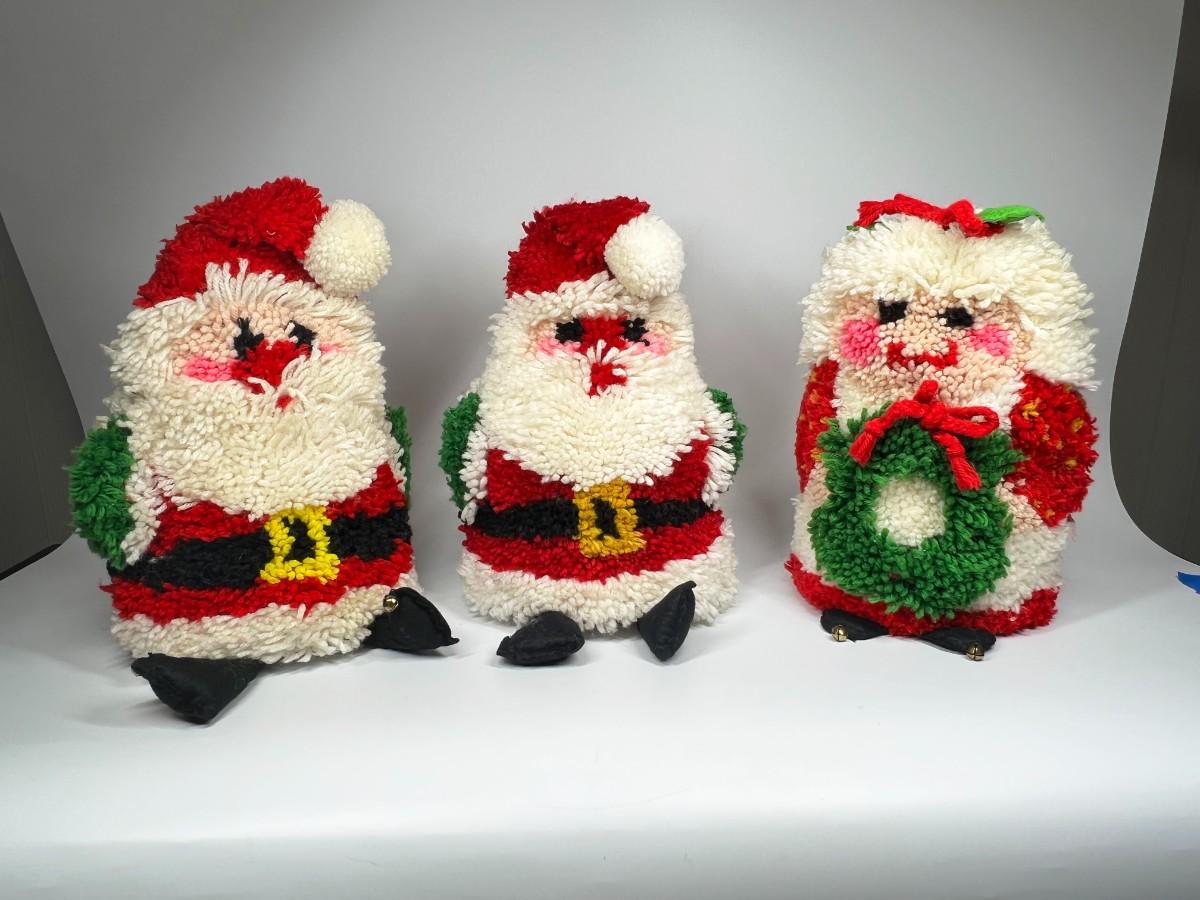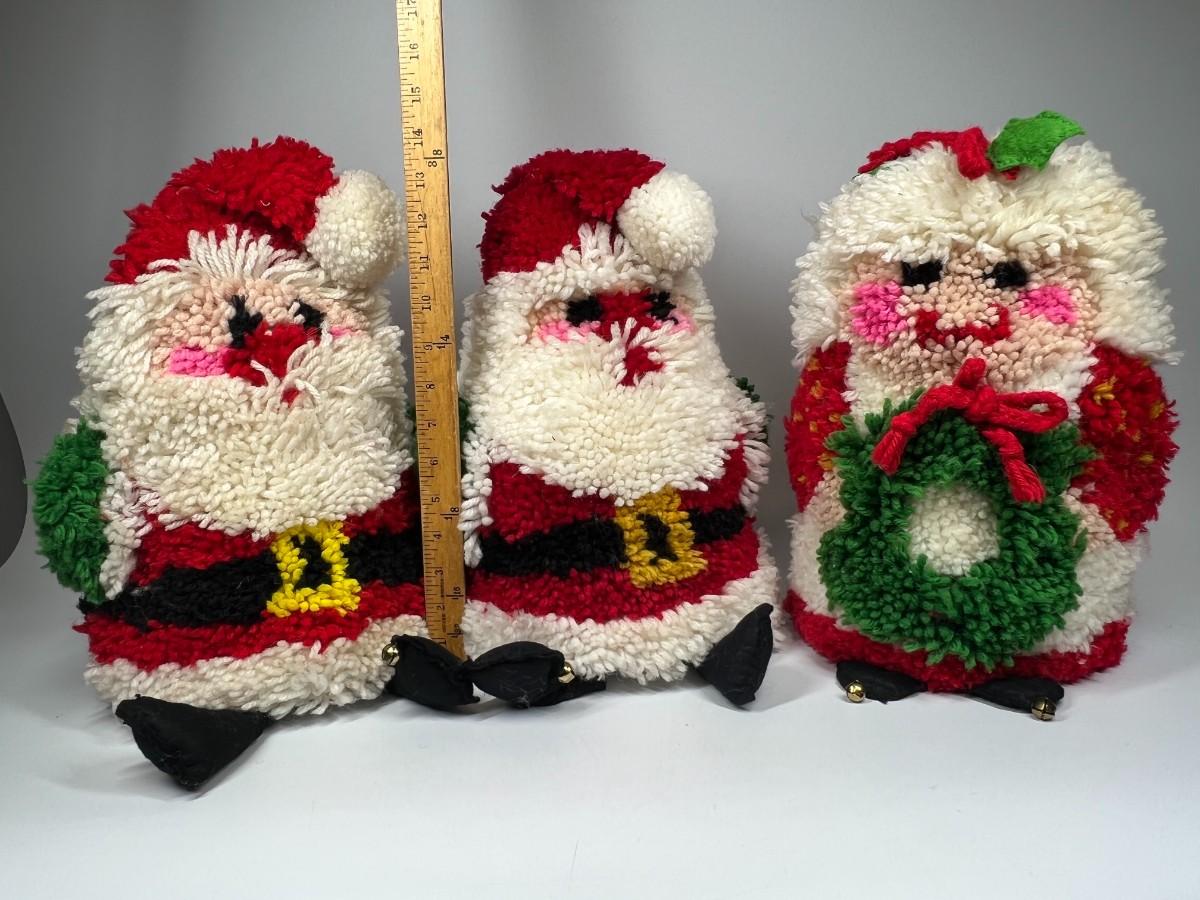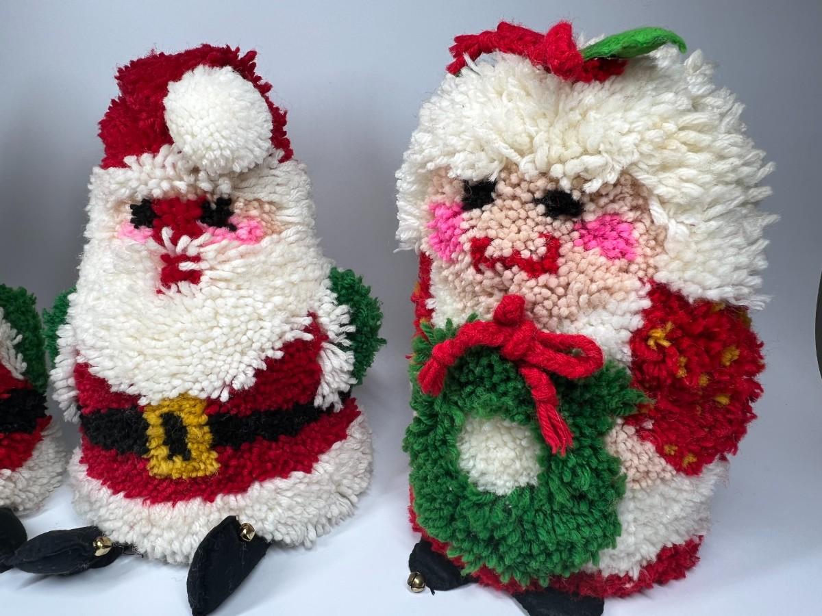 Vintage yarn art Santa and Mrs. Claus. Good condition.