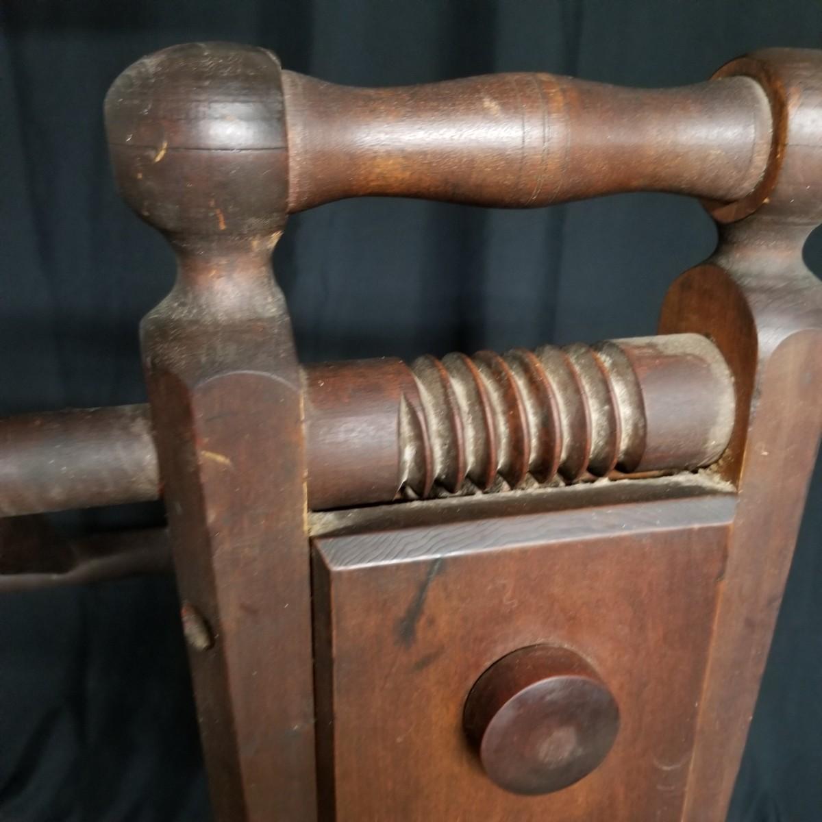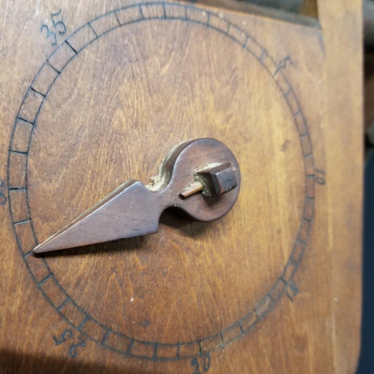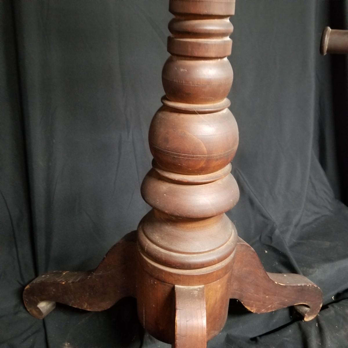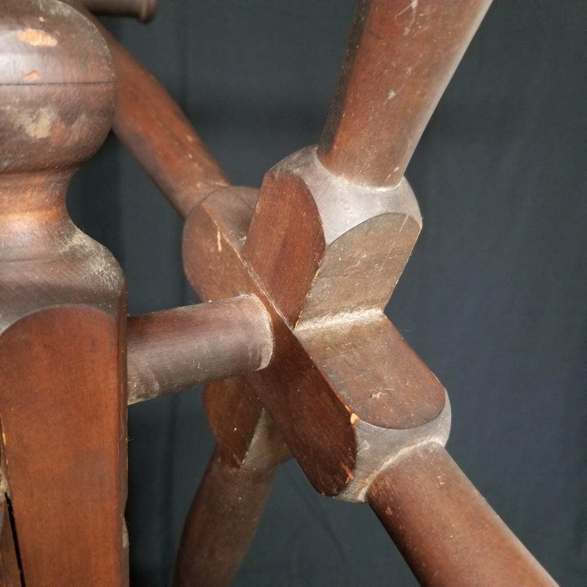 Four arm vintage yarn winder with counter. all wood construction, has tripod feet, wooden gear mechanism to count yardage. Turned column, item is 36" to top of handle, 21" span at base of feet. The arms span is 24". No markings or manufacture name. Item is in good shape, shows some wear. Local pickup only.