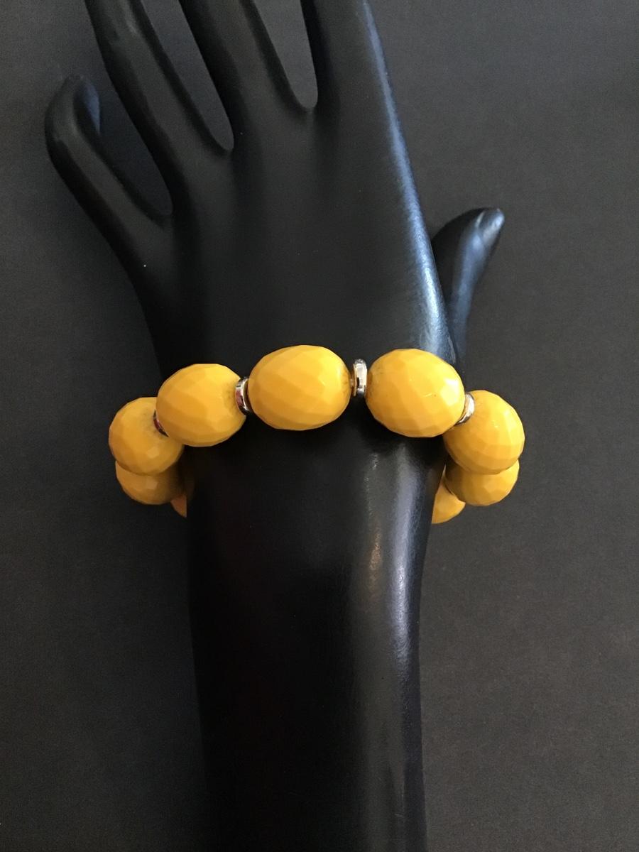 Vintage, yellow, beaded, fashion, statement, stretchy bracelet. Please see attached photos.