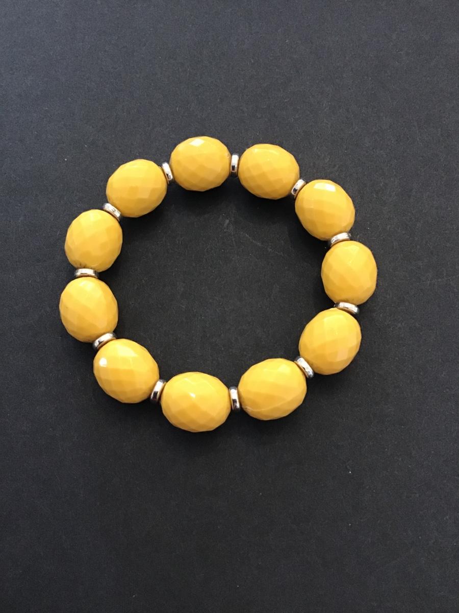 Vintage, yellow beaded fashion, statement, stretchy bracelet