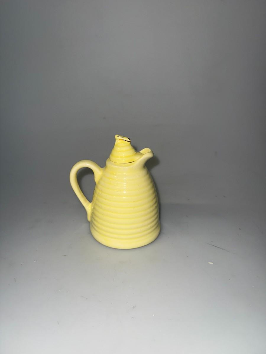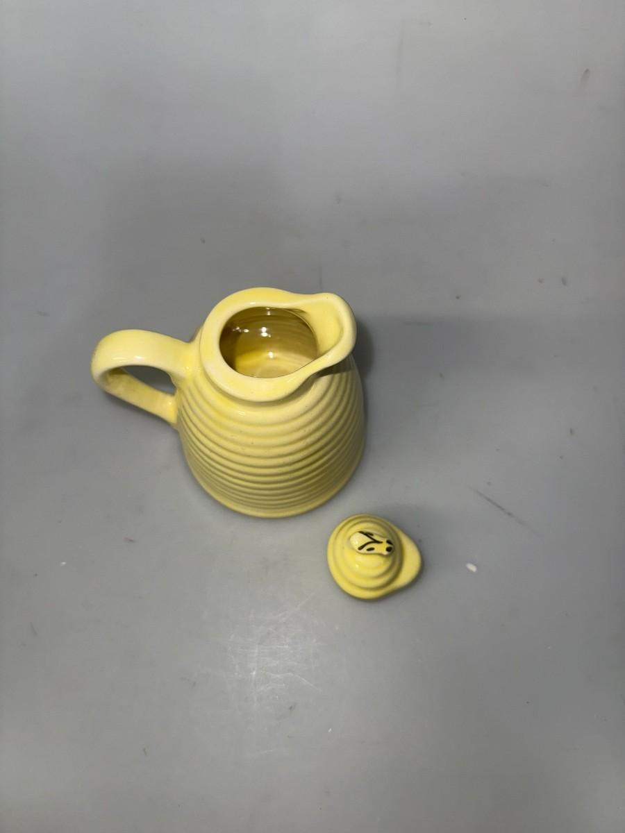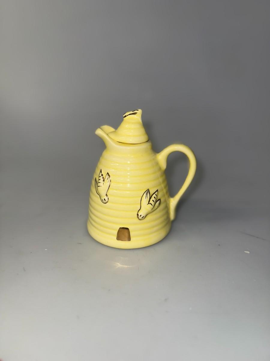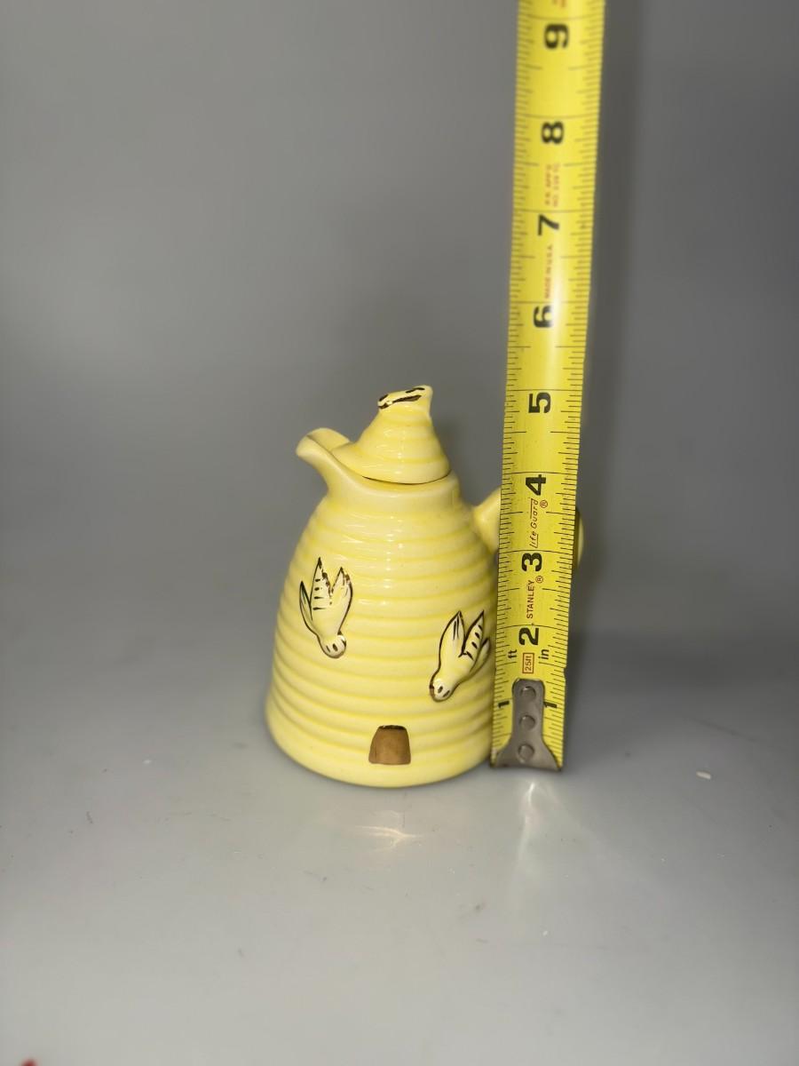 Vintage Yellow Bees Honey Pot Jar Beehive With Lid Made in USA Ceramic Farmhouse