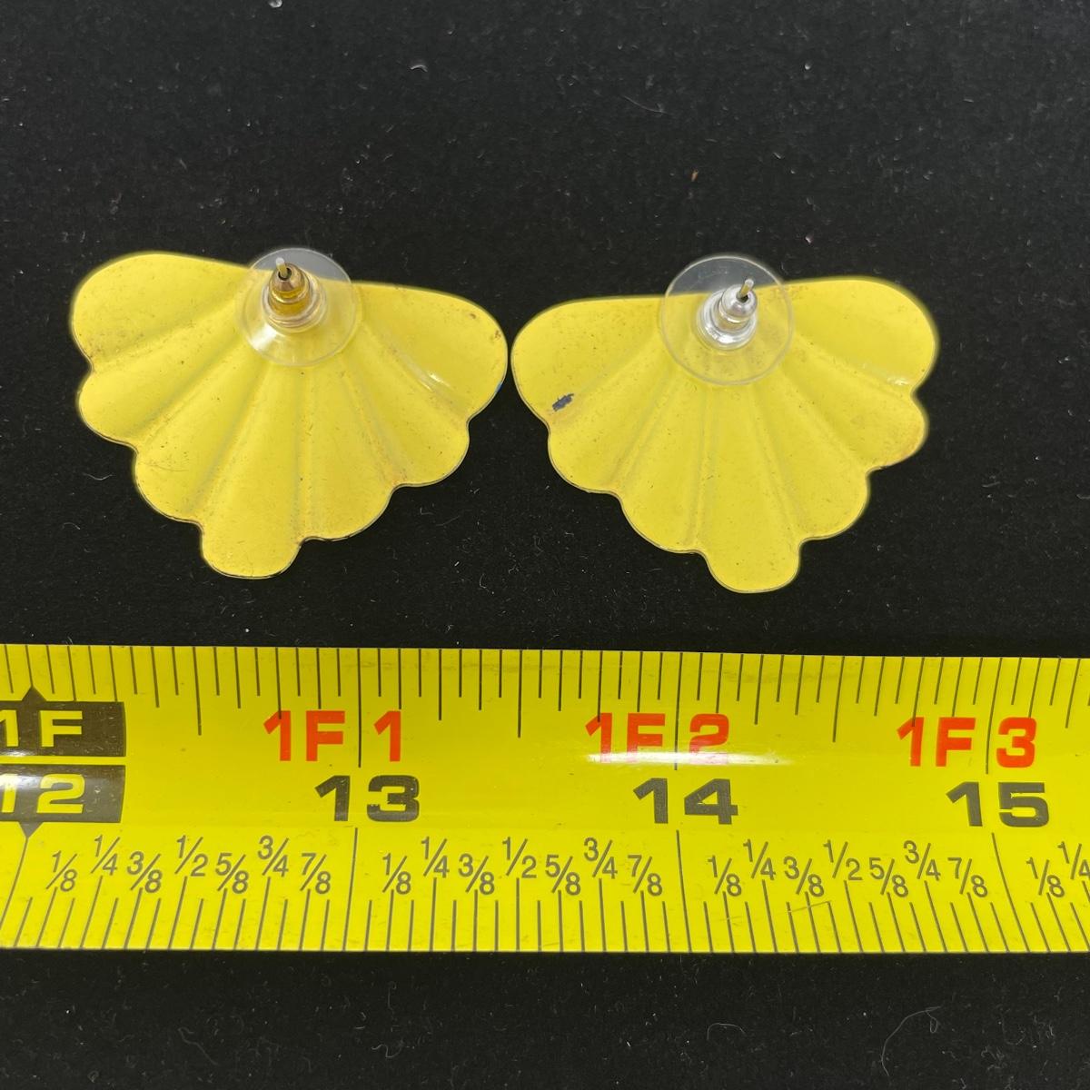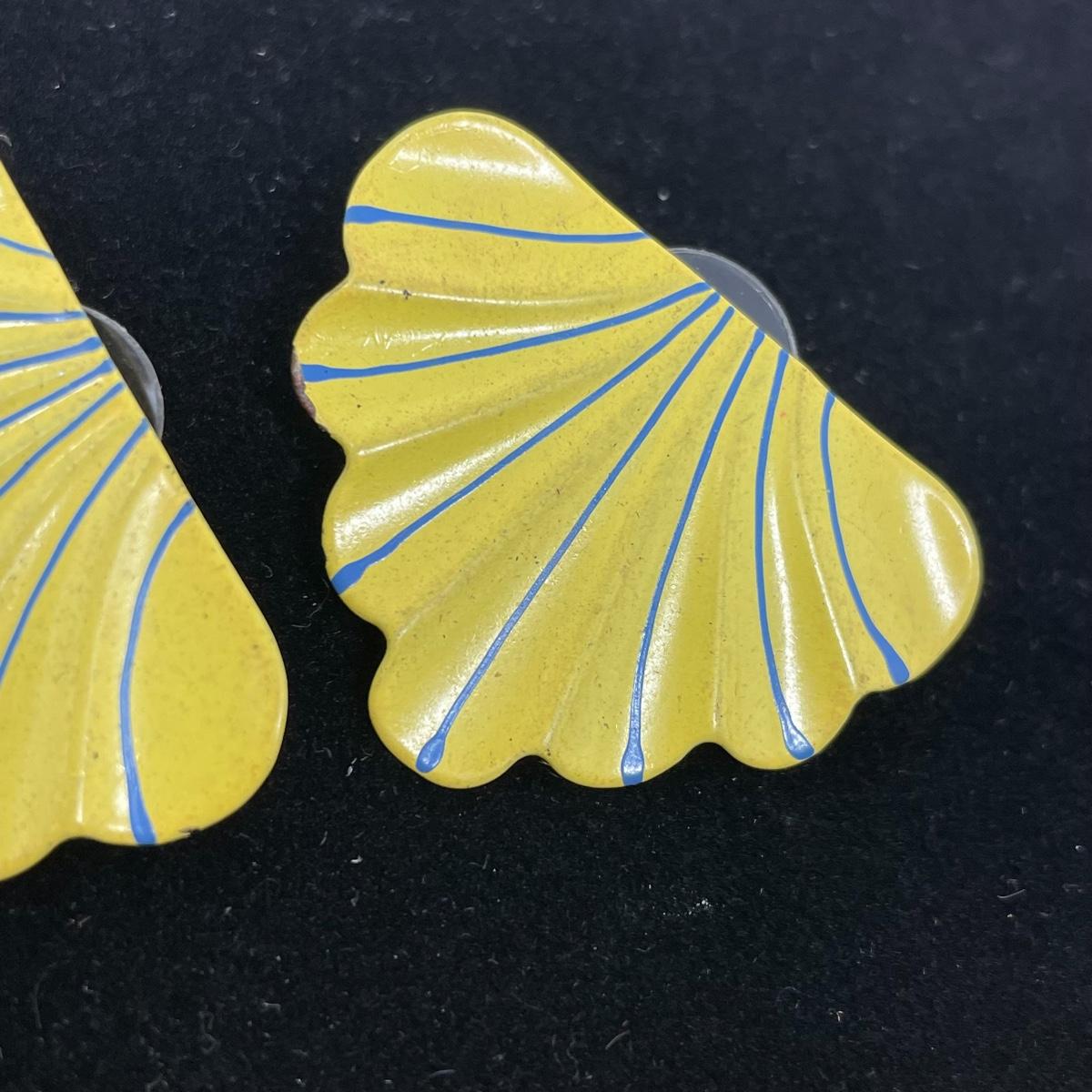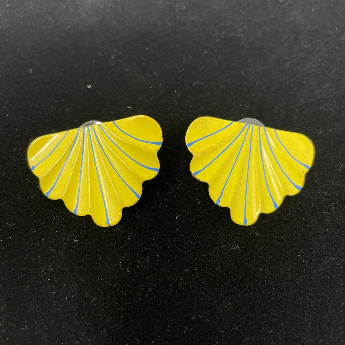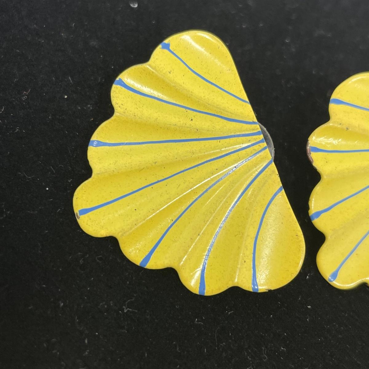 VINTAGE YELLOW & BLUE SCALLOPED METAL EARRINGS