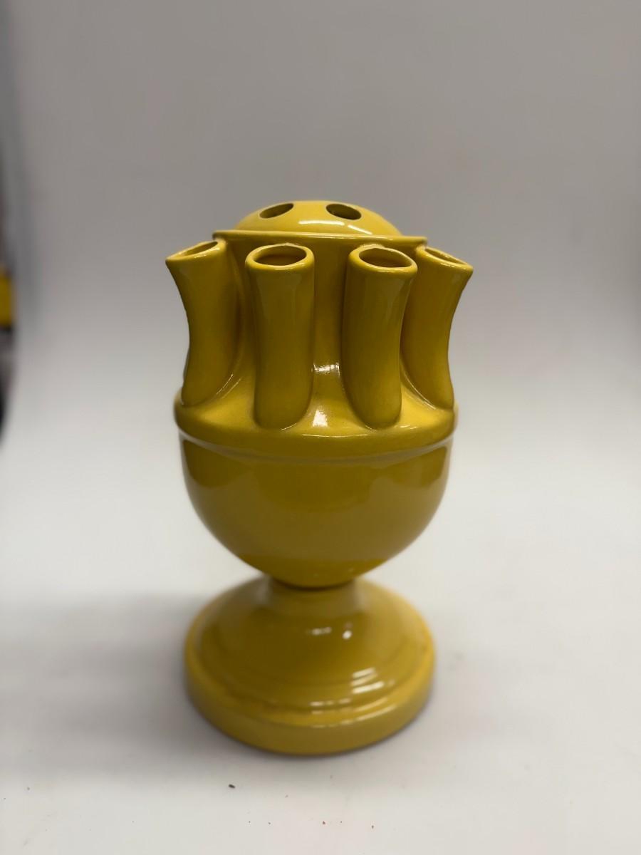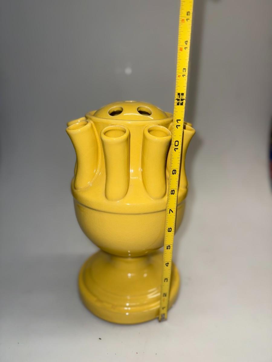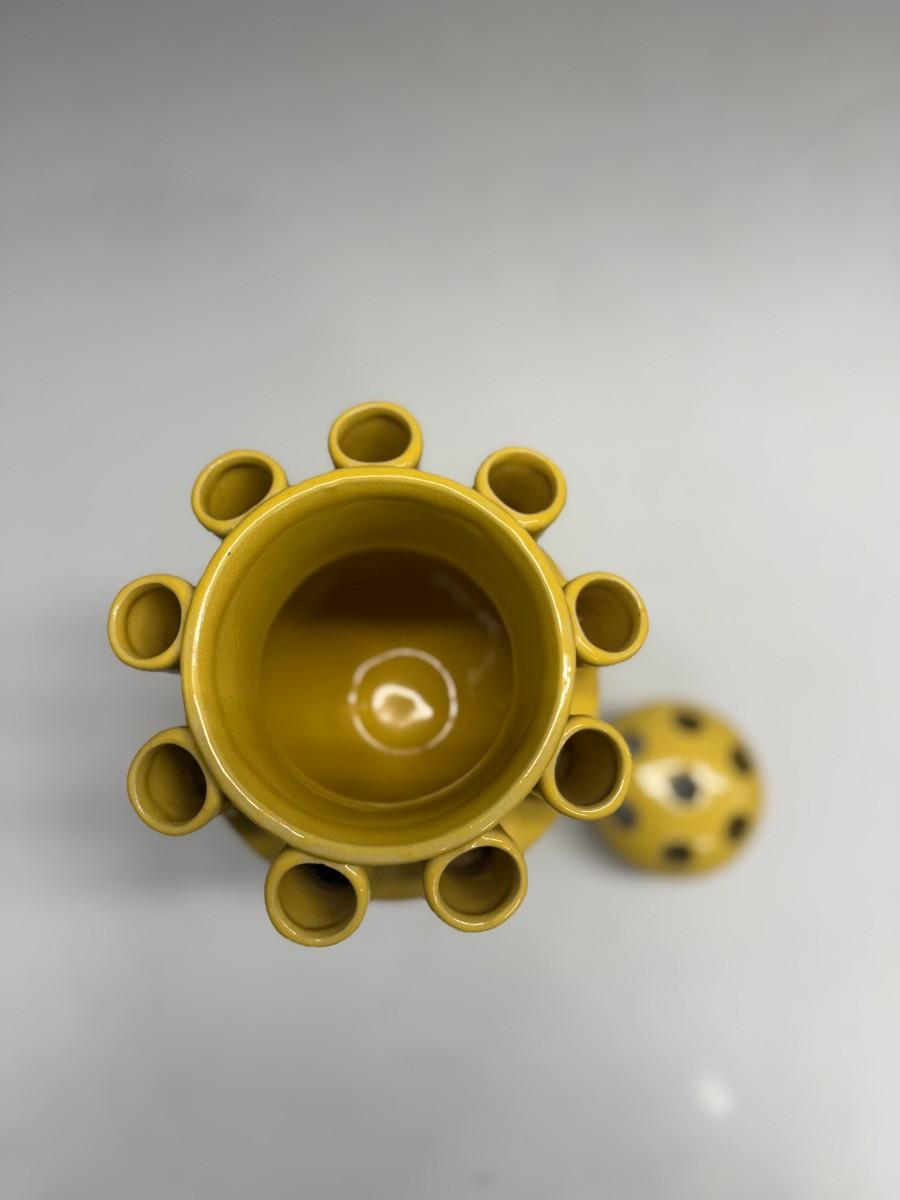 Vintage YELLOW CERAMIC TULIPIERE 15 Hole Tulip Flower Vase 12” W/ Removable Top