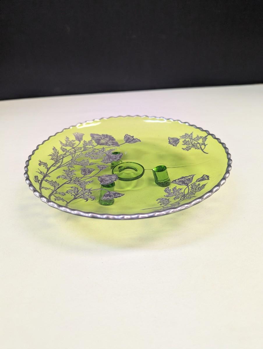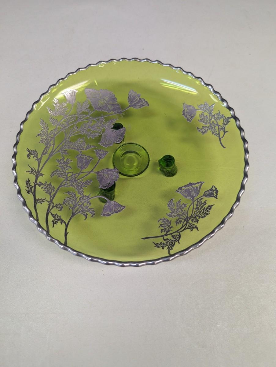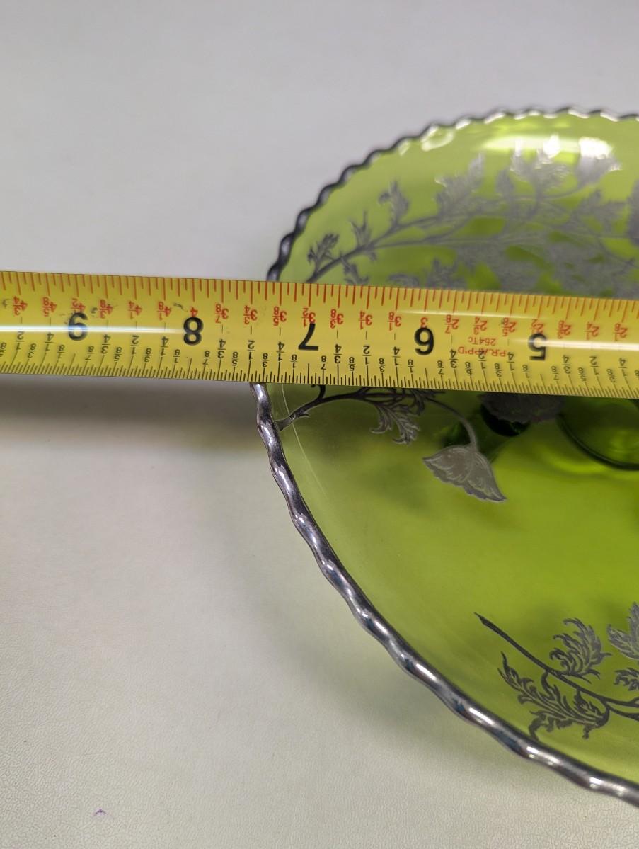 Vintage Yellow Glass Silver Overlay Candy Dish