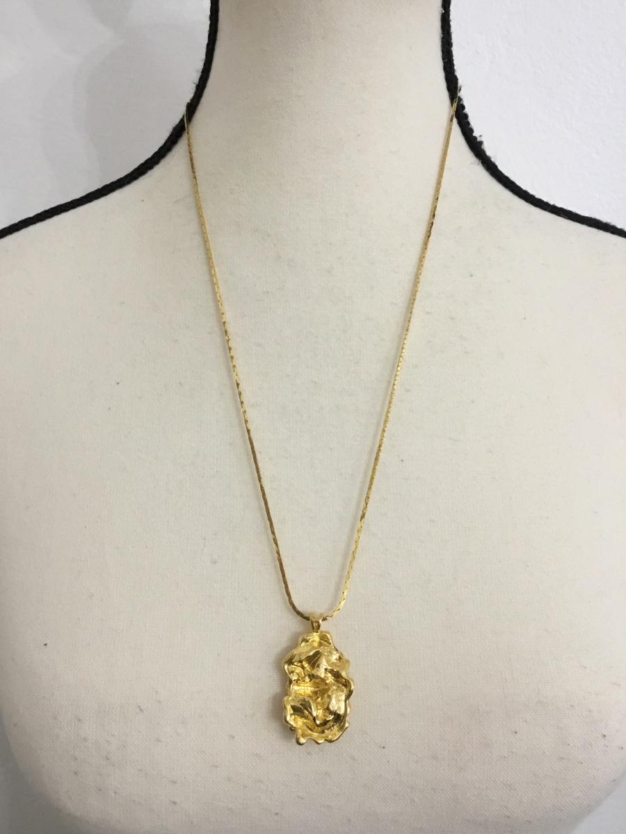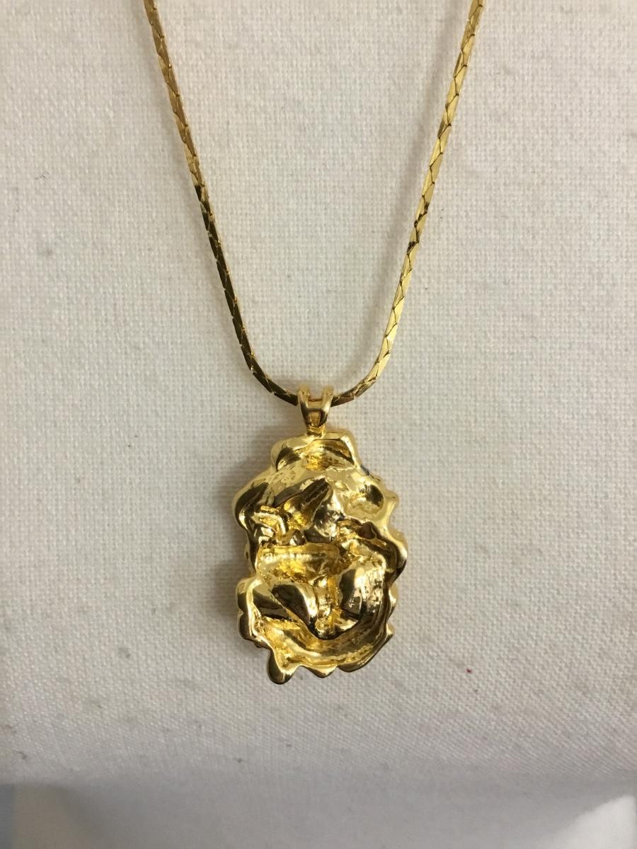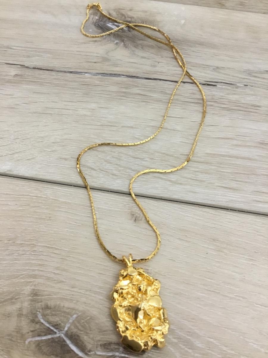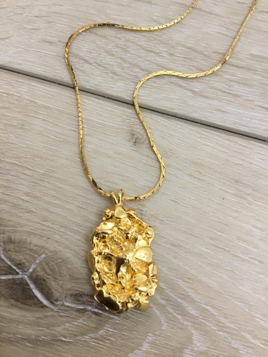 Vintage Yellow gold chain necklace with yellow gold, Golden nugget pendant