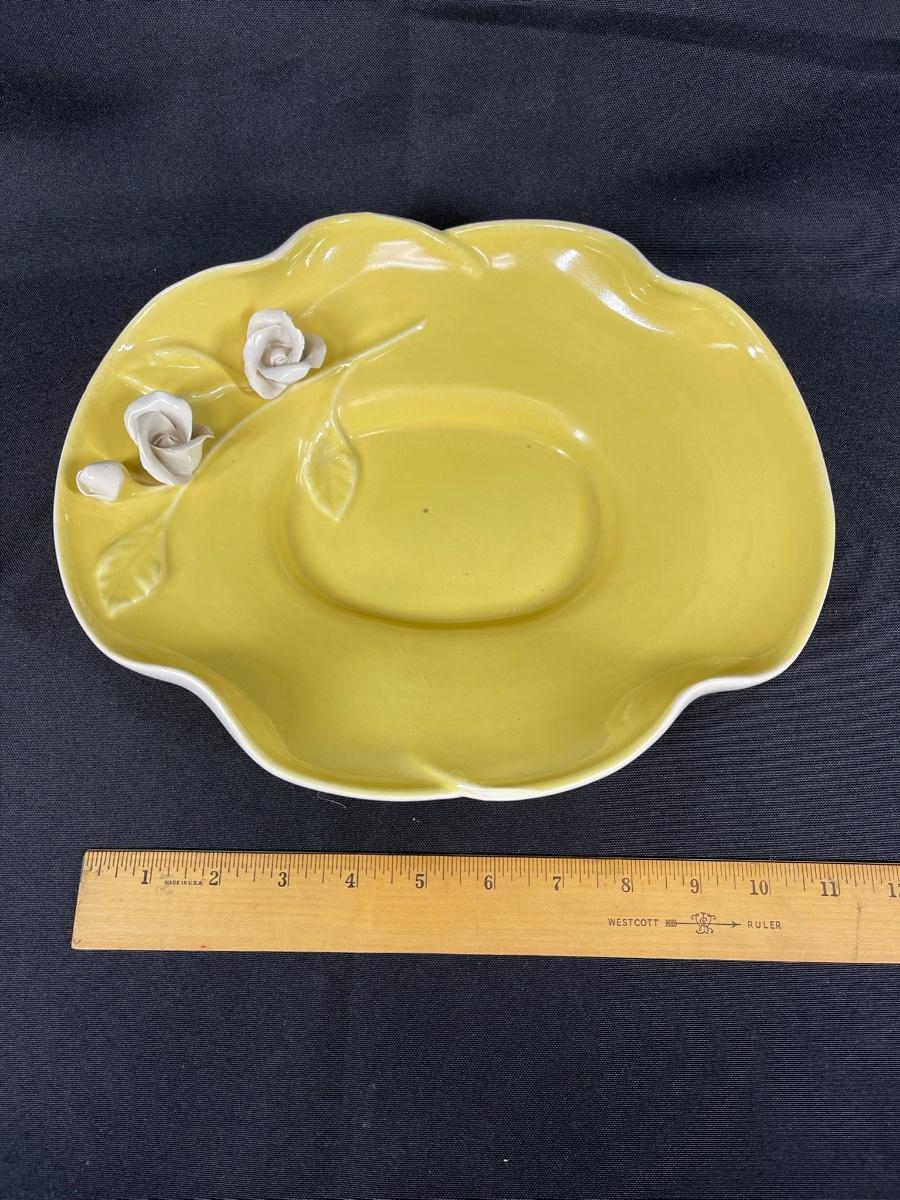 Vintage Yellow Haldeman Caliente Pottery Dish Bowl Plate with Roses
