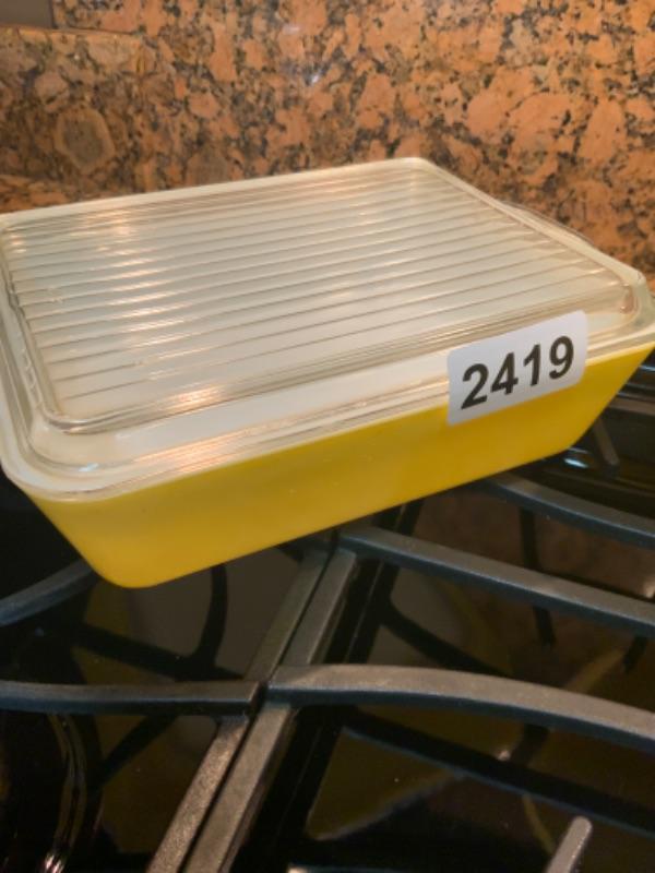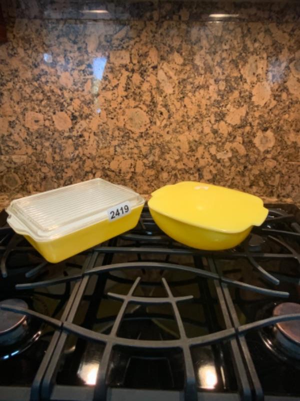 Vintage yellow Pyrex dishes with lid Lot 2419