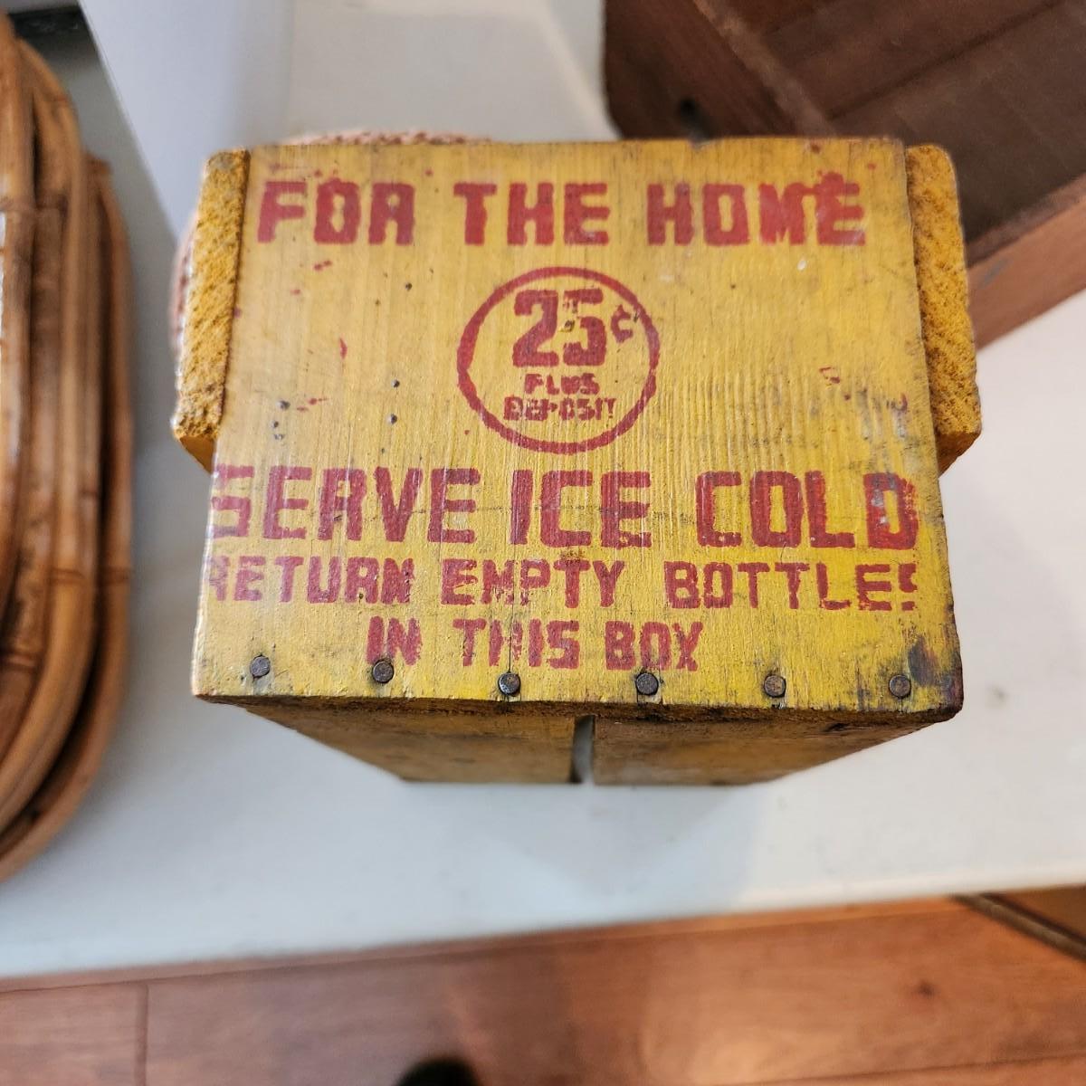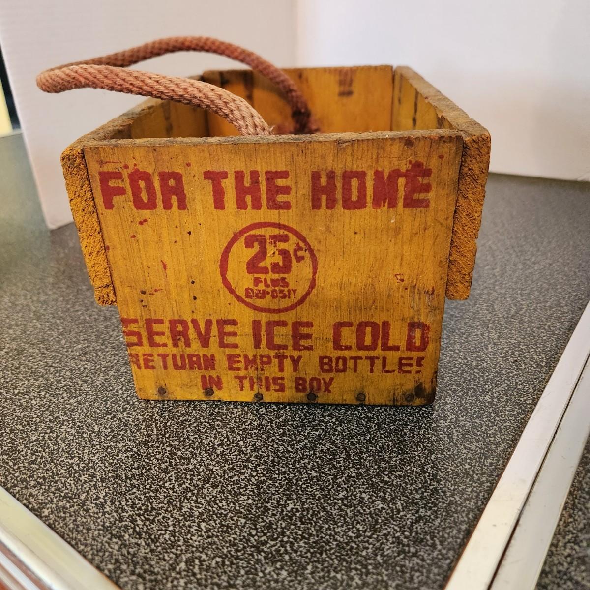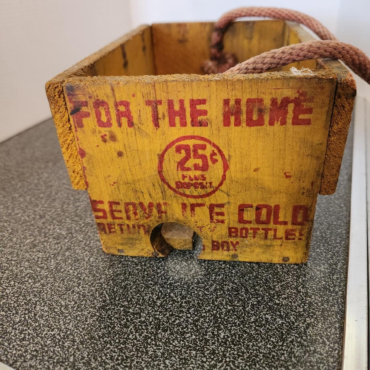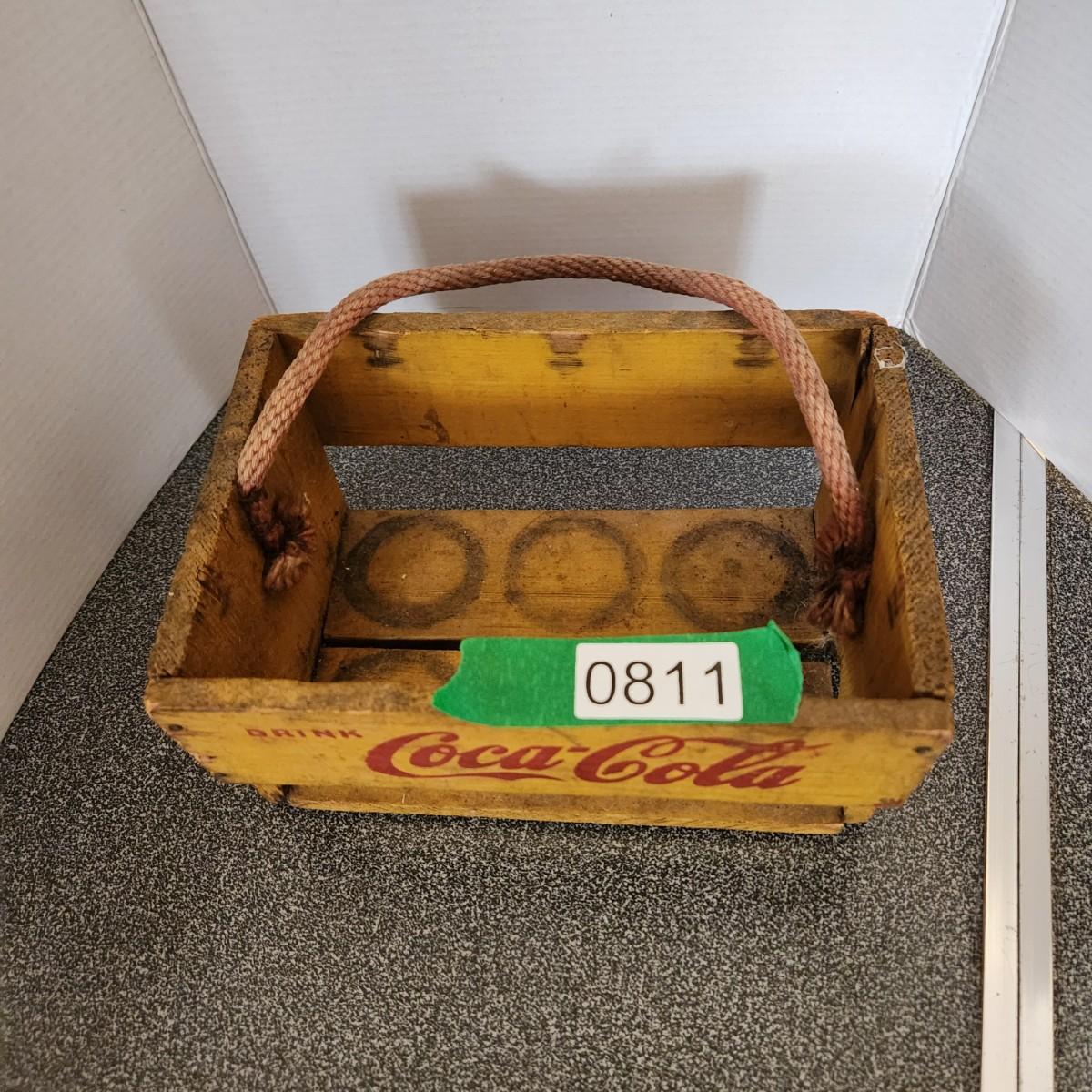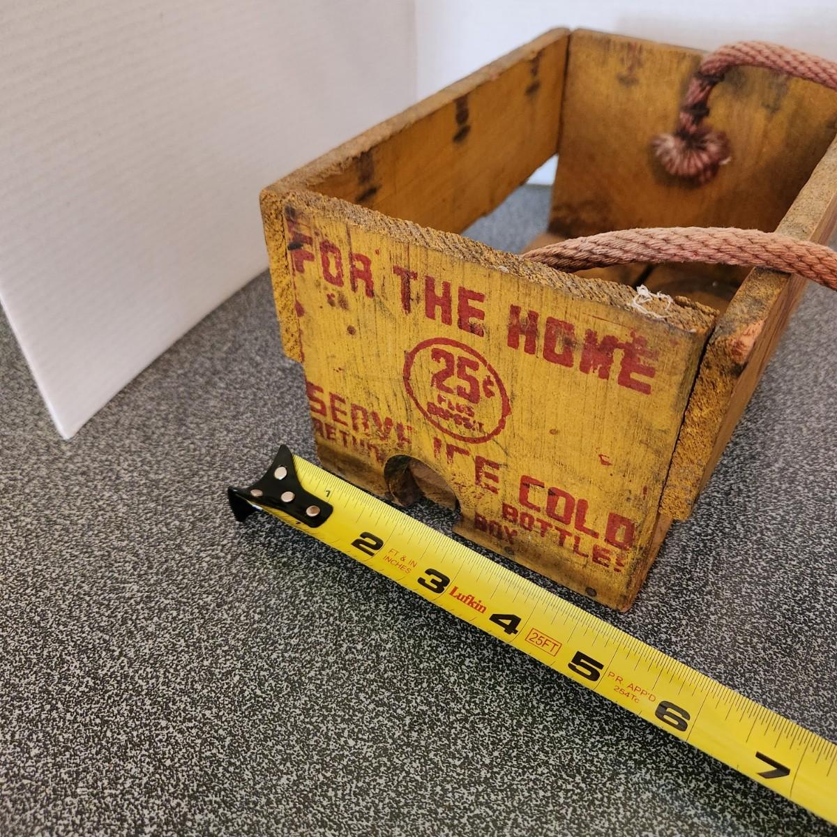 Vintage Yellow Red Coca-Cola Wooden 6 Pack Crate w Rope handle