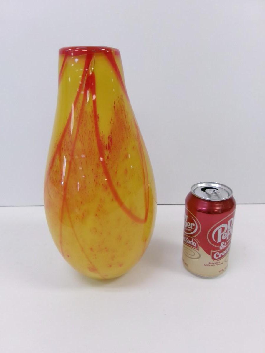 Vintage Yellow & Red Vase Approx 11 1/2" Tall
