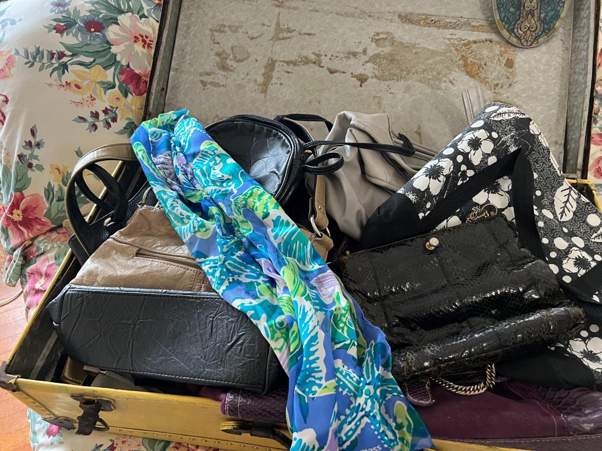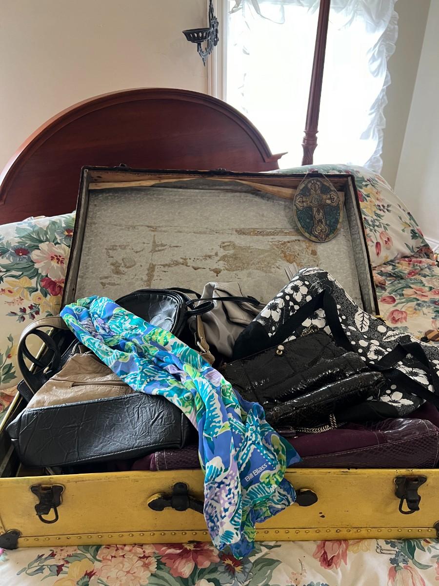 Vintage Yellow Suitcase Filled w/ Assorted Purses Lot