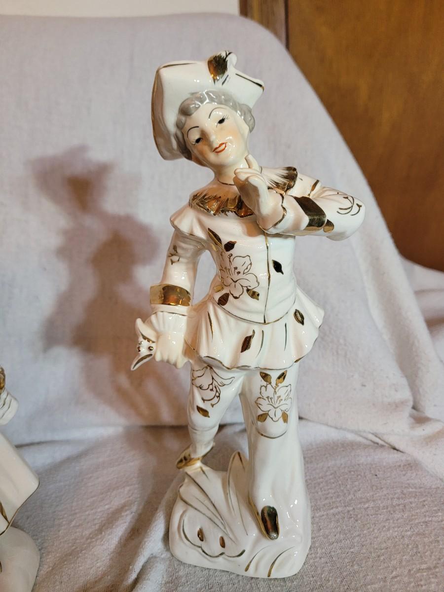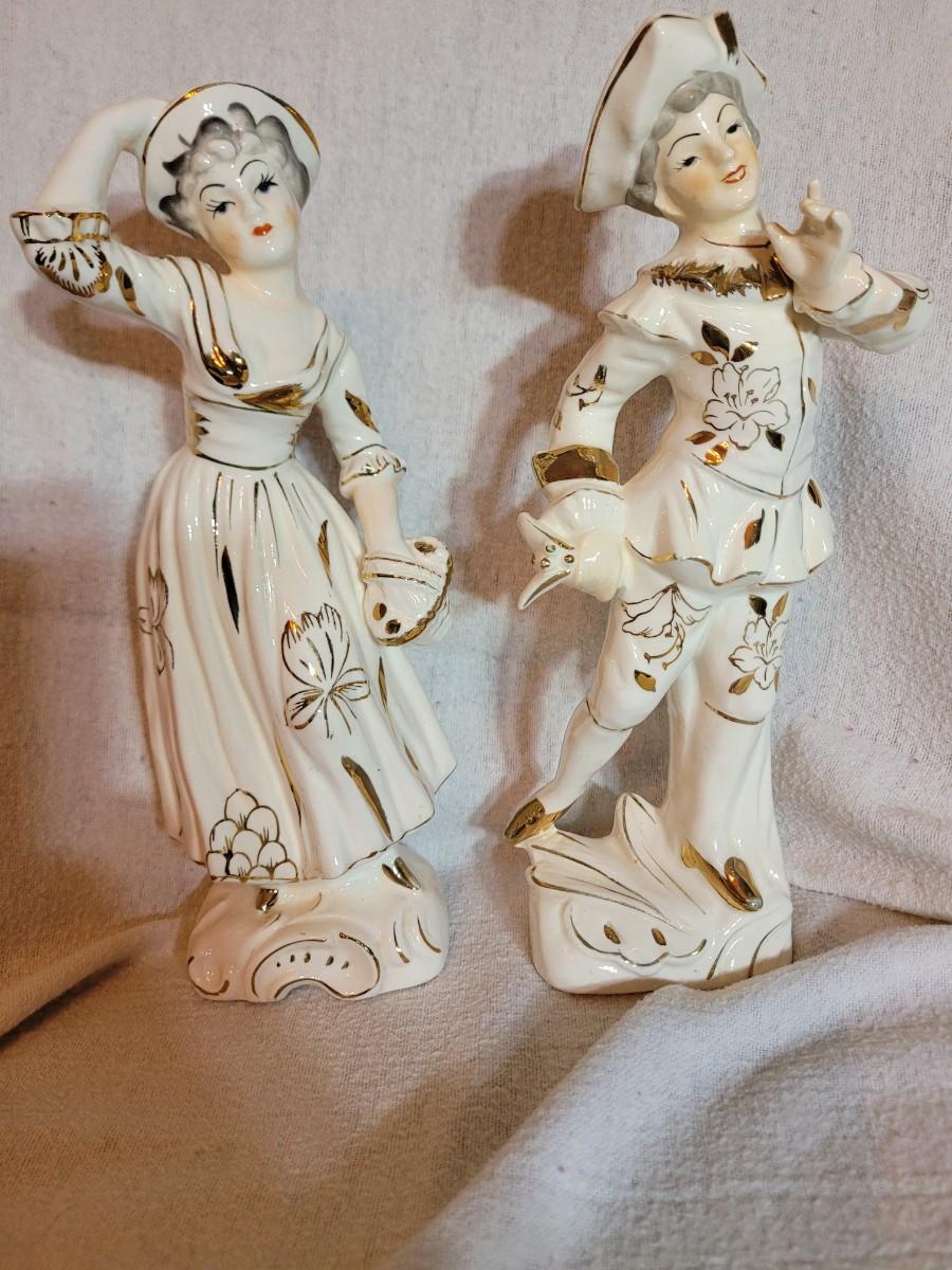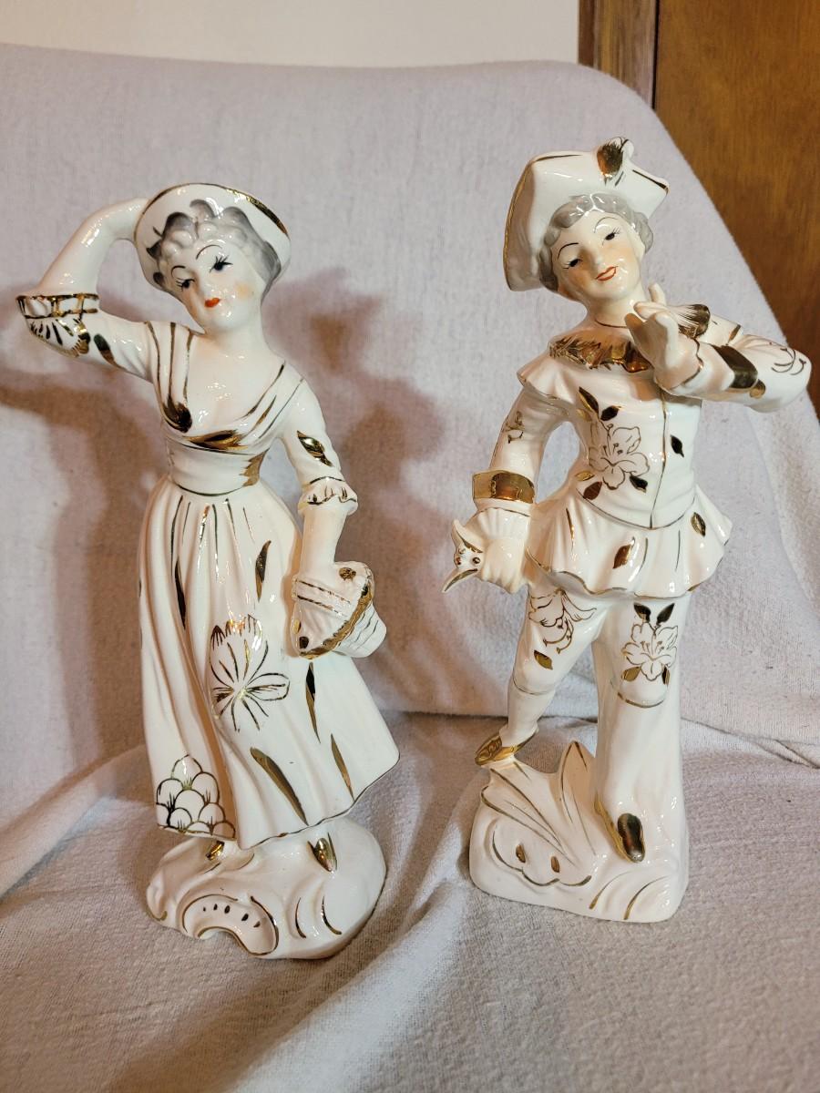 Vintage Yoko Boeki Japan White and Gold Porcelain Man Woman Musician Figurines
