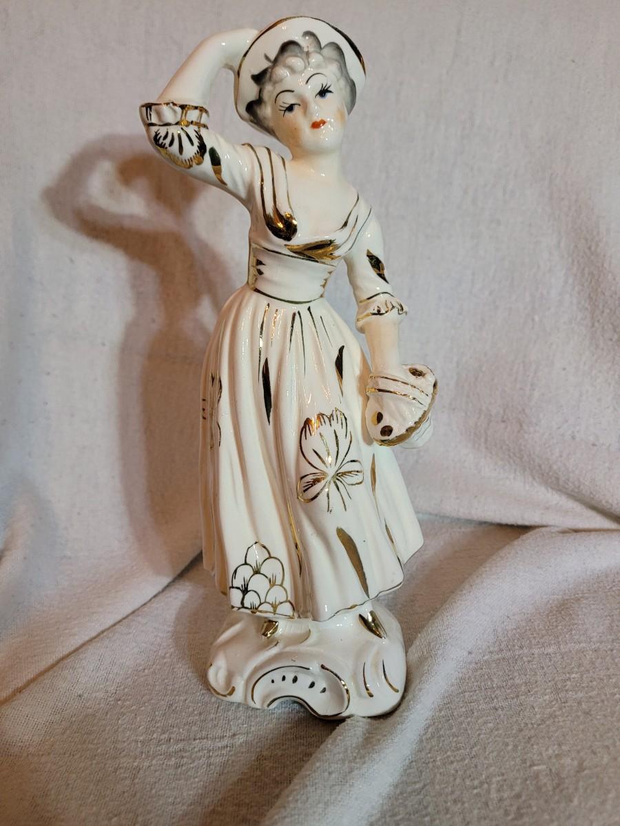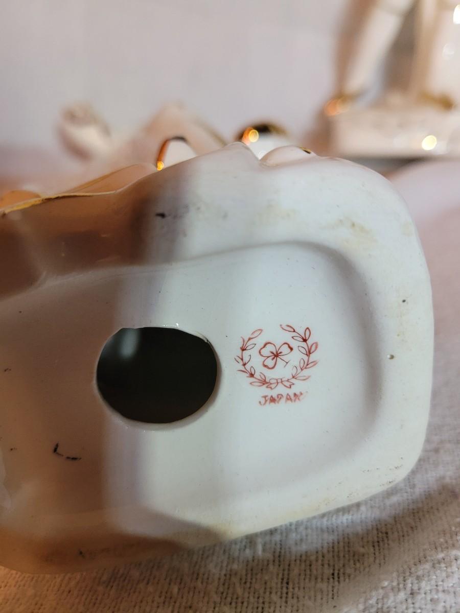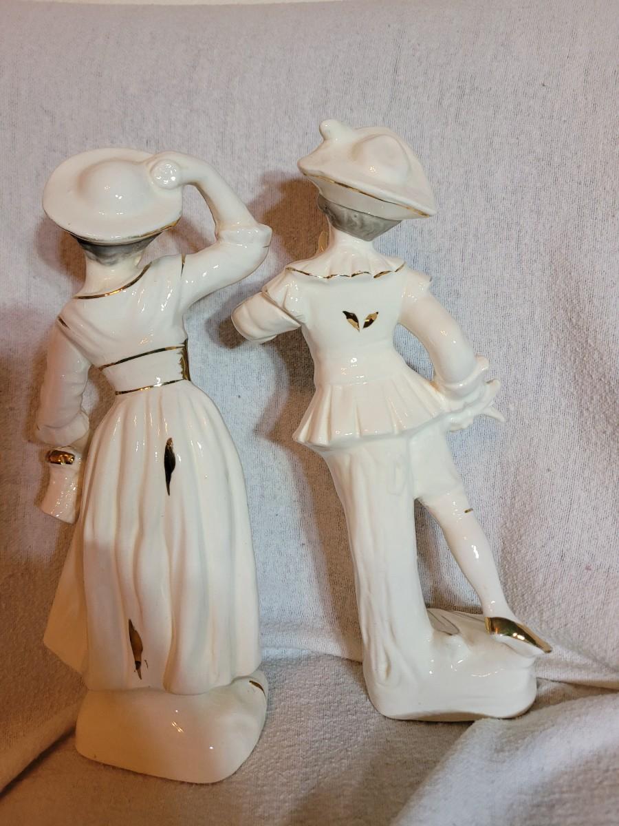 Vintage Yoko Boeki Japan White and Gold Porcelain Man Woman Musician Figurines
