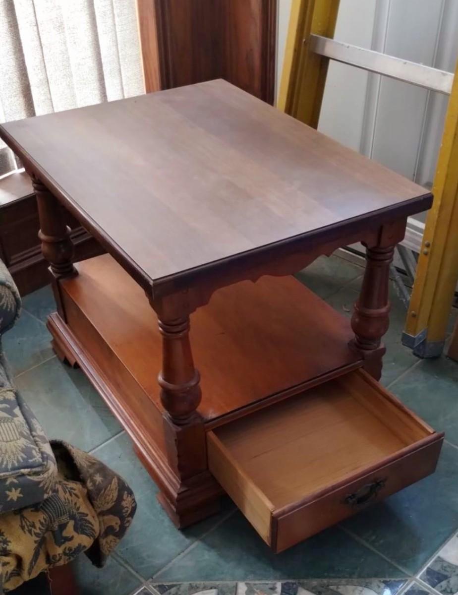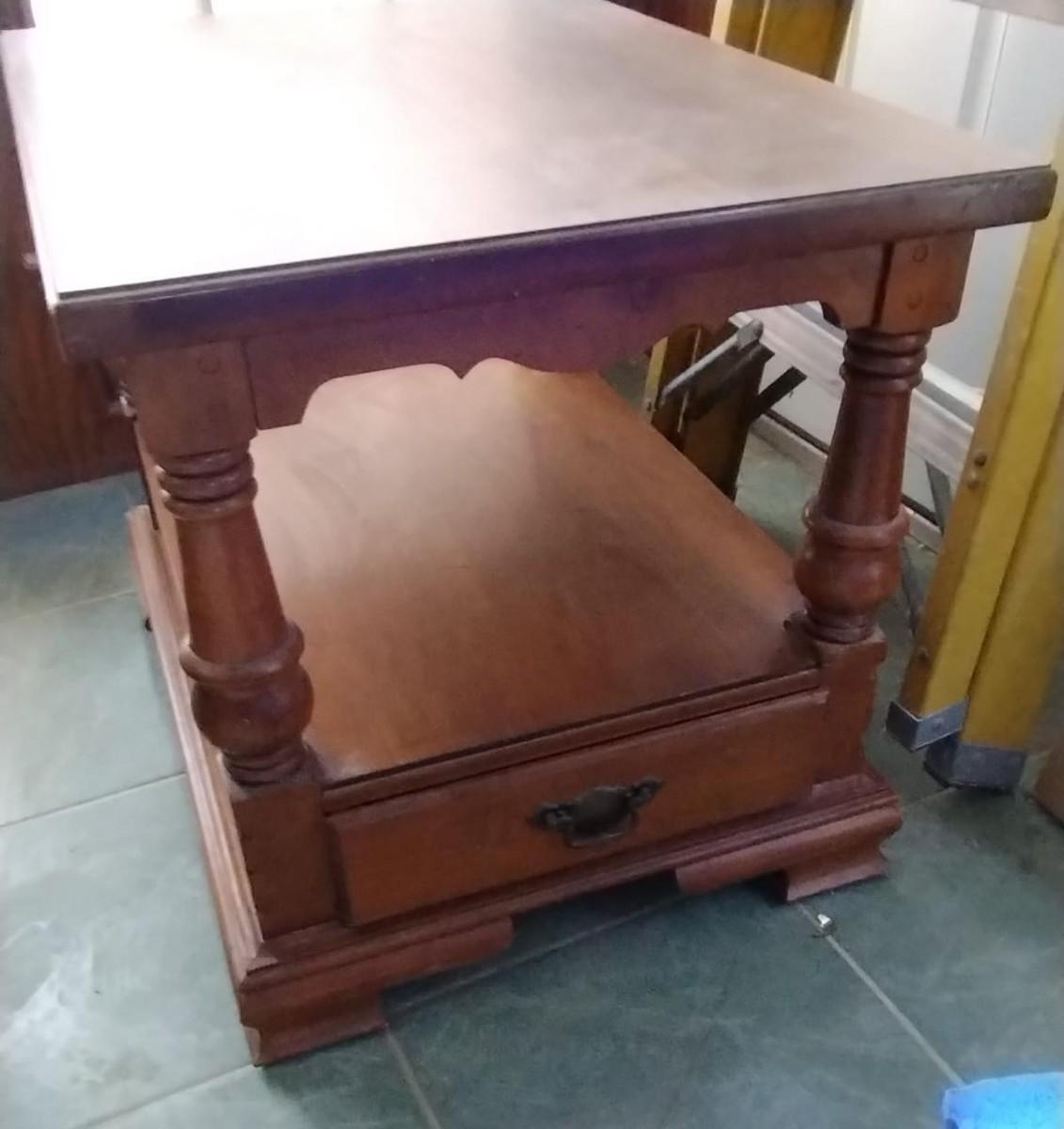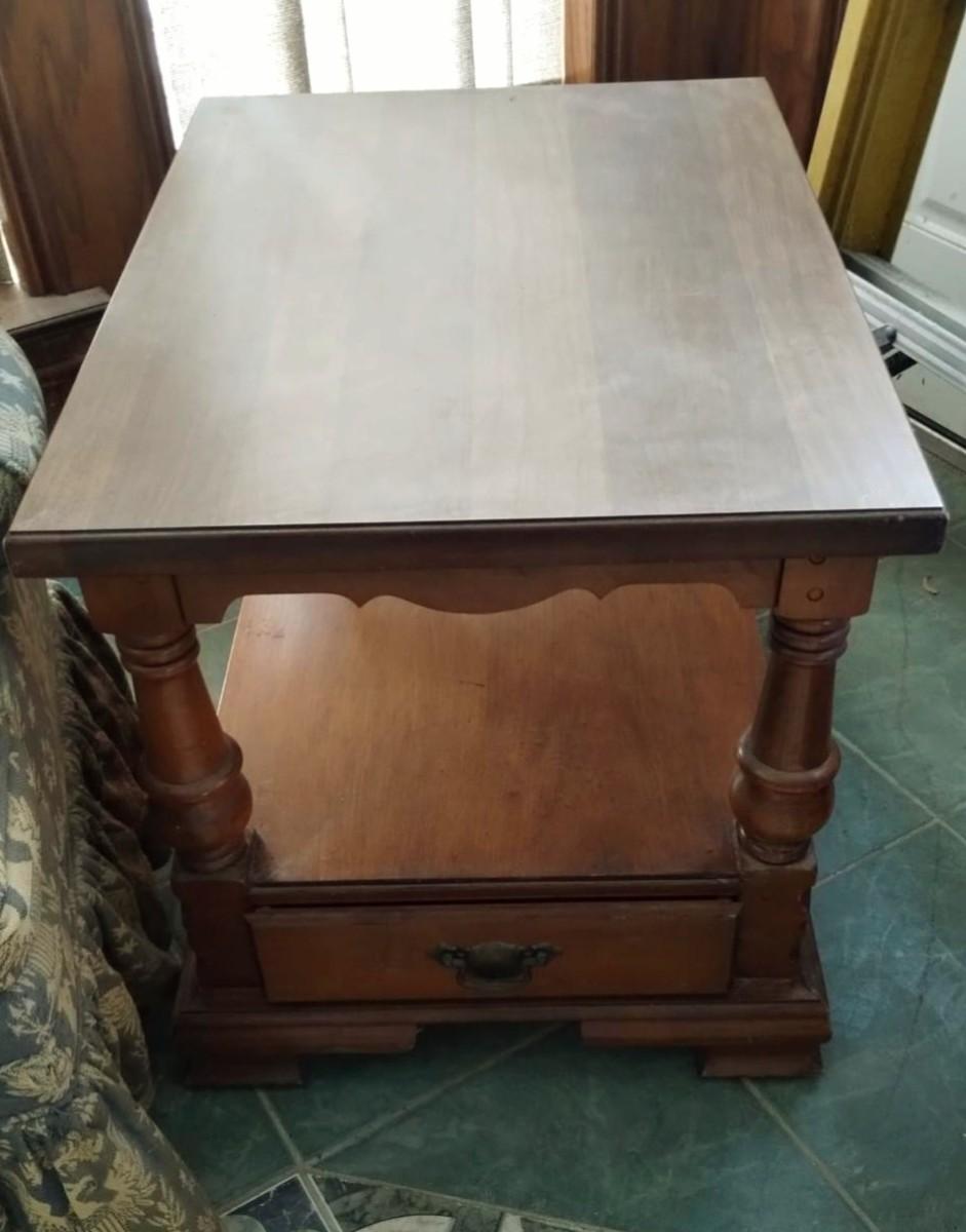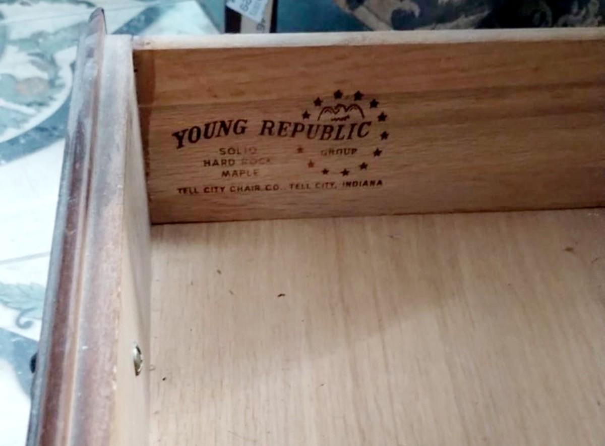 Features 1 dovetailed drawer. Made by Young Republic furniture company of Tell City Indiana. Single dove tailed drawer. No structural issues/defects. Shows normal cosmetic signs of age/use such as surface wear. Slight blemish on front edge of end table Please see all detailed photos.