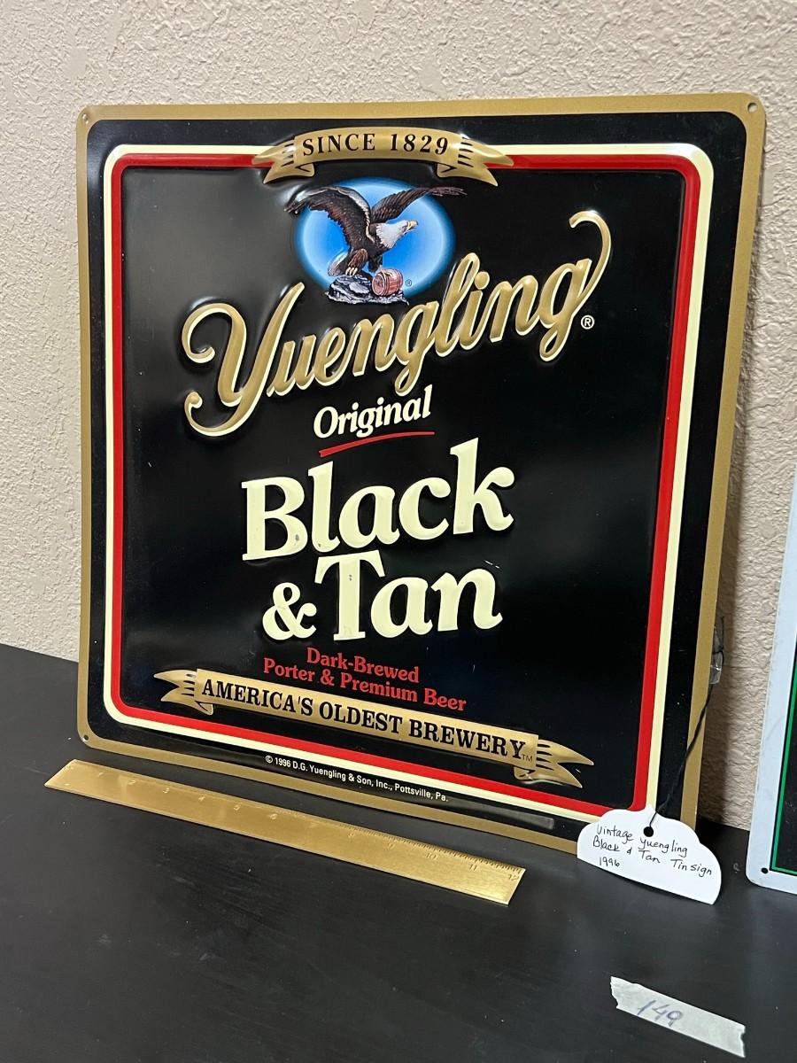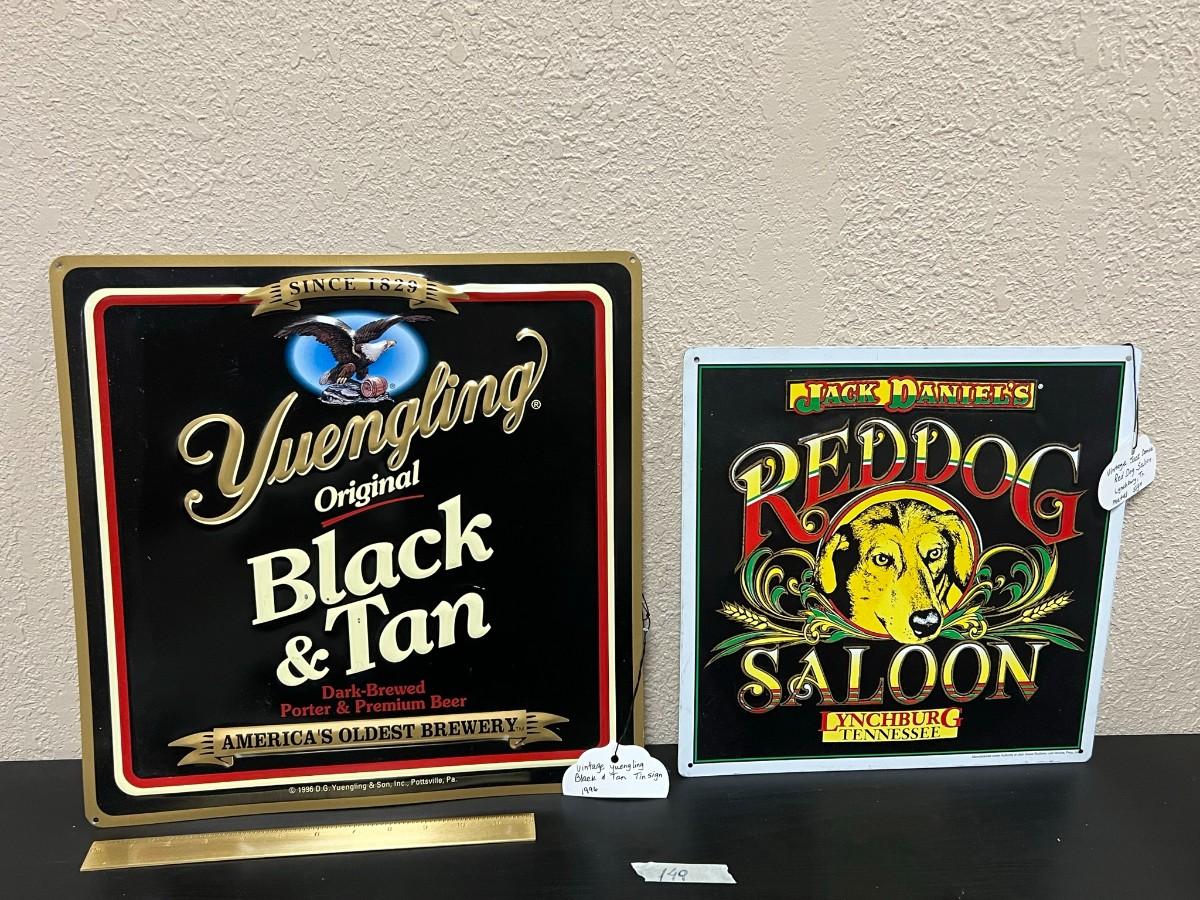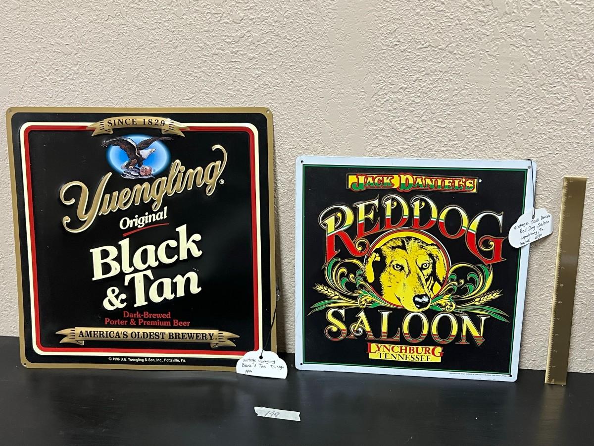 Vintage Yuengling Original Black & Tan Tin Sign 1996 Beer Wall Hanging and Vintage Jack Daniels Red dog Saloon sign 1990s Bar room Game