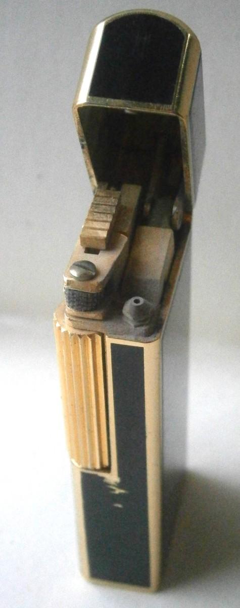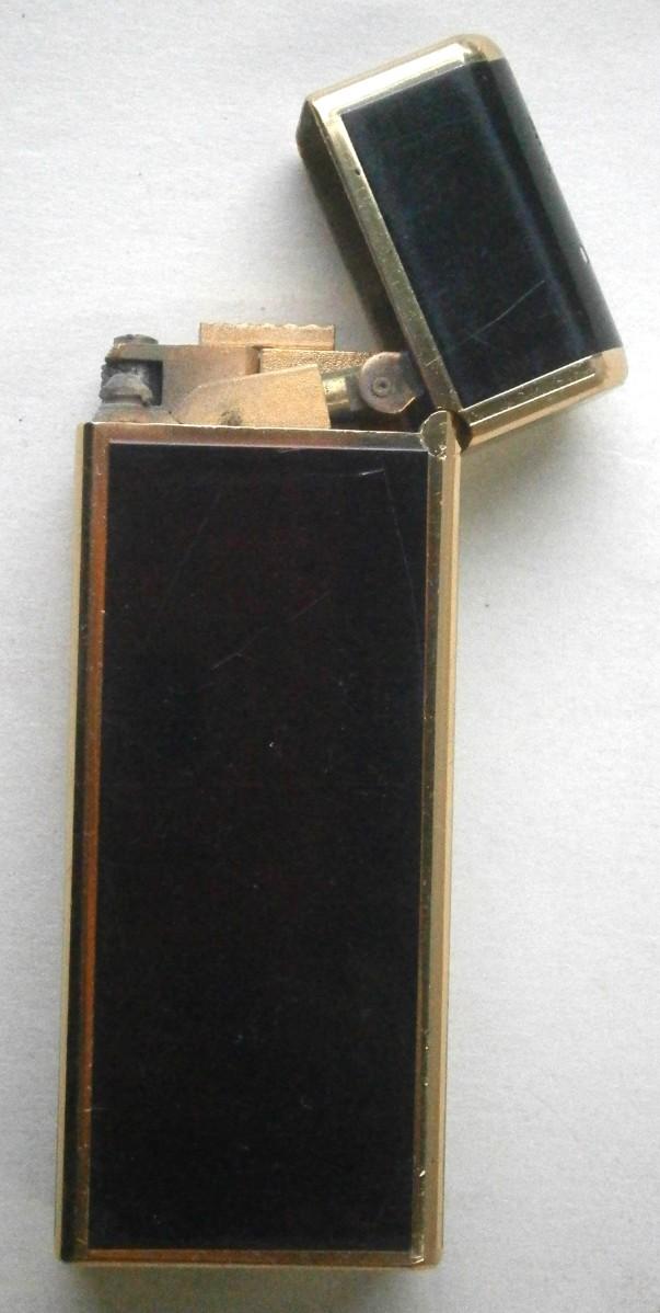 Vintage "ZAIMA" Cigarette Lighter made in Japan in the 1960's, 2 5/8 in. tall, enamel on gold tone metal.
