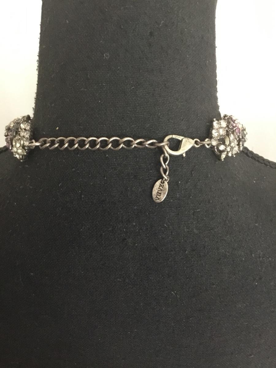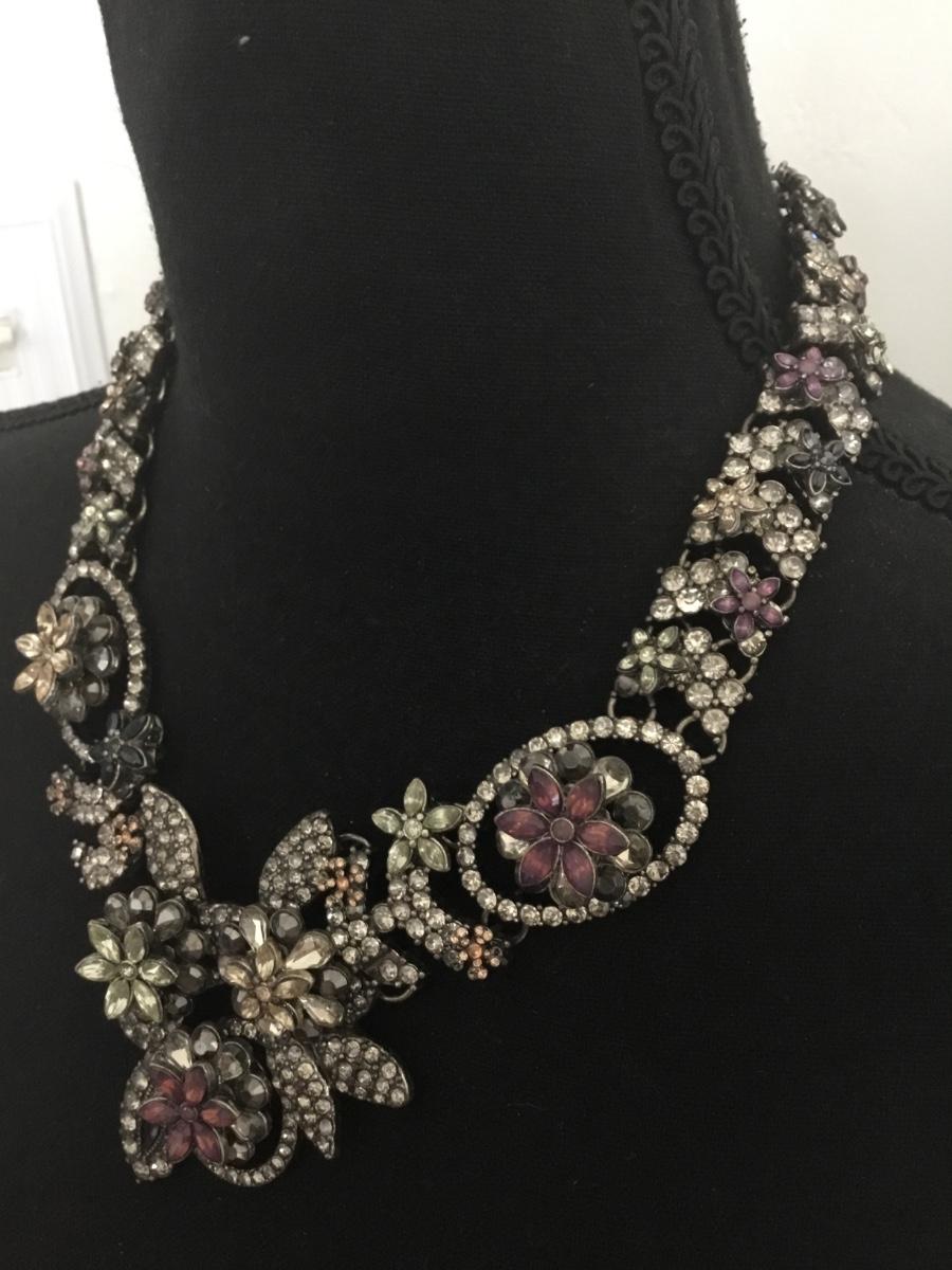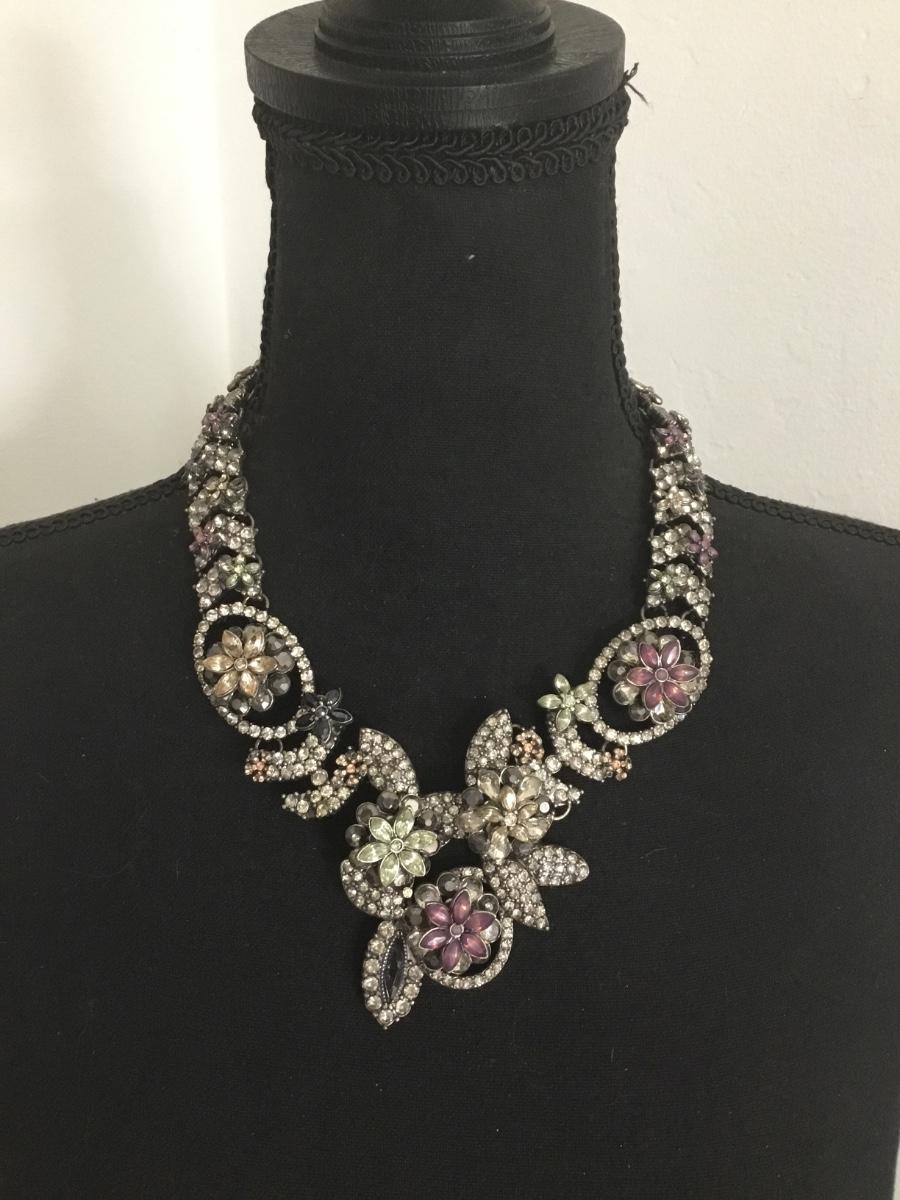 Vintage Zara, rhinestone, flower, statement, necklace, silver toned