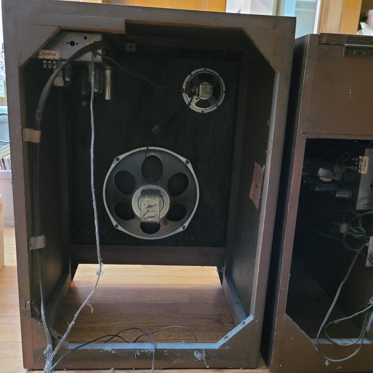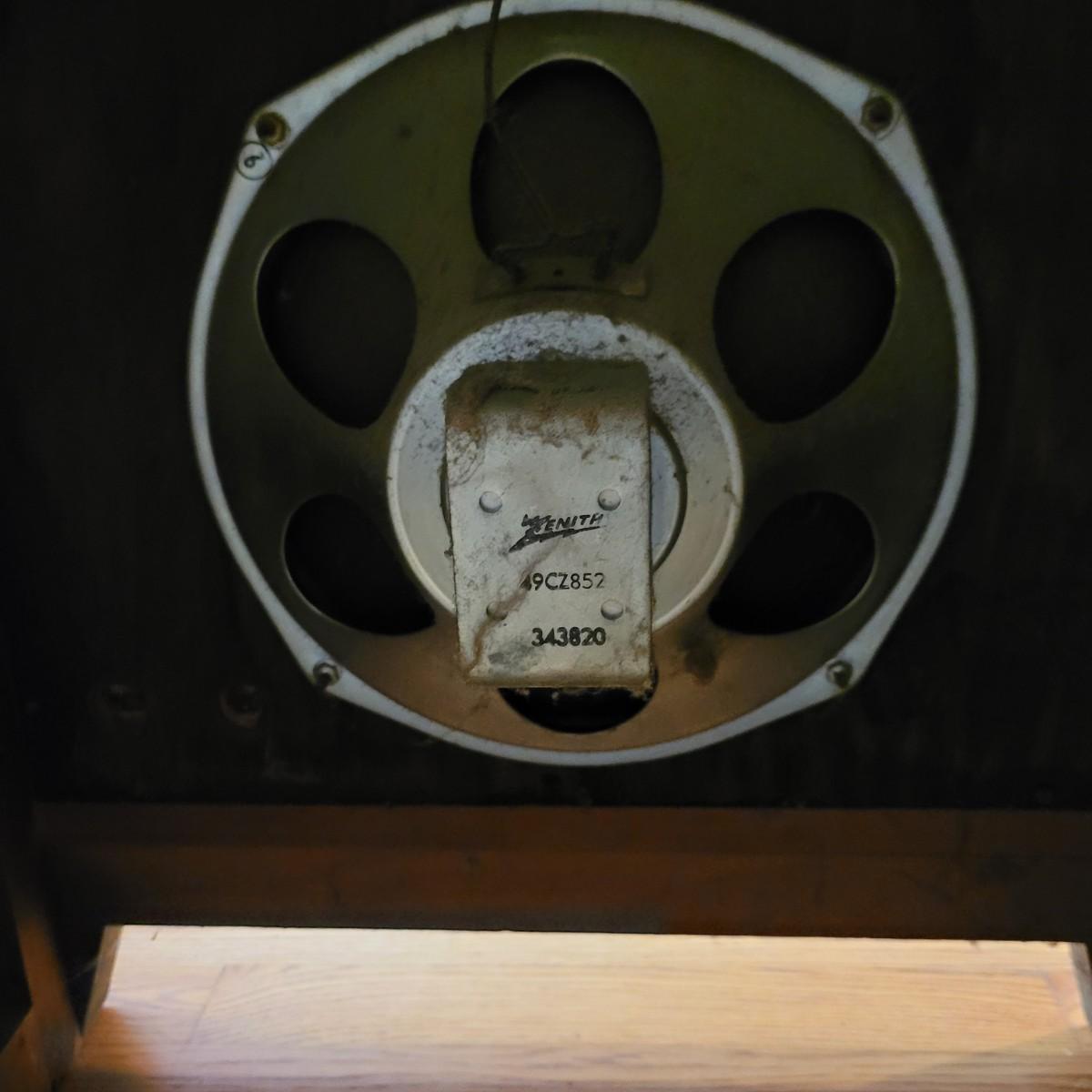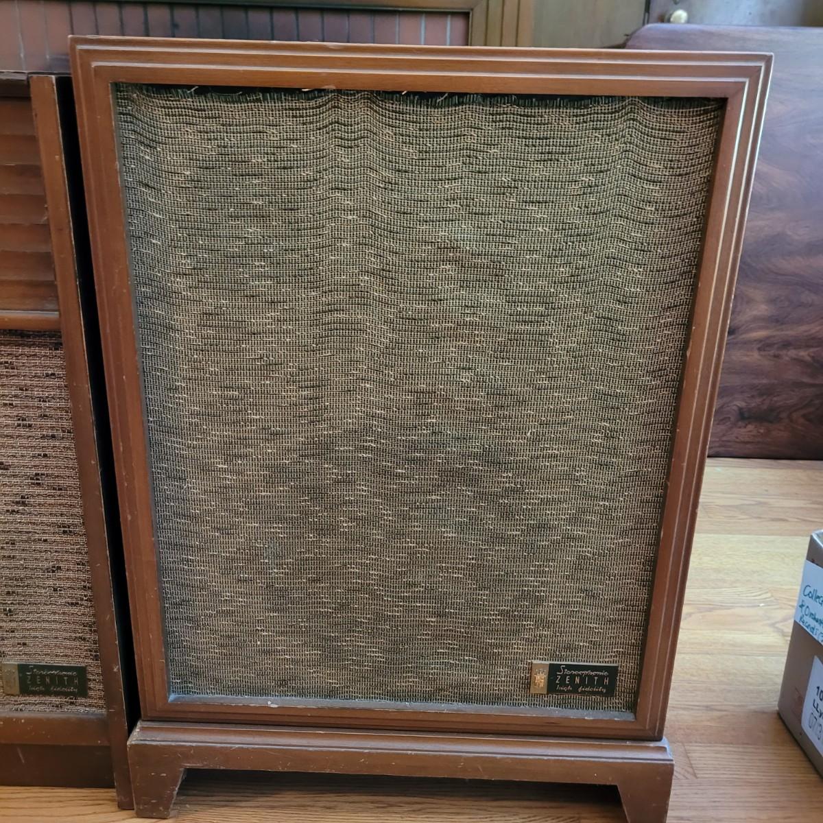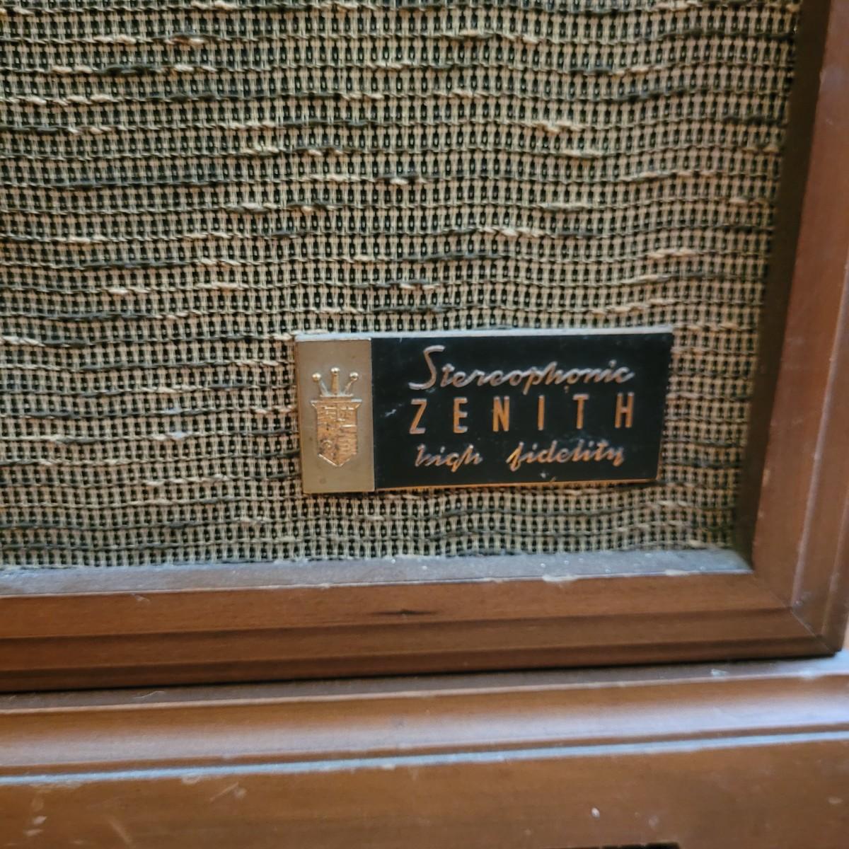 Vintage Zenith high fidelity phonograph with speaker. Unable to test if it works. Phonograph measures approximately 26"L x 17"D x29.5"H and speaker 21"L x16"D x31"H. Local pickup only.