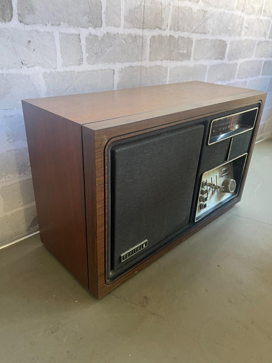 Vintage Zenith model J4 AM/FM radio, circa 1970's. Tested and working. 16" x 10" x 7"