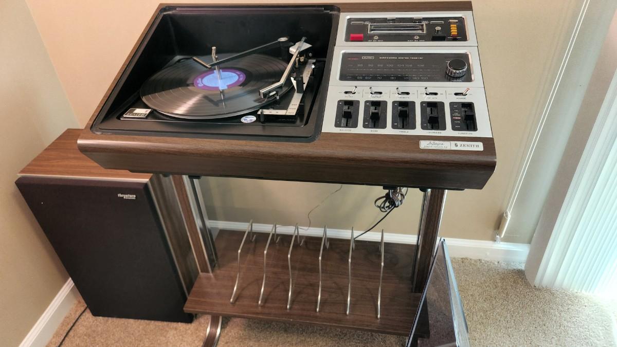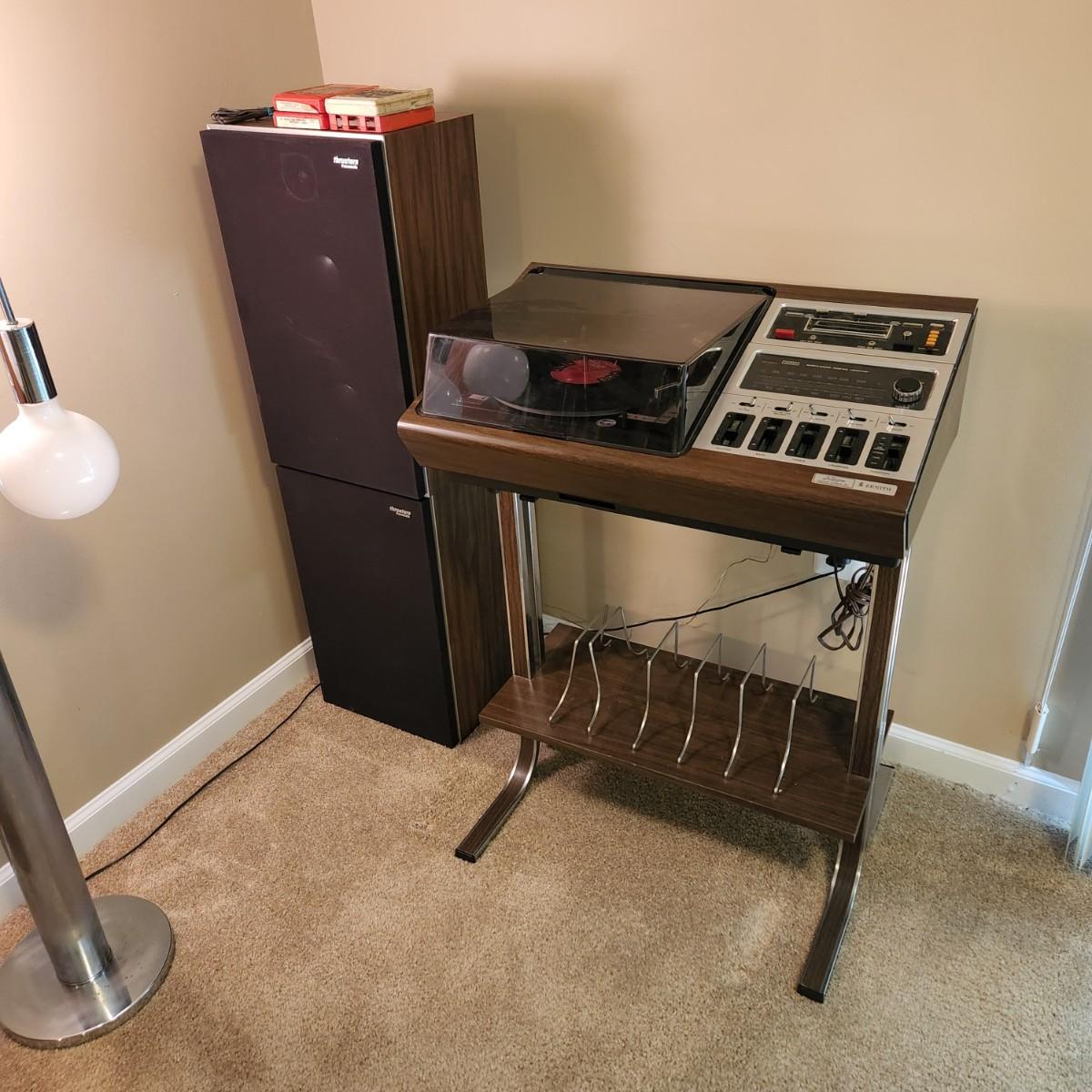 Vintage Allegro Wedge Sound System by Zenith Record , AM/FM 8 Track Combo Player w Stand