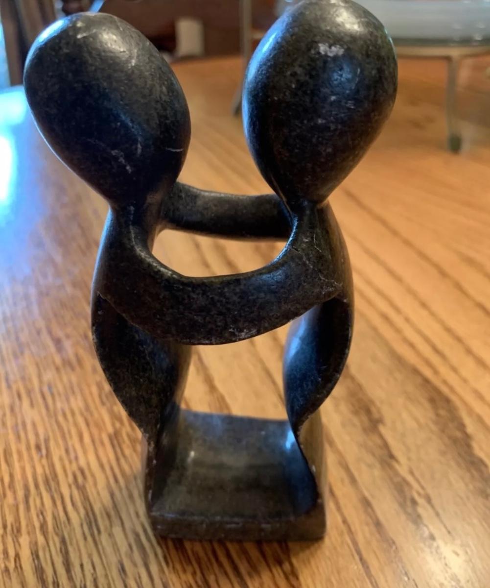 Vintage Zimbabwe South Africa “Lovers Embrace” Shona marble/stone figurine, 6” H