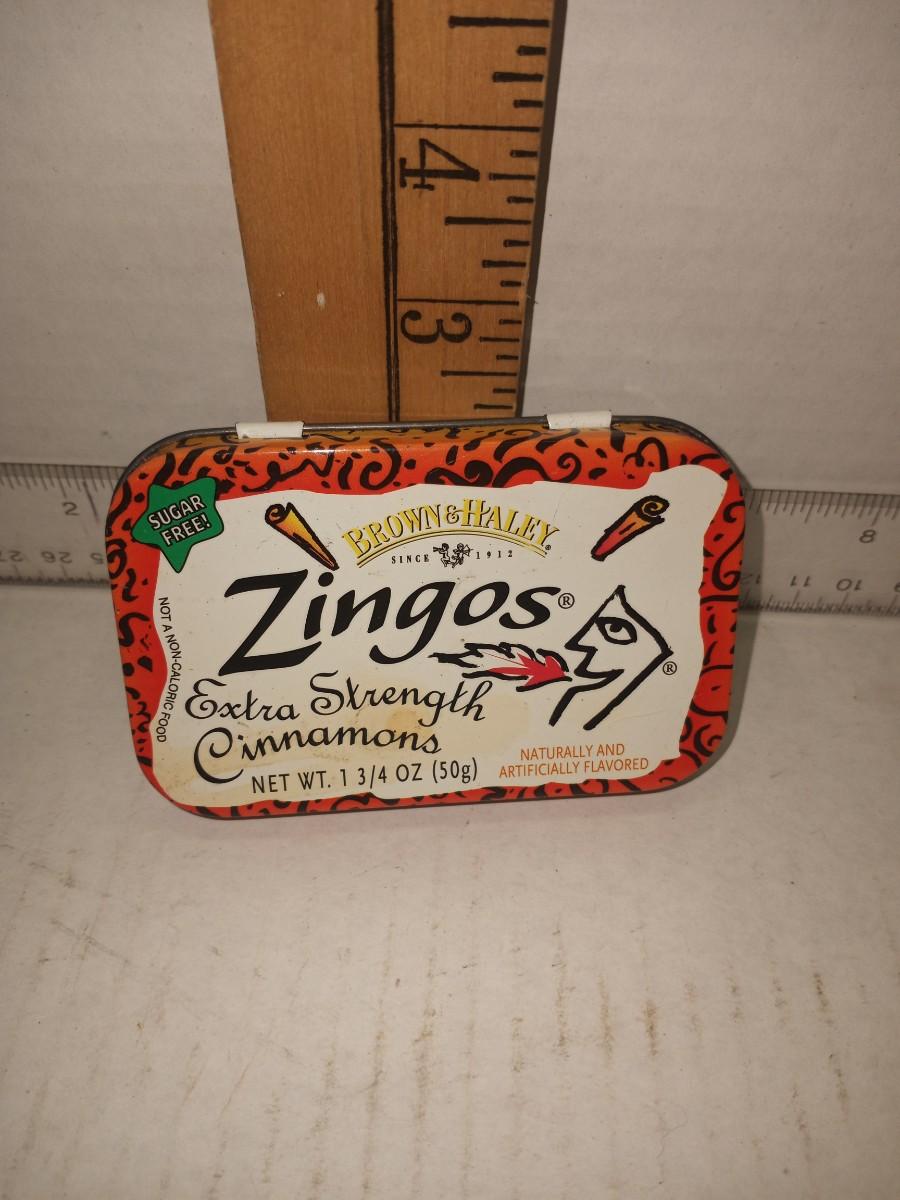Vintage Zingos Cinnamon Mints Sugar Free Candy Tin. Brown & Haley