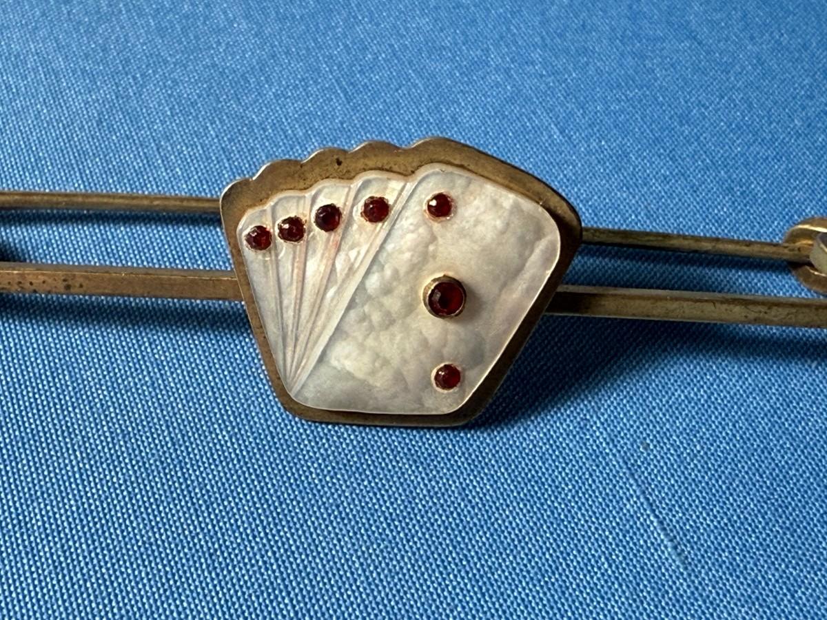 Vintage/Antique "ROYAL FLUSH CARDS" 3" Mother of Pearl Horse Blanket Safety Pin in Good Preowned Condition.