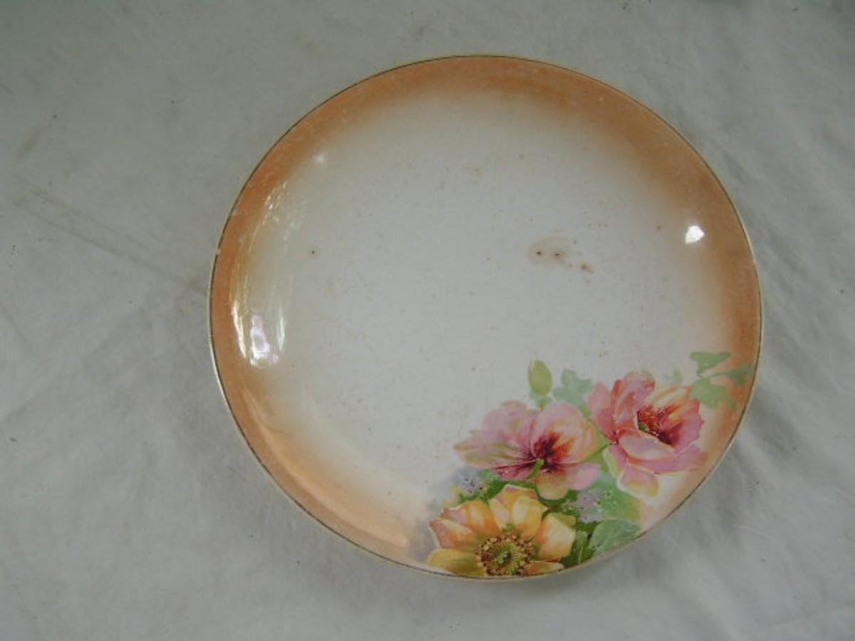Vintage/antique?maybe. Thompson “Glenwood” pattern w/gold rim and Icelandic poppies. Fair condition. 10" dia.