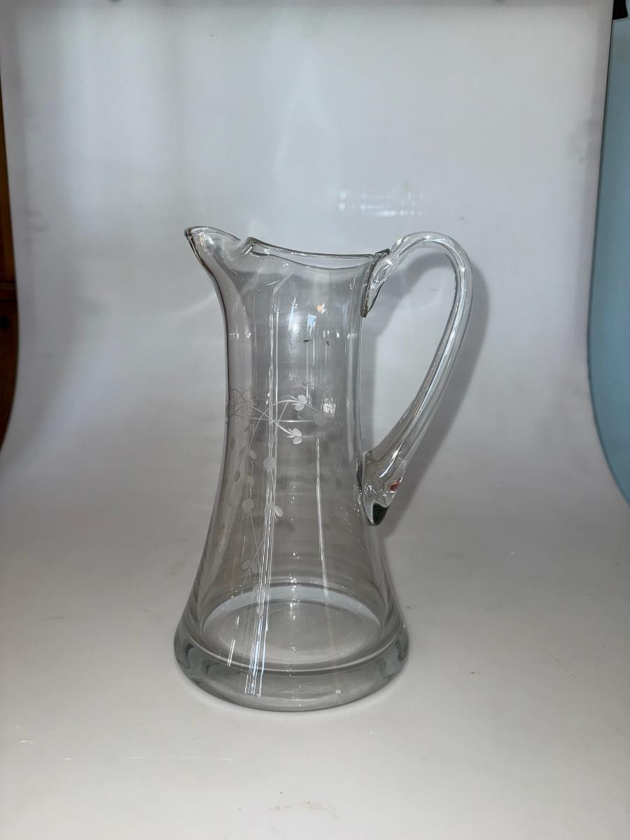 Vintage Etched Glass Pitcher