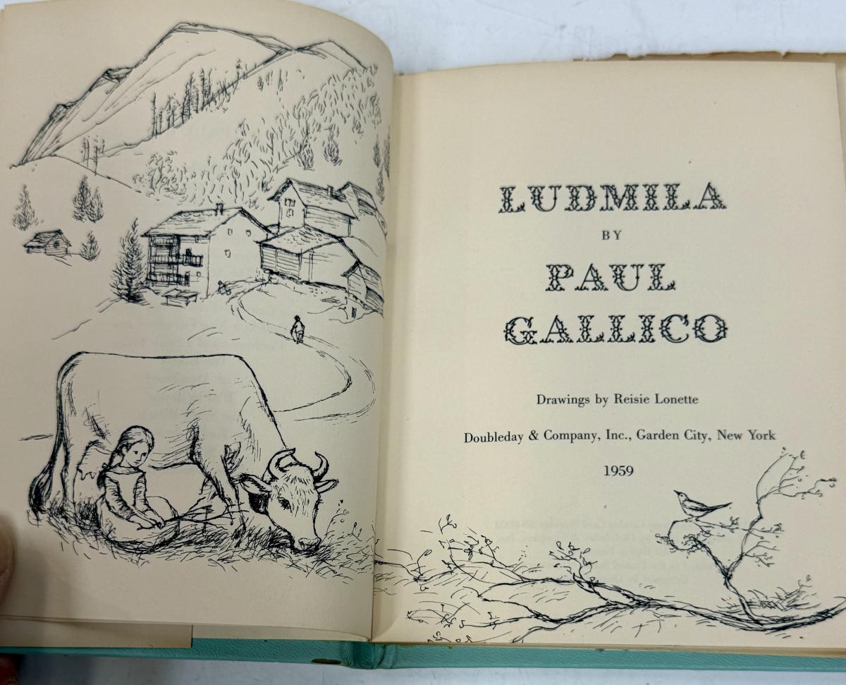 Ludmila: A Legend of Liechtenstein is a 1954 children's book by Paul Gallico about a small cow named Ludmila who wants to win the Liechtenstein harvest ceremony's milk-production competition. The story is set in the Principality of Liechtenstein and features illustrations by Reisie Lonette.