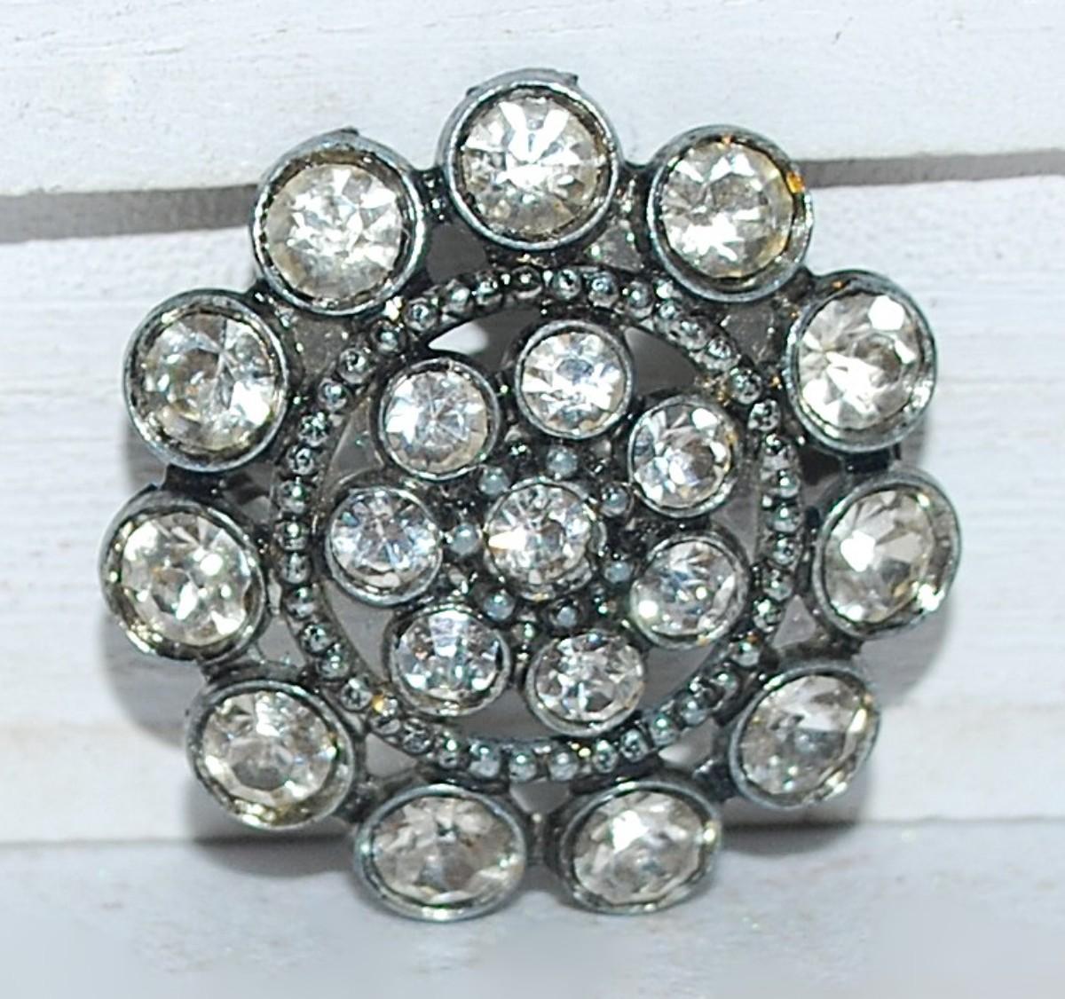 Vintage-Style "Circle-in-a-Circle" BROOCH (1¼" Diam.) with Round Stones on a Silver Tone Setting