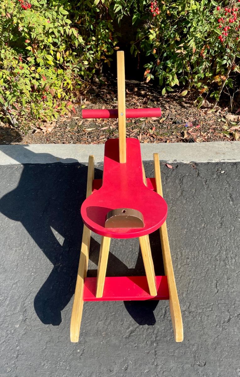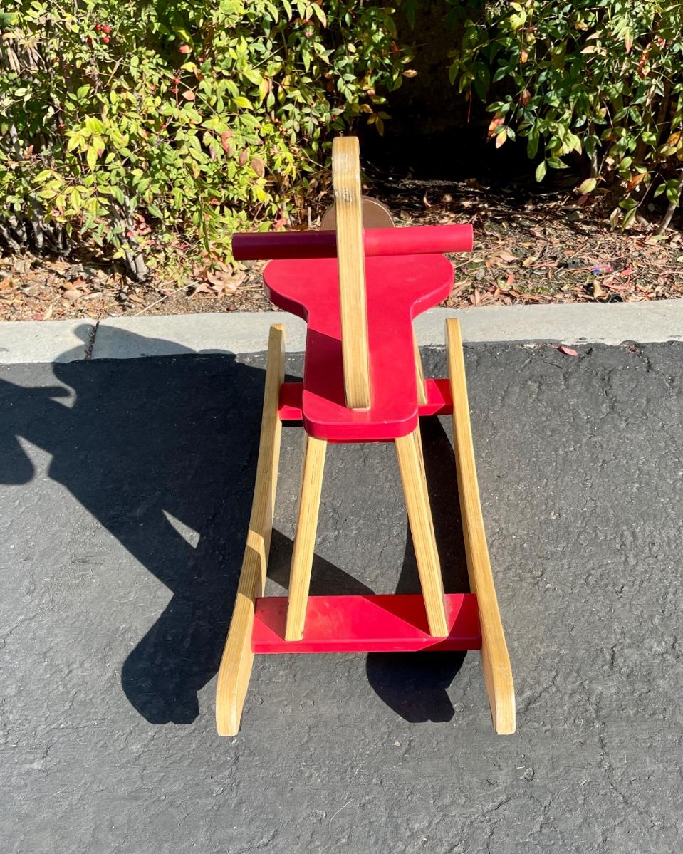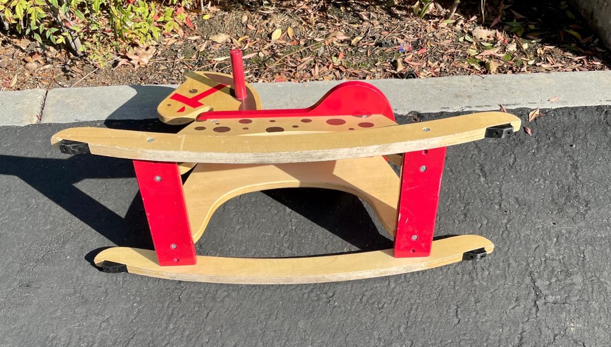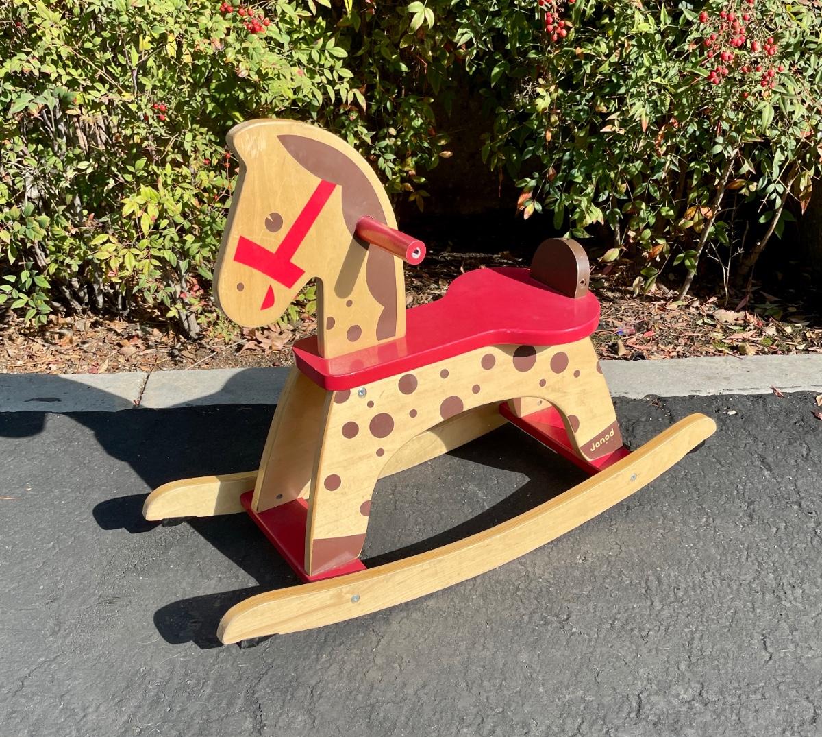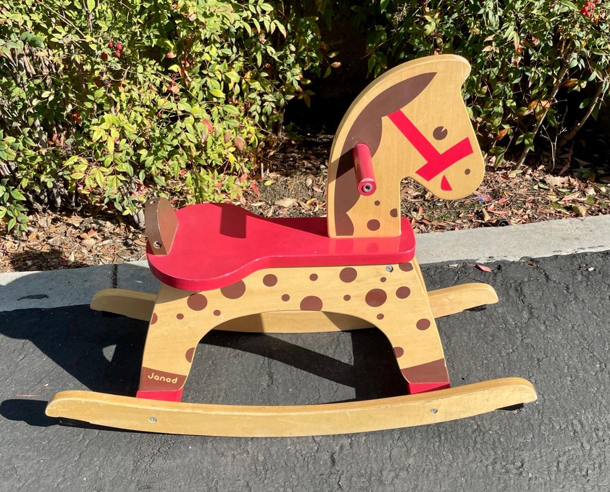 For ages 3 and up. Solid wood construction, painted horse details. Approx. 22" high x 30" long. Good condition.
