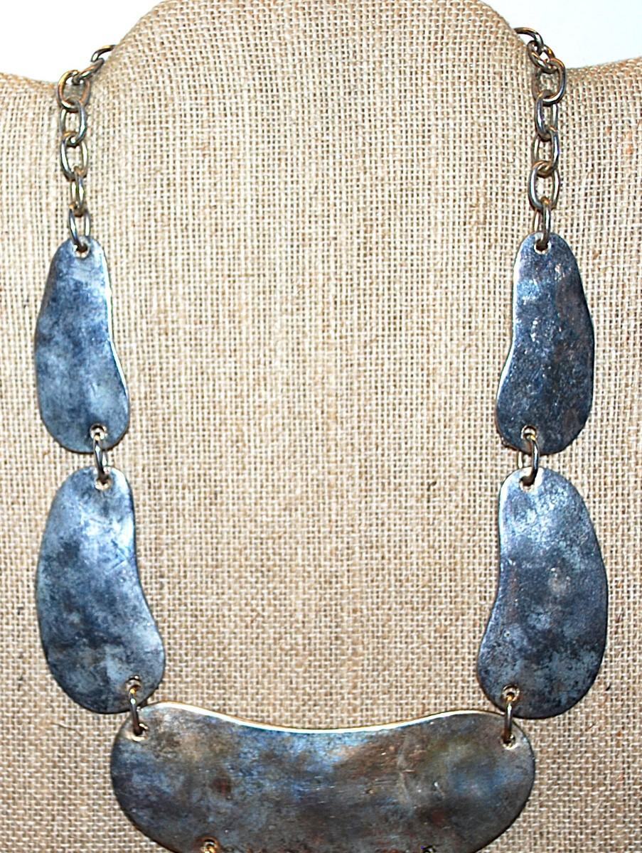 Vintage-Style Large Silver Tone METAL CRESCENTS NECKLACE with Silver Tone Necklace Chain and Lobster Clasp 22" L