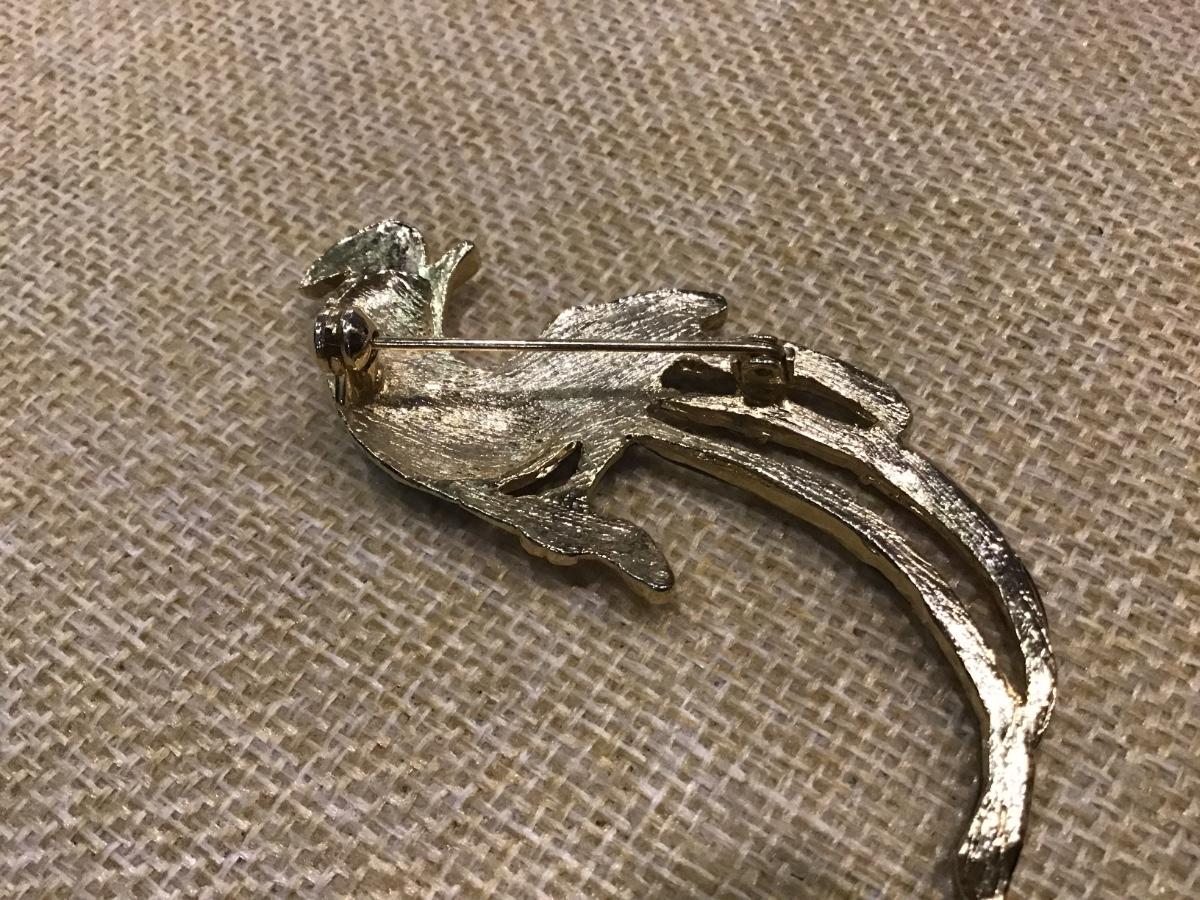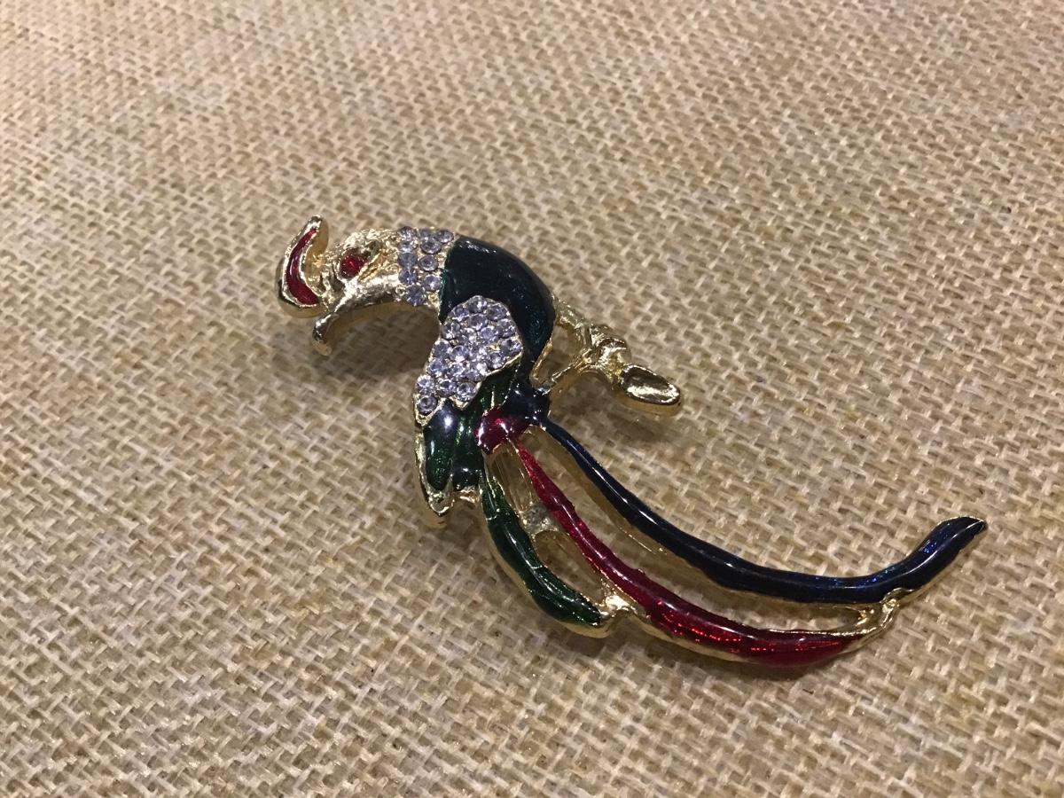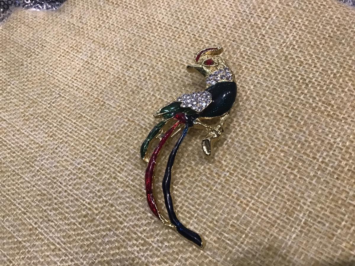 VintageThree Color Lush Enamel Bird of Paradise Rhinestone Head and Wing Brooch Gold Tone