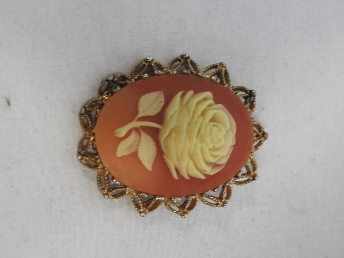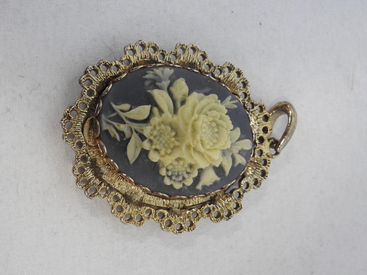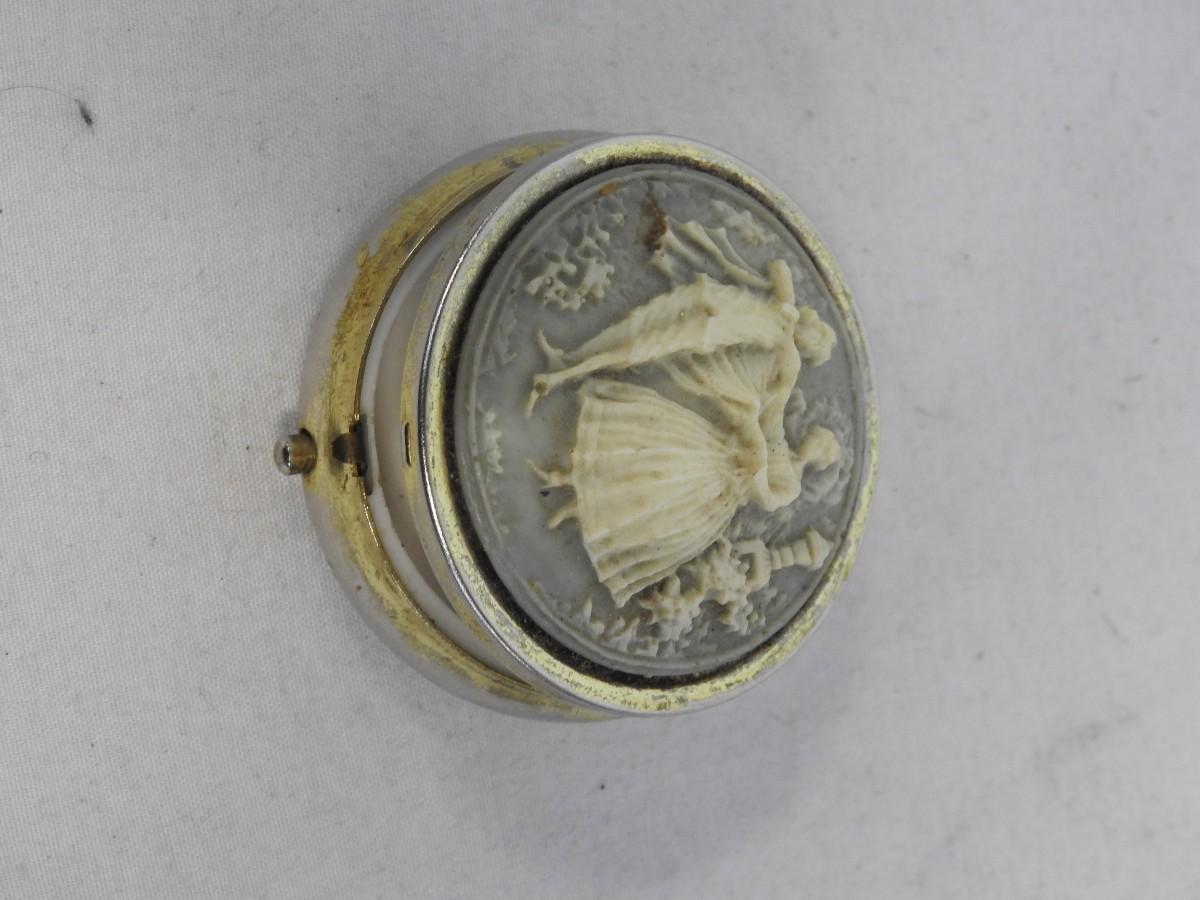 Vintage/Victorian Lot: Cameo, Dancing Couple Pill Box, Vintage Pin & Pendant - Costume Jewelry