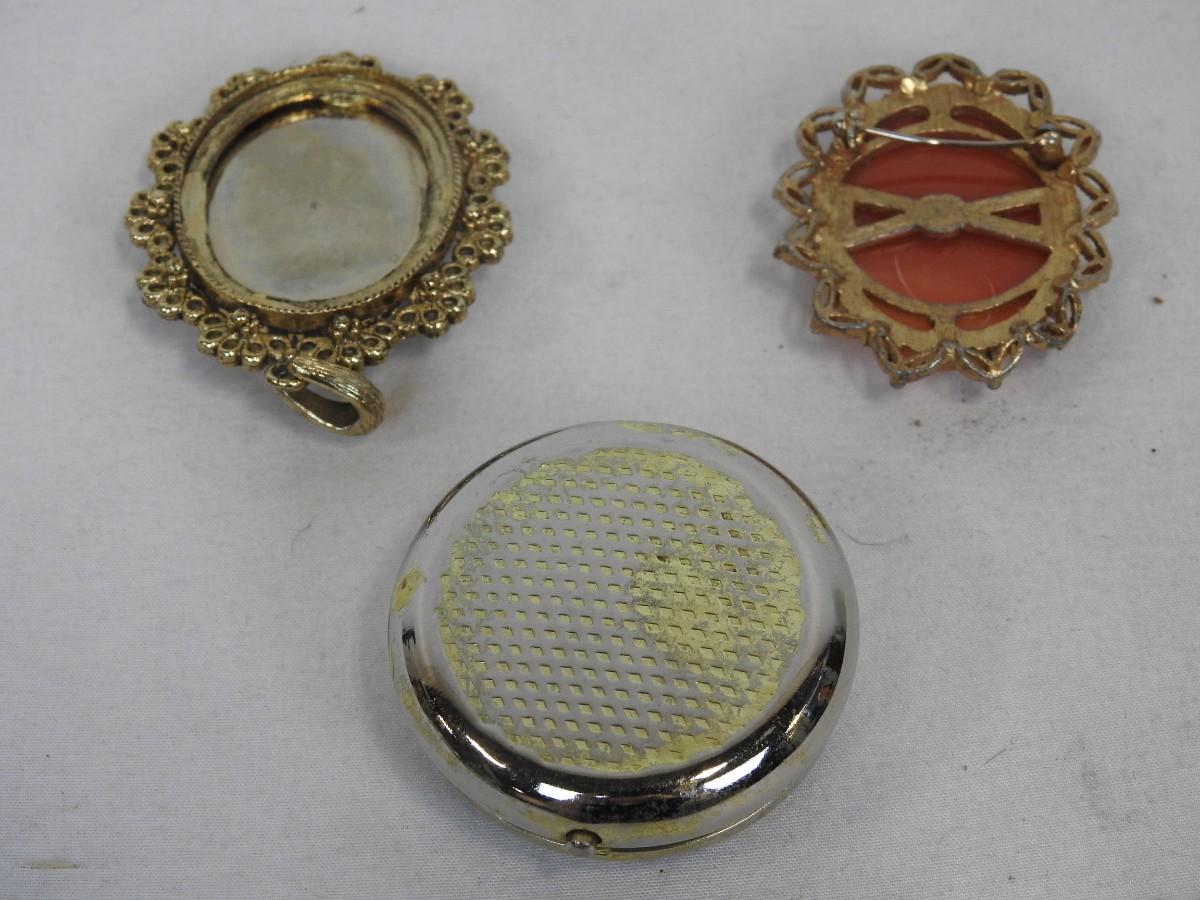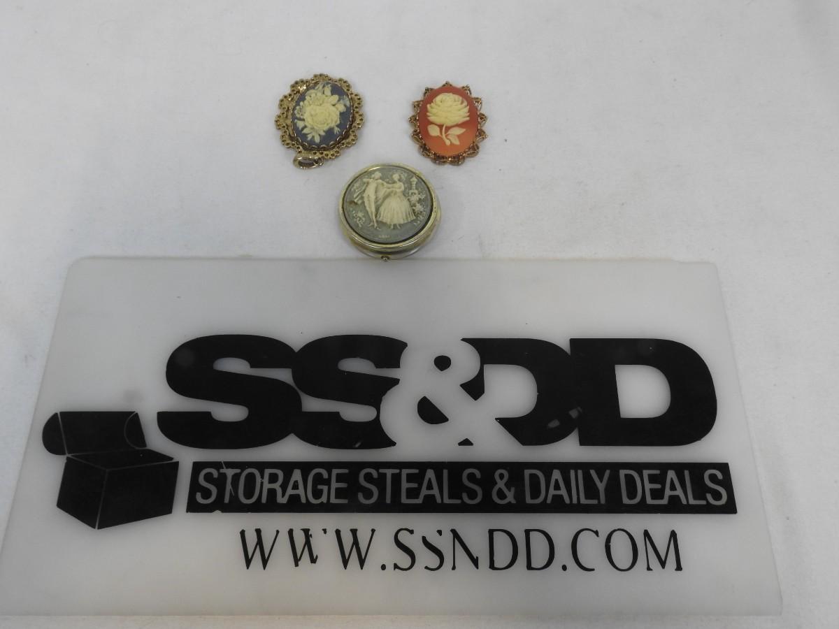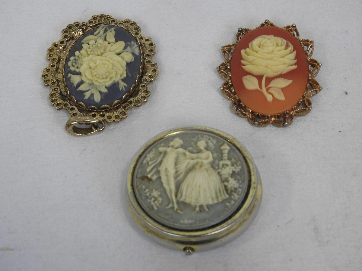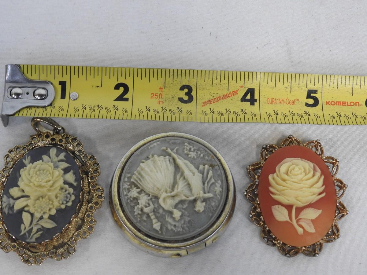 Vintage/Victorian Lot: Cameo, Pill Box, Pin/Pendant - Costume Jewelry
