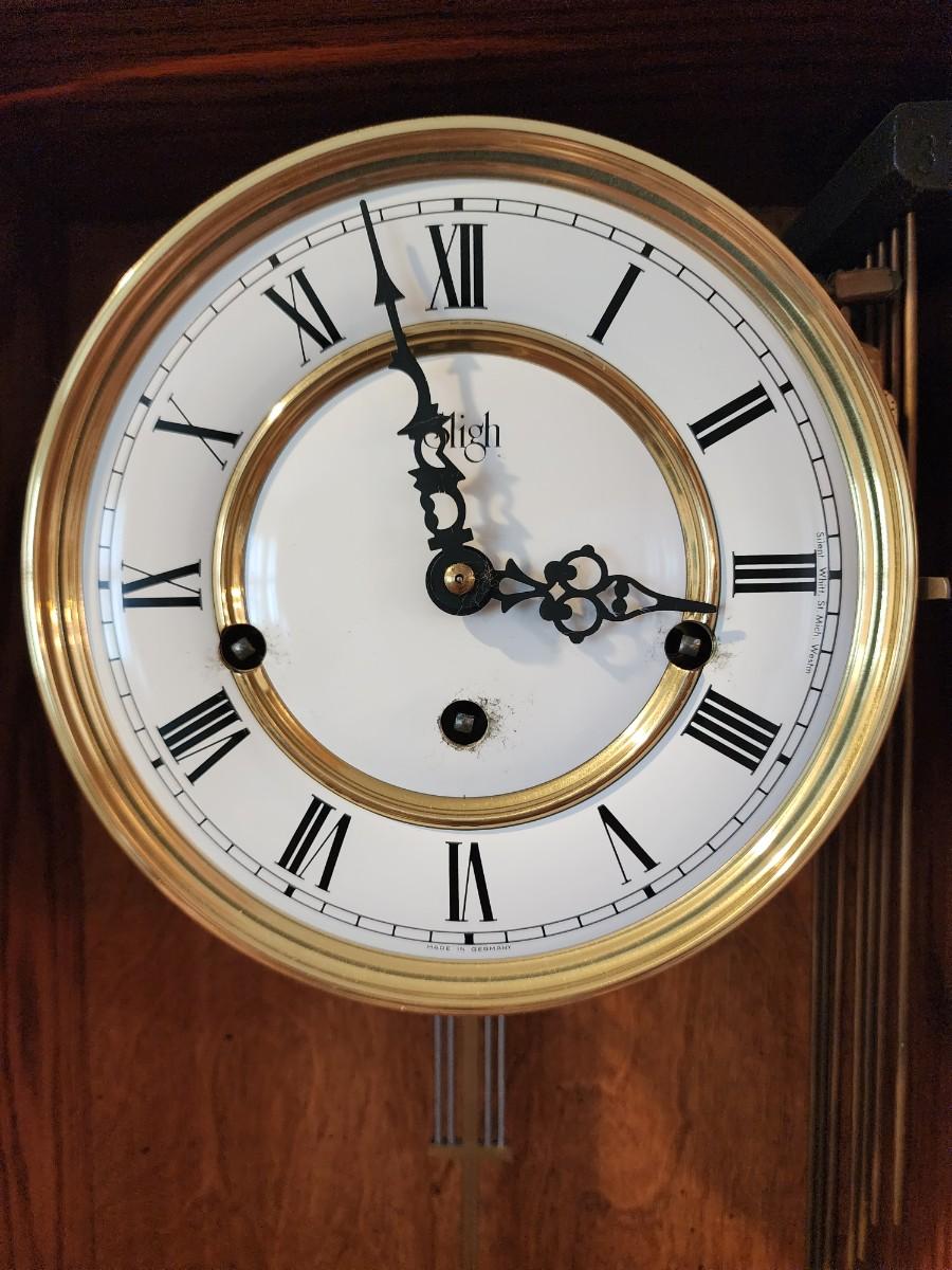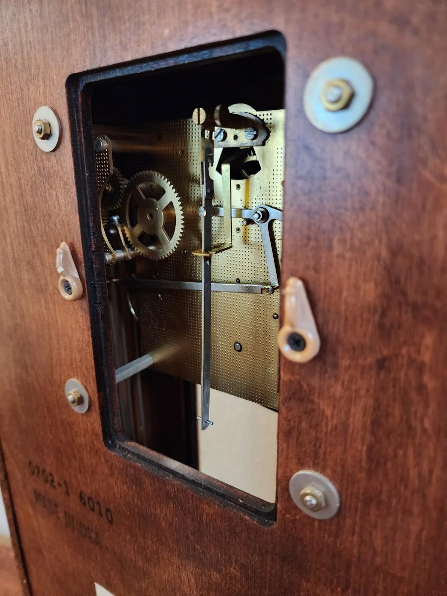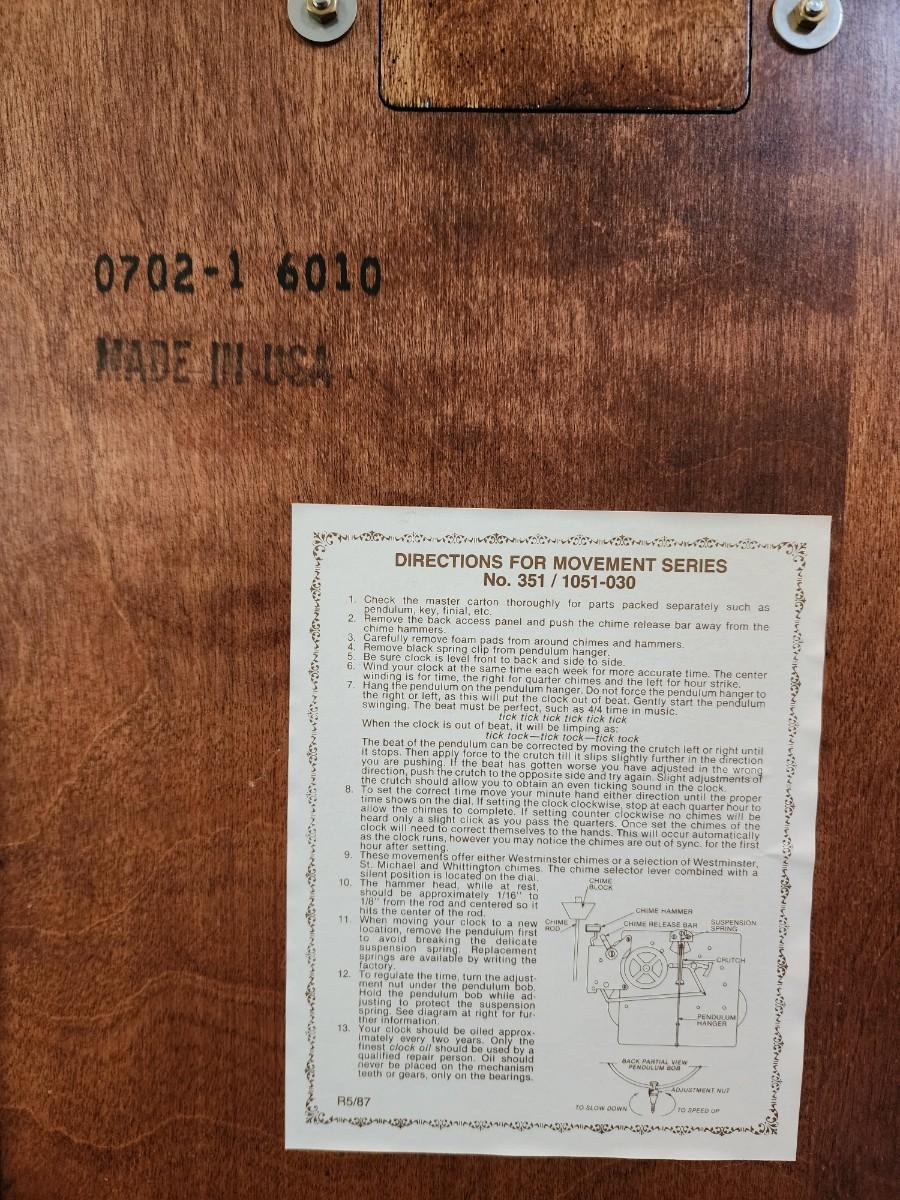 Sold as-is, not currently keeping time. No visible damage - includes key and level. 3 chimes and silent setting.
