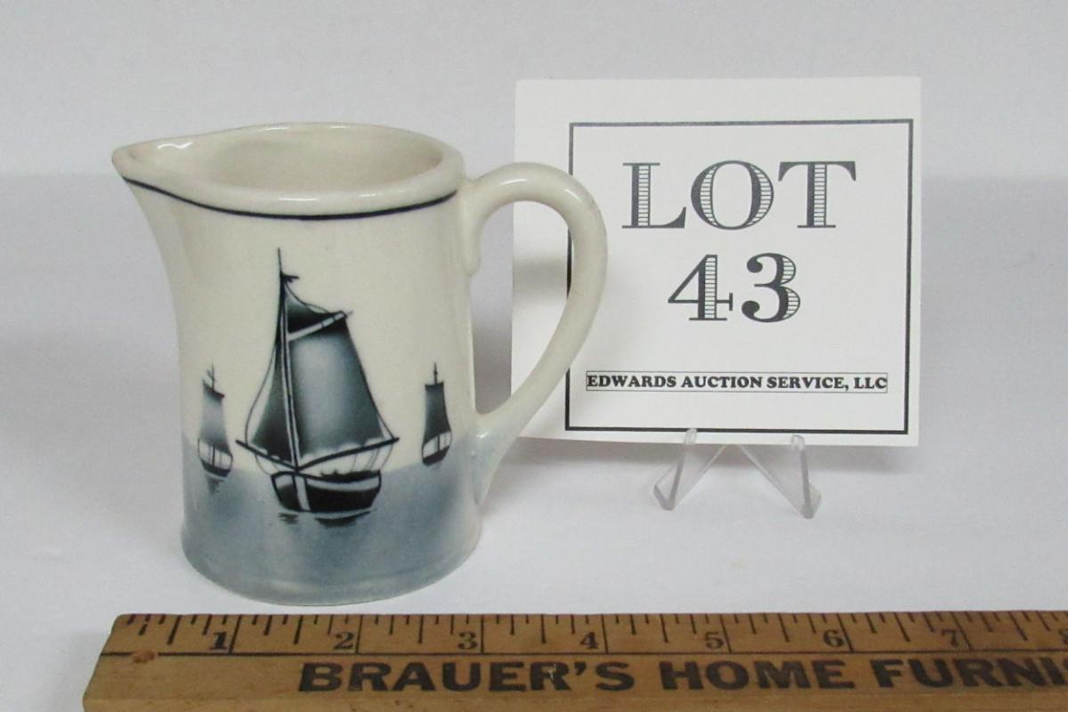 Vintage Czechoslovakia Creamer, Sailboats Pattern