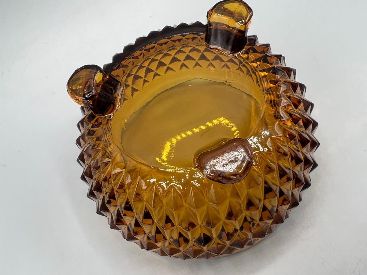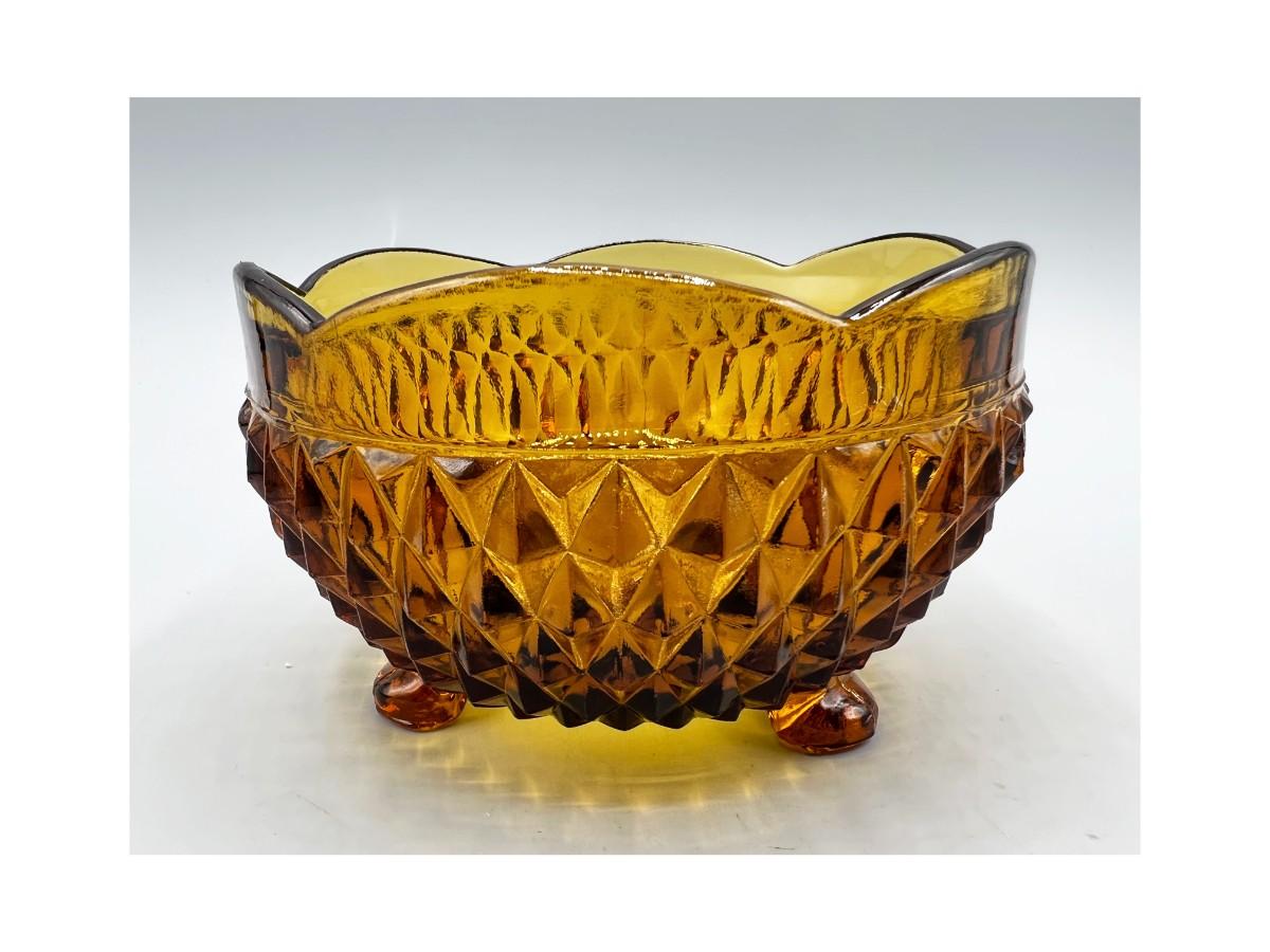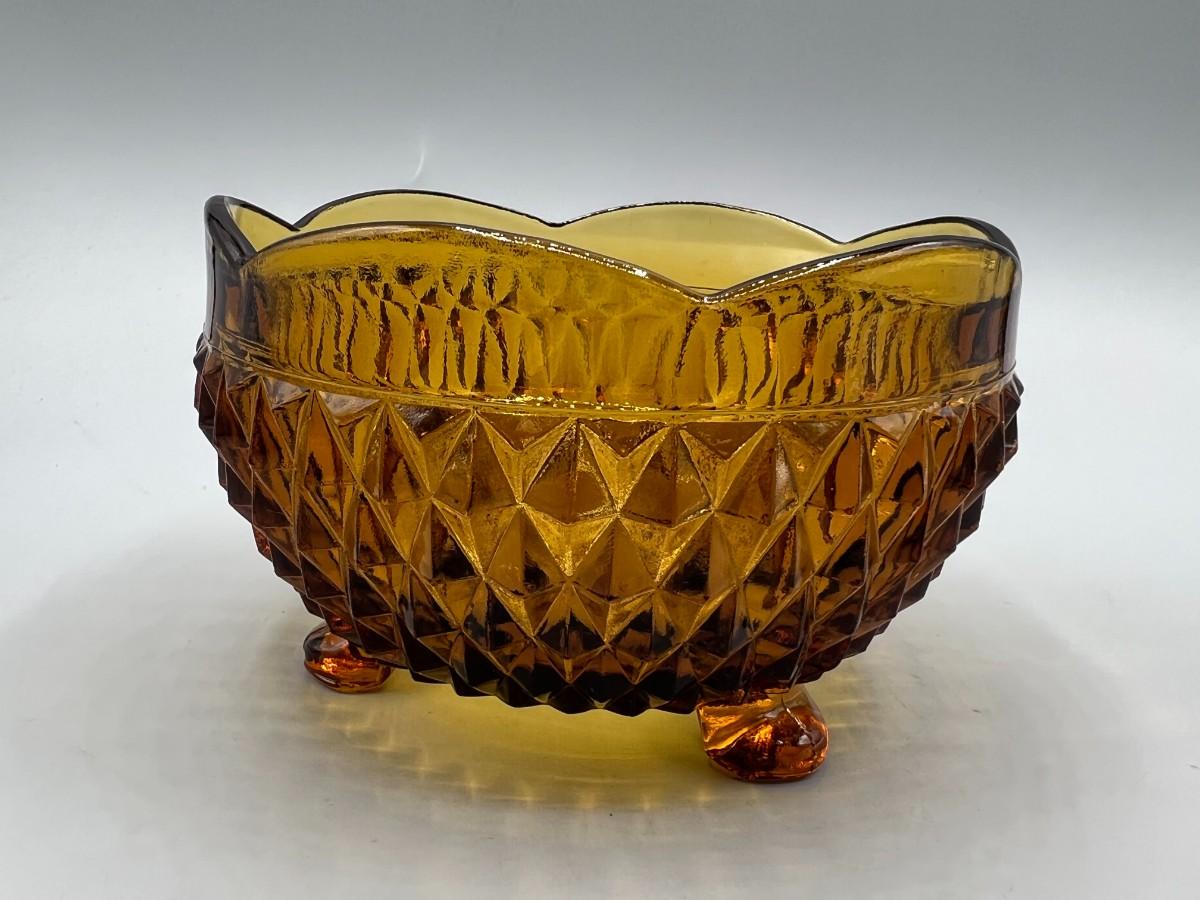 Vintage Indiana Glass Amber Colored Diamond Point Pattern Dish Bowl. There are no significant cracks or chips to the glass and is in good collectible condition. Check pictures for more details and for sizing.