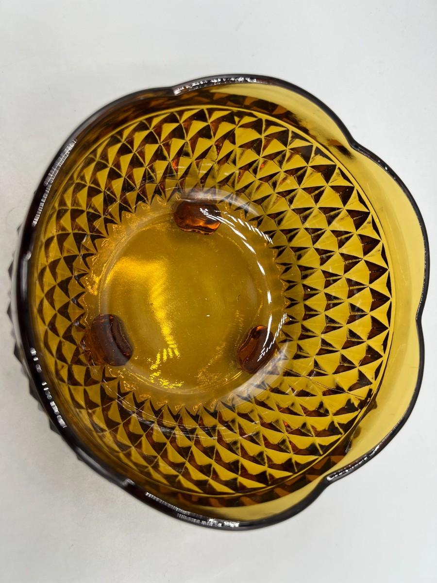 Vintage Indiana Glass Amber Colored Diamond Point Pattern Dish Bowl
