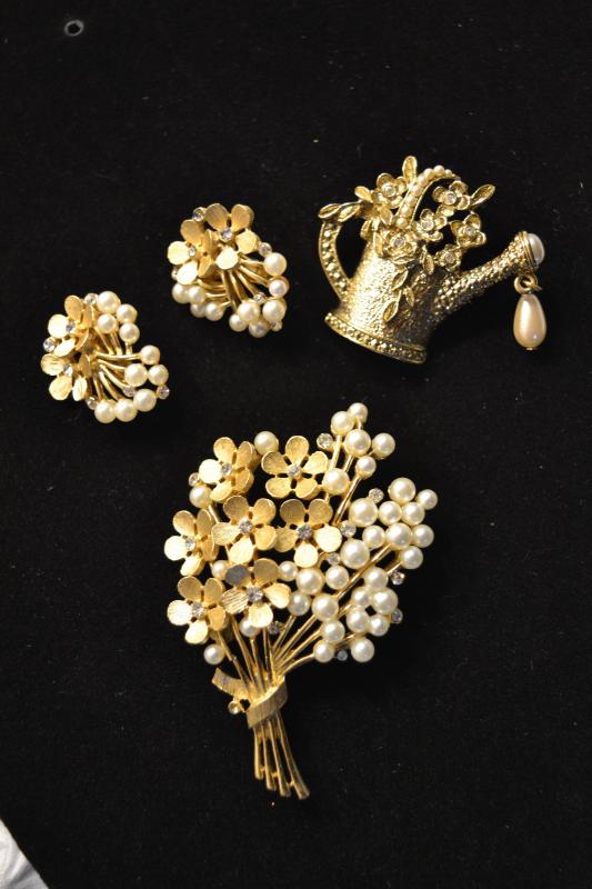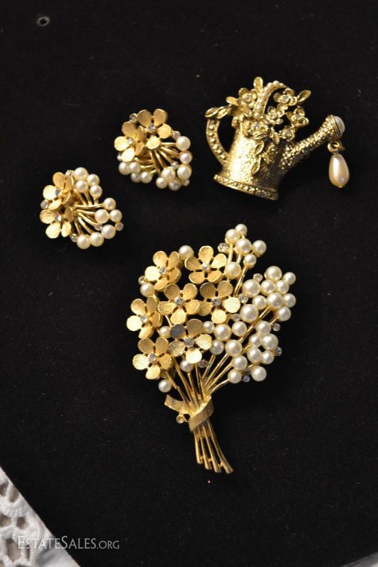 Brooch, earrings and Pin included in this beautiful vintage set.