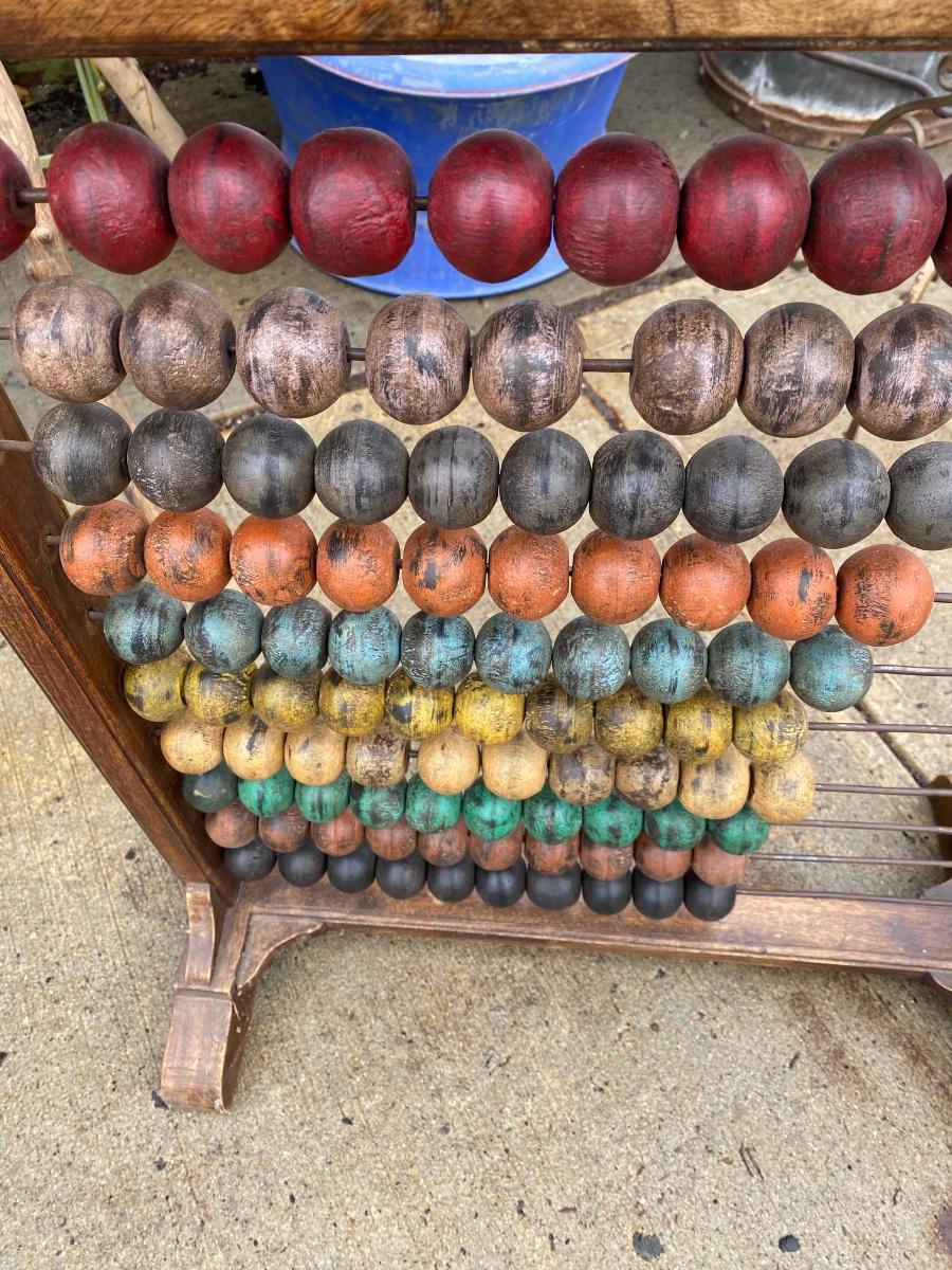 vintage large abacus, wood. 28"x24" with 1 1/2 " beads. Wear consisten with age but in overall excellent condition