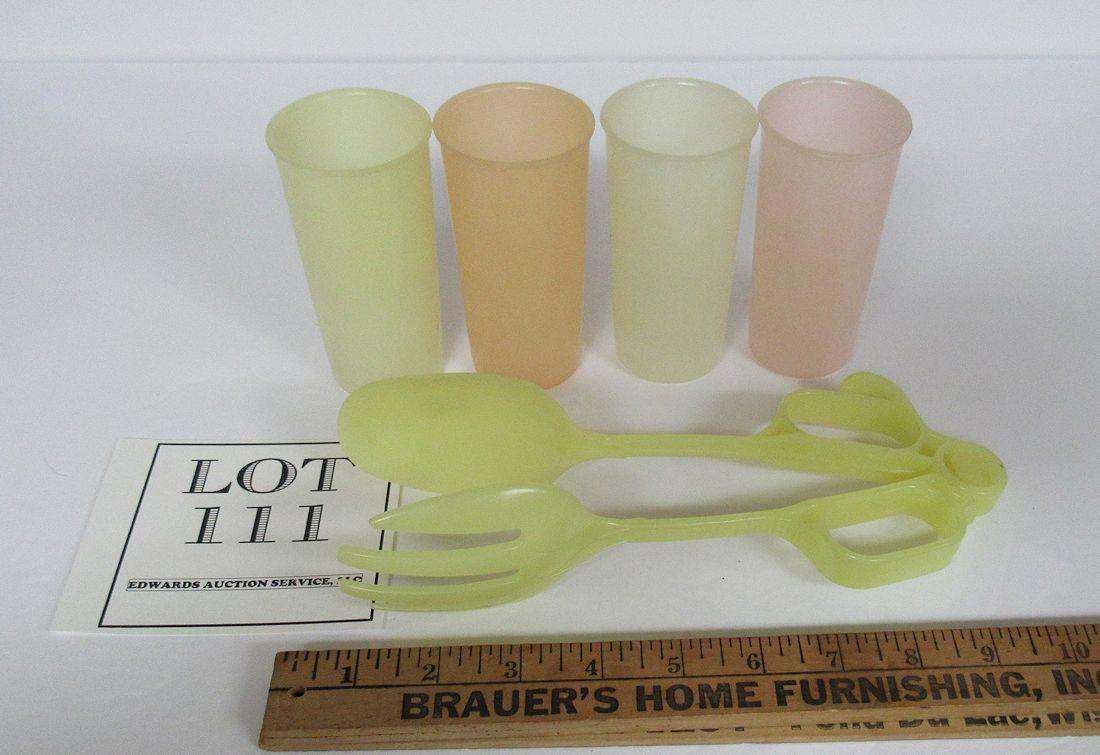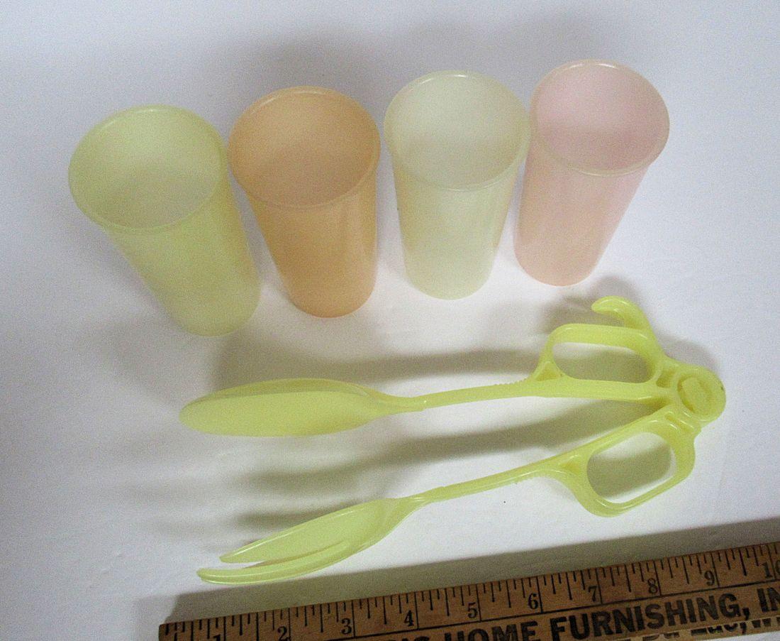 Vintge Tupperware Millionaire Line Small Tumblers and Salad Tongs