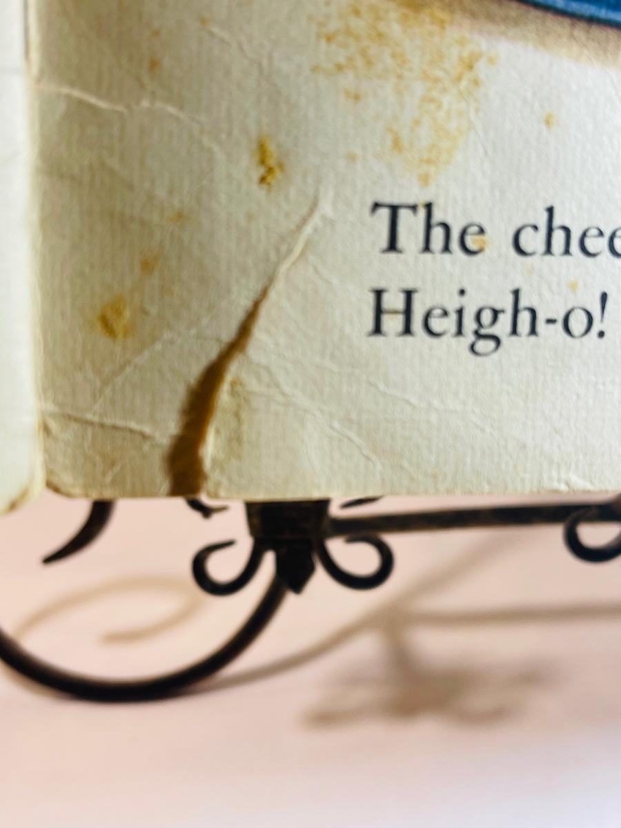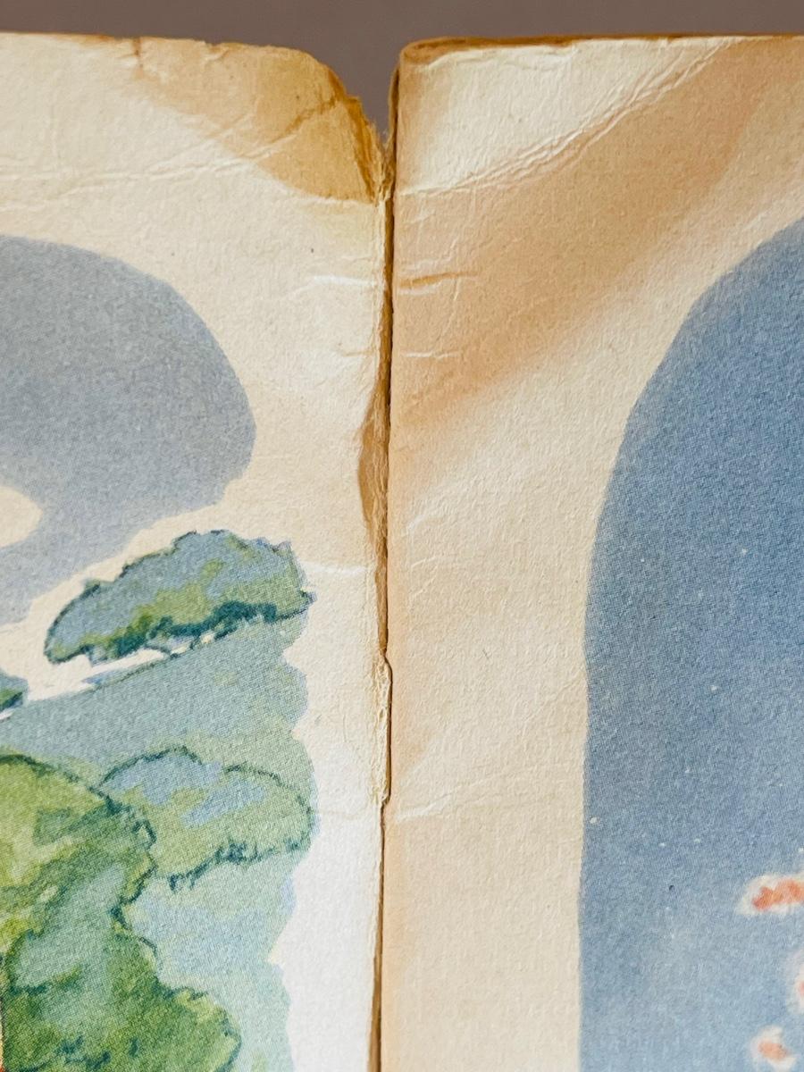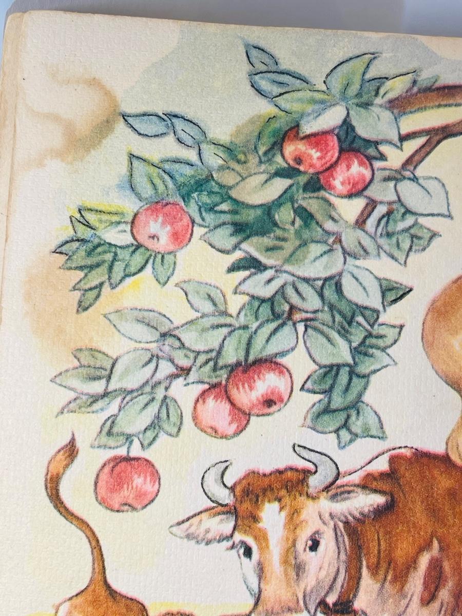 When it’s not quite an antique yet, but it’s super close- Vintique applies. This beautiful book is beyond vintage. In a few years it will be 100 years old! This book has some issues as pictured, but still usable by an adult for reading time. The front and back are loosely attached, but the interior pages are still bound. There are stains and small tares but they truly don’t take away from this beauty! The bright and vibrant color to these pages outshines any flaws! I love this one!!!