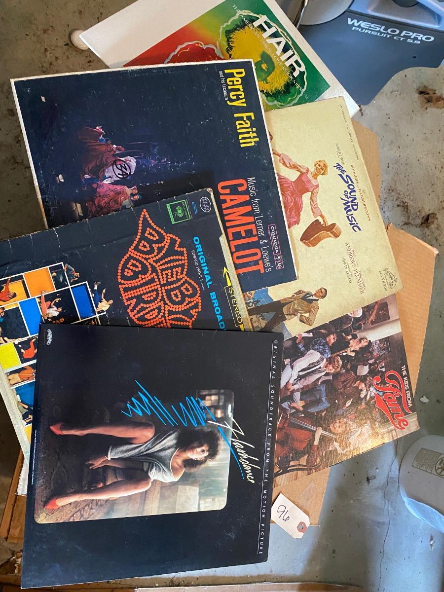 Vinyl Albums Includes Sound Track from Flash Dance, Chamelot, Hair, The Sound Of Music, Fame, and More As Pictured
