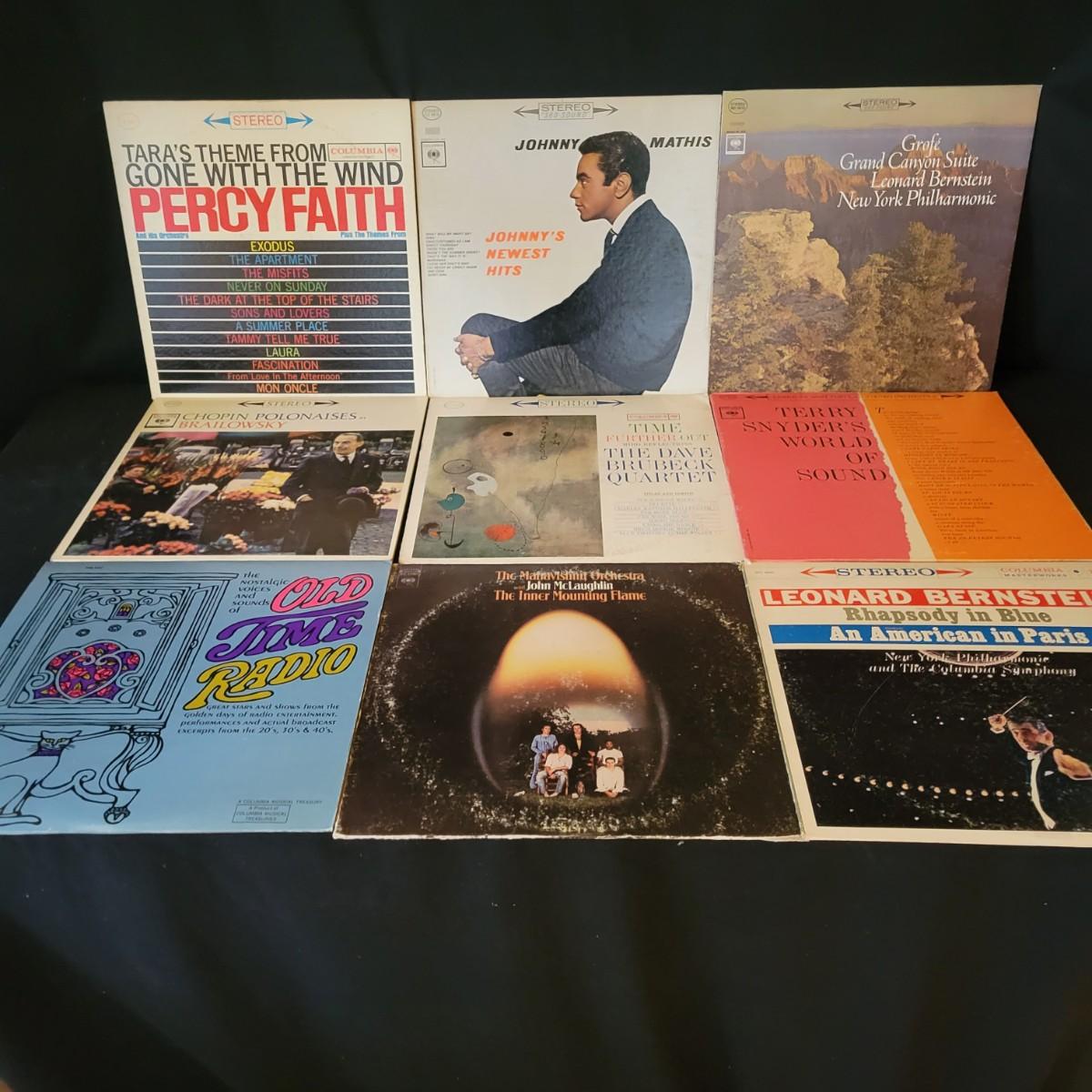 A collection of a variety of genre on vinyl. This collection consists of classical music, older soundtracks, some Christmas music, Frank Sinatra and more. Over forty albums included. Vinyl appears to have normal wear and tear.